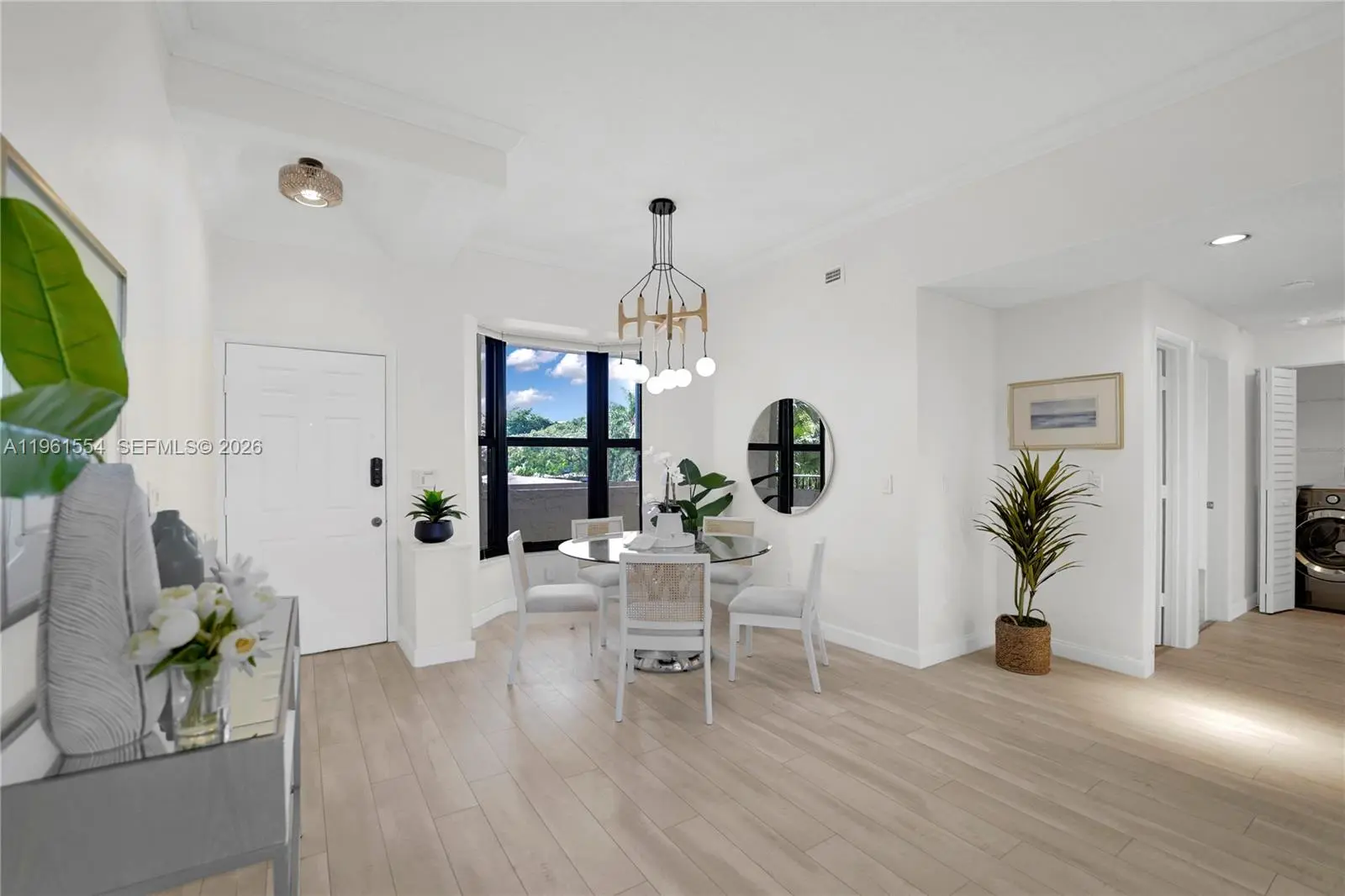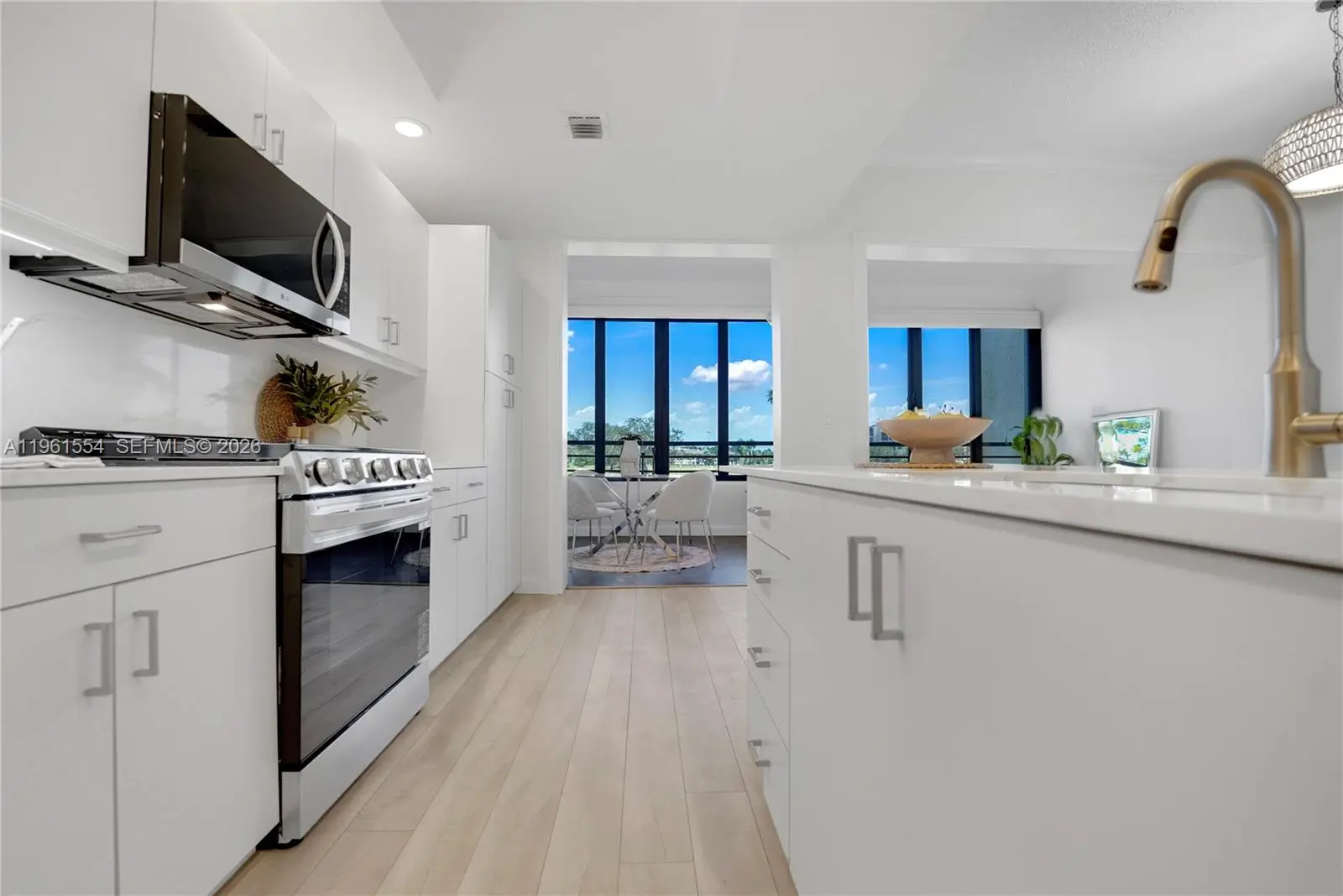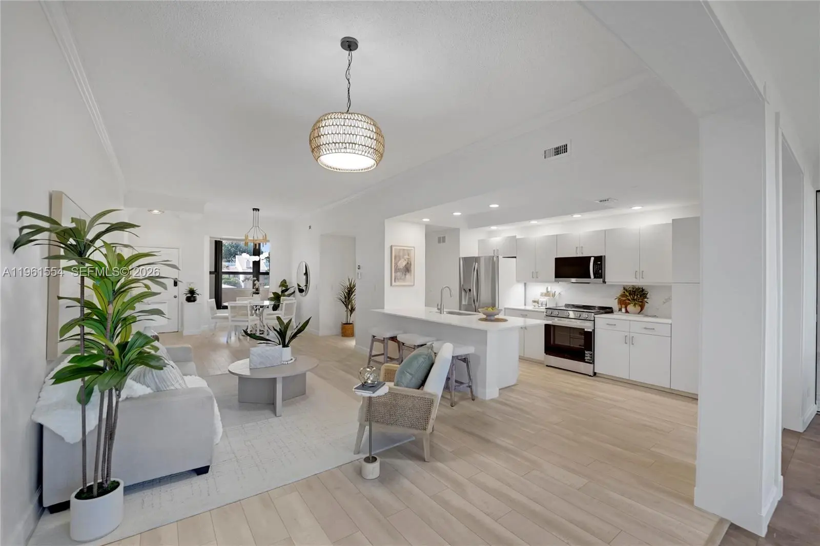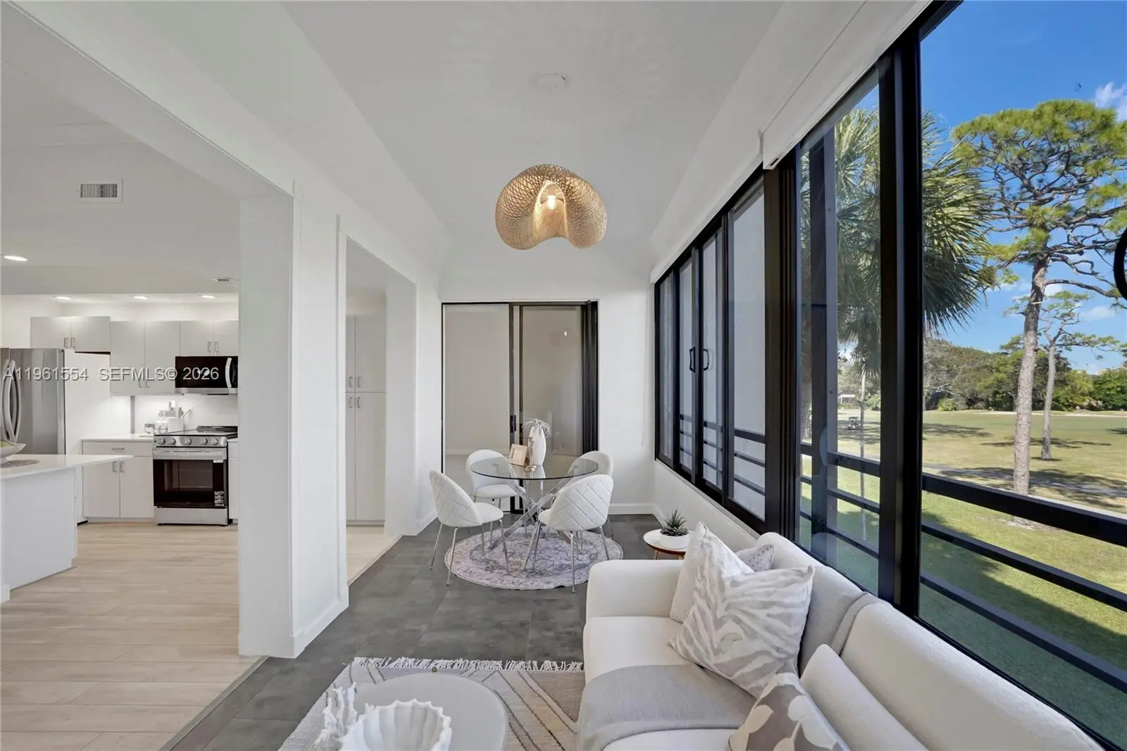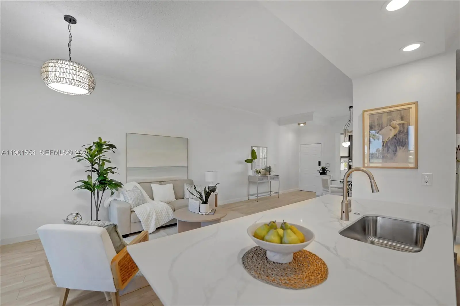 Spacious1,526 SF fully expanded and updated. 2BR/2BA condo in desirable La Paz at Boca Pointe with golf course views and ideal eastern exposure. Impact windows throughout and all plumbing replaced. Features laminate flooring, open-concept kitchen with quartz countertops, modern cabinetry, and stainless steel appliances. Primary suite offers walk-in closet with custom built-ins and renovated bath with subway tile, separate tub and shower. Second bedroom includes custom closet and access to updated guest bath with walk-in shower. Newer front-loading washer/dryer. La Paz offers two pools, two tennis courts, and a clubhouse. Per county permits, actual living area is approximately 1,526 SF. Tax records reflect 1,323