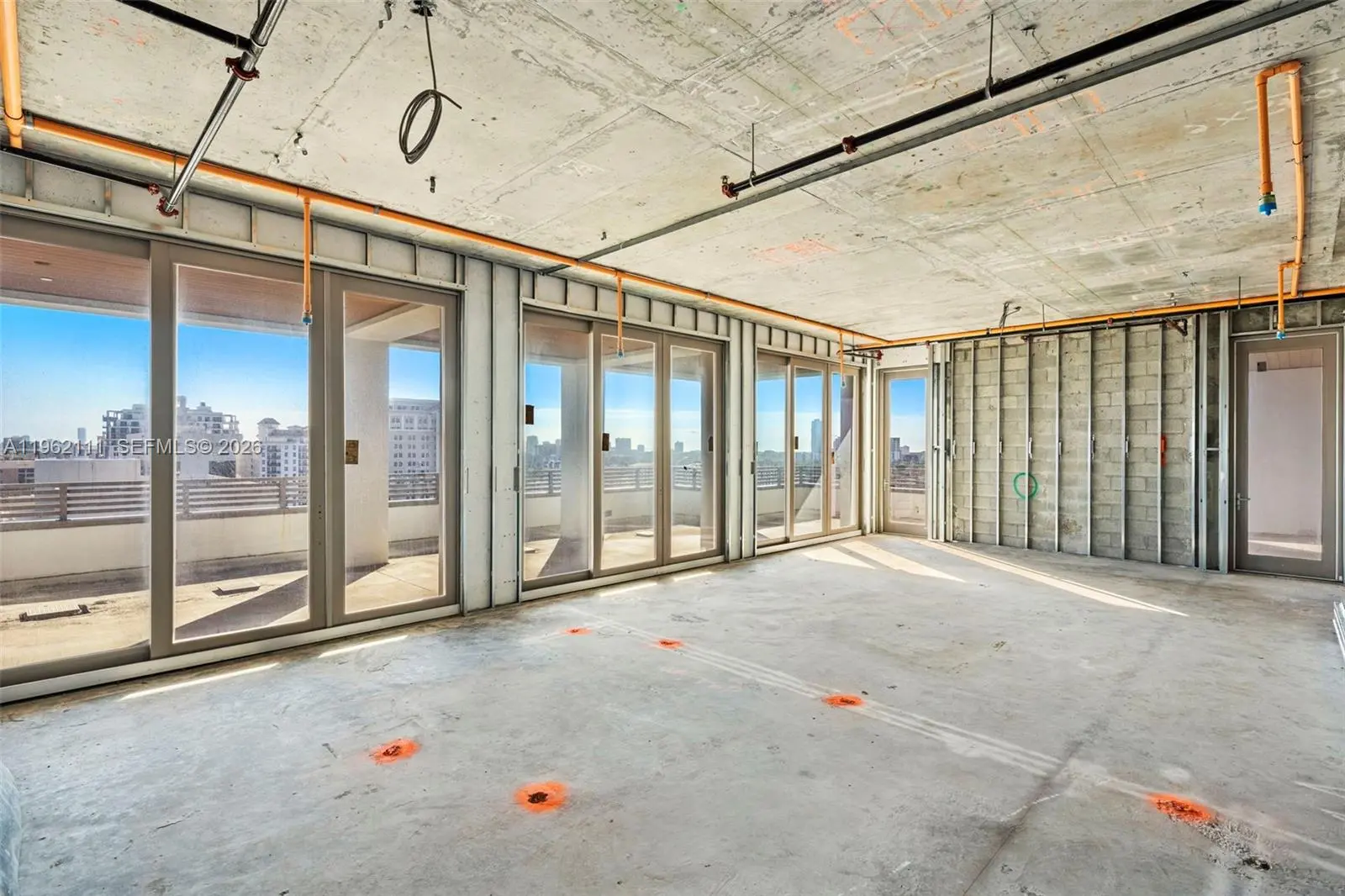 A rare opportunity at Villa Valencia: this full-floor, builder-ready 4-bed, 5.5-bath penthouse residence offers nearly 11,000 SF total, including approximately 4,000 SF of open terrace space designed for elevated outdoor living. Enter via direct elevator to a private foyer, opening to a dramatic living area framed by 10-ft floor-to-ceiling glass doors and windows, showcasing breathtaking vistas of the City Beautiful and the Granada Golf Course. Delivered as a blank canvas, the home is primed for a buyer to bring their vision to life. The expansive wraparound terraces are envisioned with summer kitchen, wet bar, and pool-in-the-sky potential, creating seamless indoor-outdoor flow. The sweeping floorplan includes a lavish primary suite with immense his-and-hers closets and a sumptuous spa bath. The residence is wired for modern home entertainment technology. Villa Valencia, a boutique building of just 39 residences, is distinguished by world-class amenities including a resort-style pool deck, spa, state-of-the-art fitness center, four lounges, library, game room with golf and F1 simulators, and resident kitchens and dining rooms. Available separately: private poolside cabana with jacuzzi, full bath, living room, and kitchenette; two-car garage. A unique opportunity to create a custom masterpiece at this exclusive Gables address.