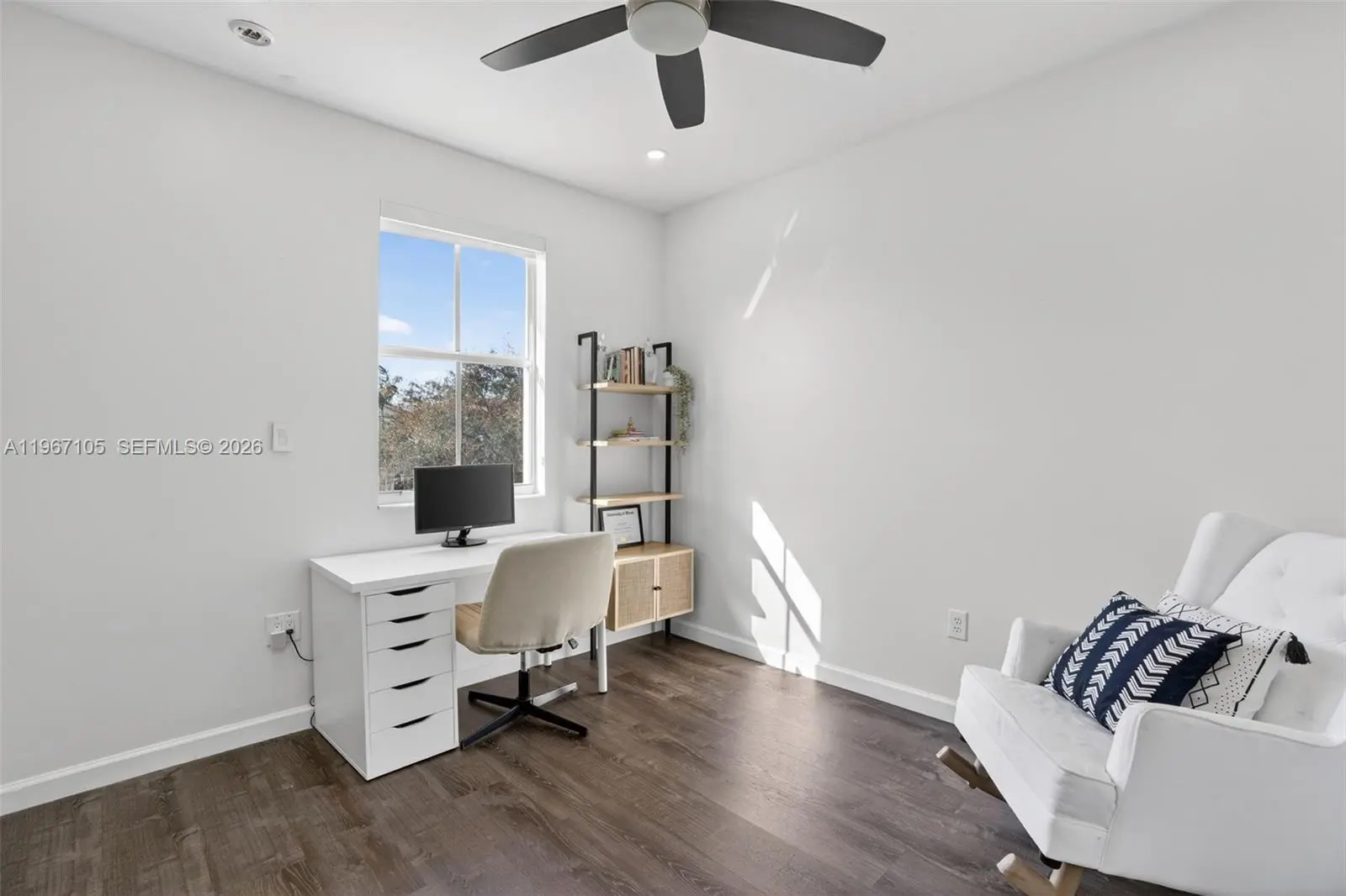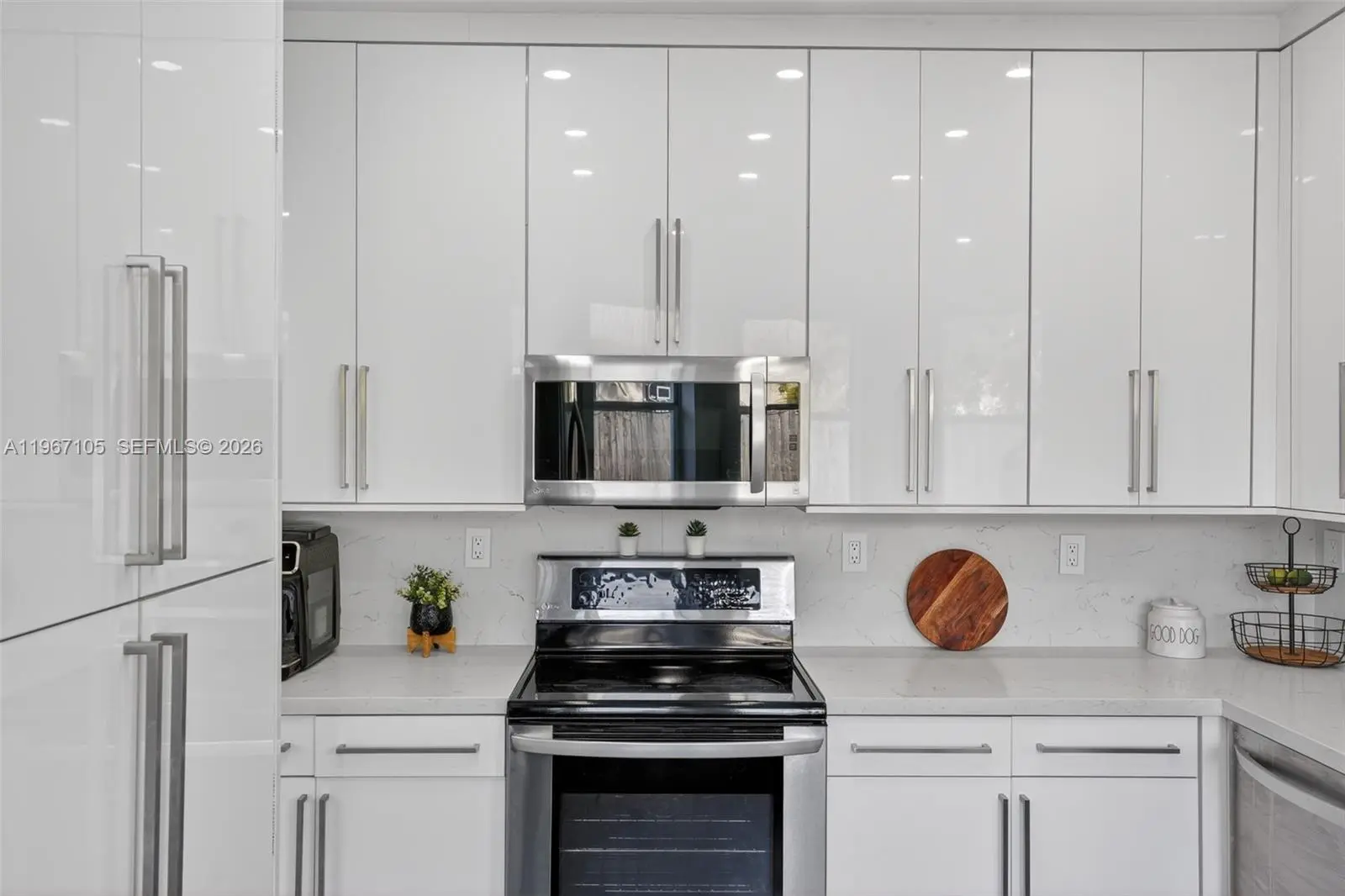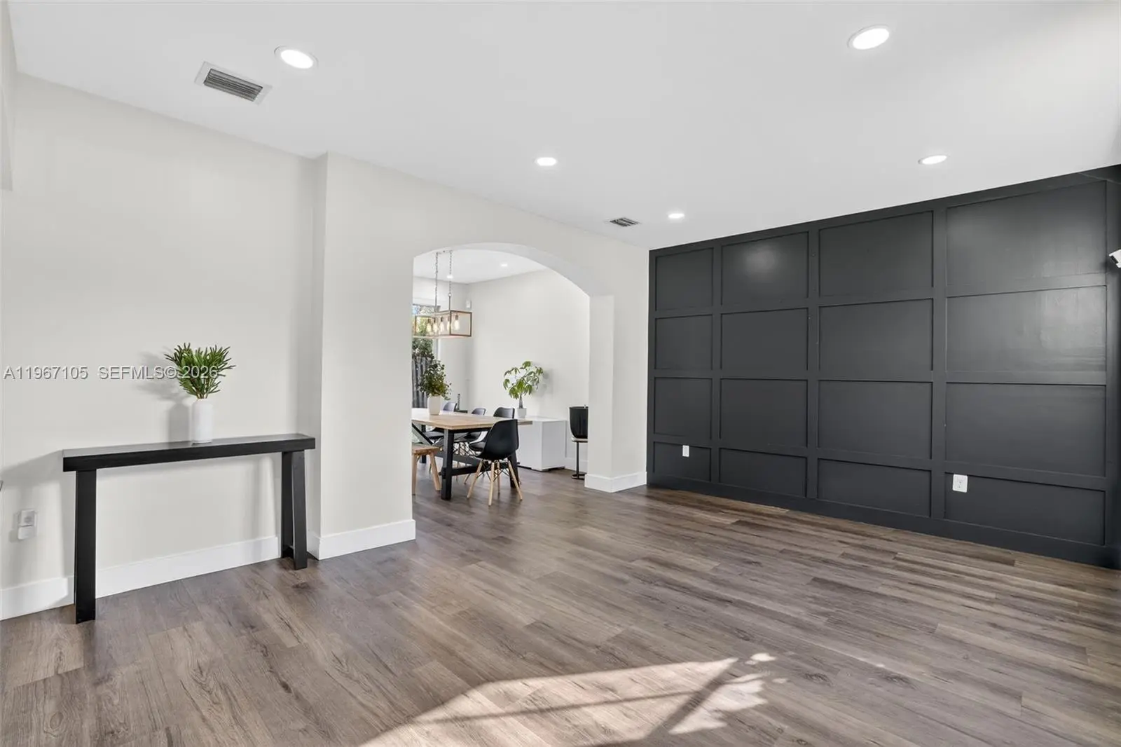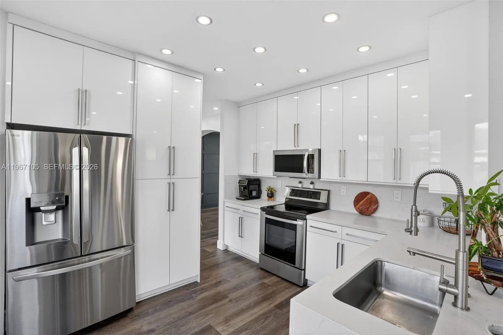 Beautifully updated 4-bedroom, 2.5-bath home offering 2,064 SqFt of bright and modern living space on a 5,500 SqFt lot, located in a well-maintained community. Step inside to a light-filled interior featuring sleek wood-style flooring throughout, recessed LED lighting, high ceilings, and an open-concept layout designed for comfortable living and entertaining. The fully renovated kitchen showcases high-gloss white cabinetry, quartz countertops, stainless steel appliances, and a spacious, functional design. Large windows and sliding glass doors bring in abundant natural light while creating a seamless connection to the backyard. Upstairs, the spacious primary suite features high ceilings, his and hers walk-in closets, and a well-appointed bathroom with a separate soaking tub and walk-in shower. Additional bedrooms offer flexibility for family, guests, or a home office. Enjoy a generously sized fenced backyard with plenty of space for outdoor gatherings, pets, or even a future pool. The home also includes a dedicated laundry room and a 2-car garage with ample space for parking and storage. For added protection and peace of mind, the property includes accordion shutters on the second-floor windows and hurricane shutters on the first floor. Conveniently located near major highways, shopping, schools, and everyday amenities. Move-in ready and thoughtfully updated — schedule your private showing today.