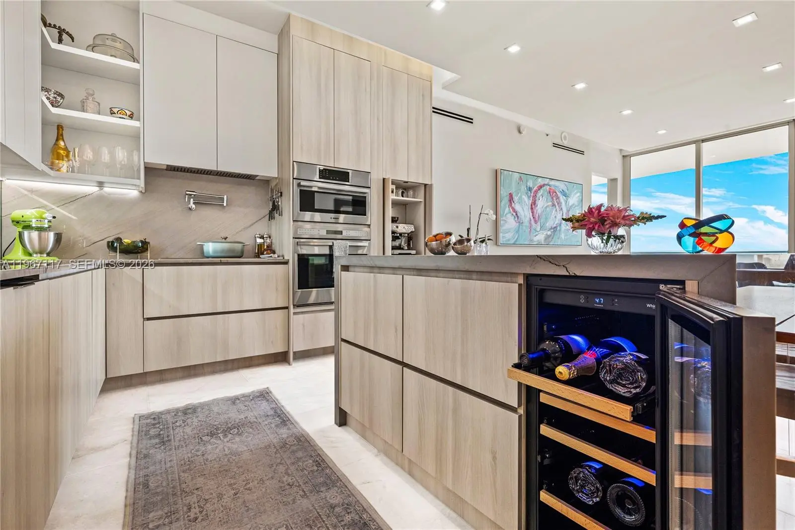 Fully remodeled 2-bed, 2.5-bath residence at Paramount Bay with two private balconies showcasing unobstructed Biscayne Bay and city views. This elevated residence features Calacatta marble floors, custom kitchen with floor to ceiling cabinets, premium appliances and wine cooler, tastefully renovated bathrooms and walk-in closets, custom built-ins, automated shades, as well as new custom doors and balcony flooring. Additional highlights include a large sized den, private foyer, laundry room, 2 parking spaces, and storage space. Residents enjoy resort-style amenities including sunrise and sunset pools, spa, fitness center, theater, BBQ area, game room, club room, and full-service concierge. Situated in Miami's Edgewater, steps from dining, shopping, entertainment, and Margaret Pace Park, with easy access to Miami Beach and Downtown.