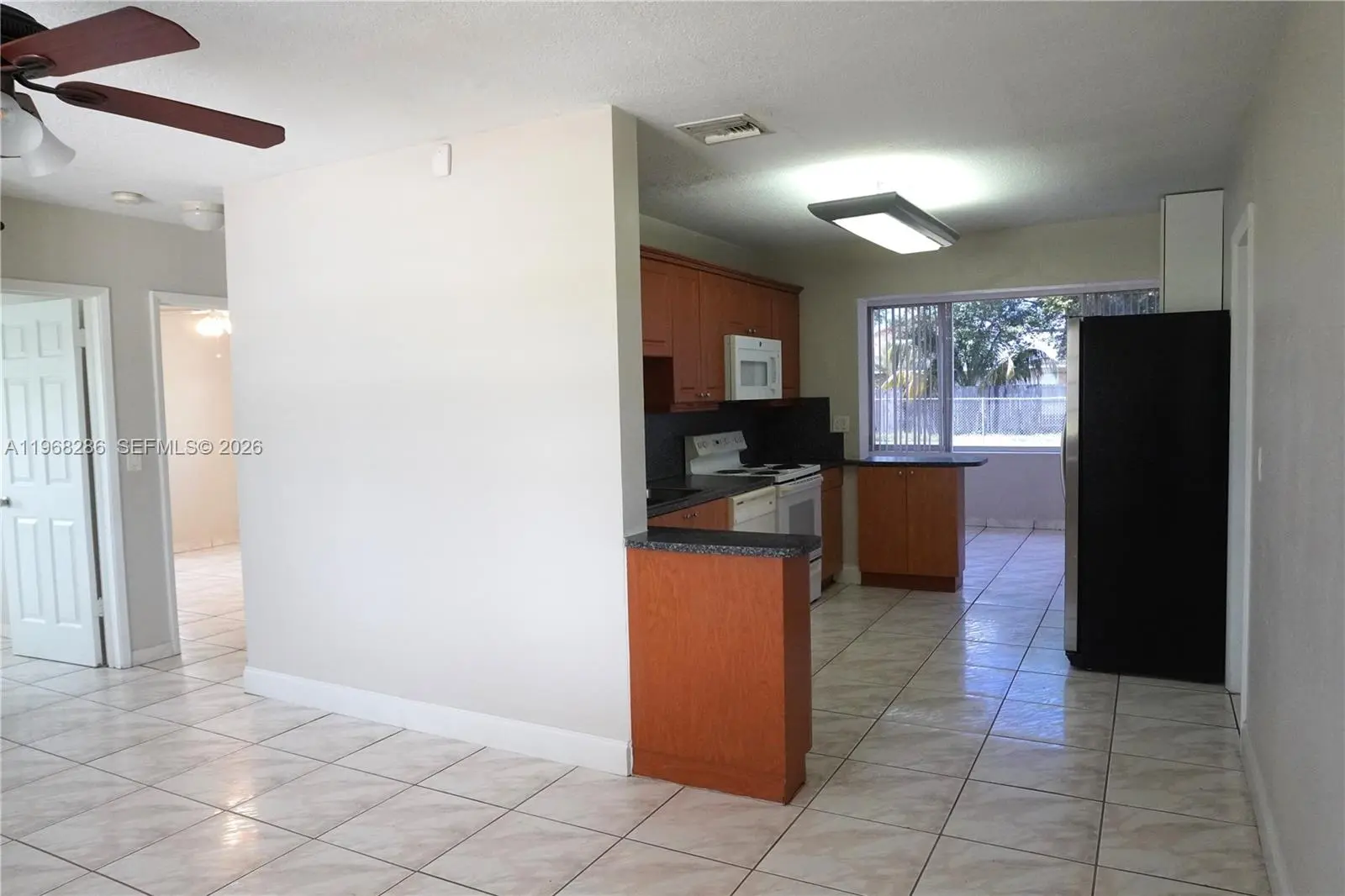Well-maintained 2-bedroom, 1-bath single-family home in Homestead. Recently painted interior and exterior. Features tile flooring throughout, a spacious family room, and good natural light: A/C 2 years old, ceiling fans, and blinds. The kitchen is equipped with a dishwasher; a washer and dryer are also included. Carport and additional parking. Fully fenced backyard with exterior security lighting (front and rear). Conveniently located near Krome Ave, Florida Turnpike, and US-1. Close to downtown Homestead, Baptist Hospital, Homestead Air Reserve Base, shopping centers, restaurants, schools, theaters, and public transportation. No HOA. Easy to show with rapid approval.