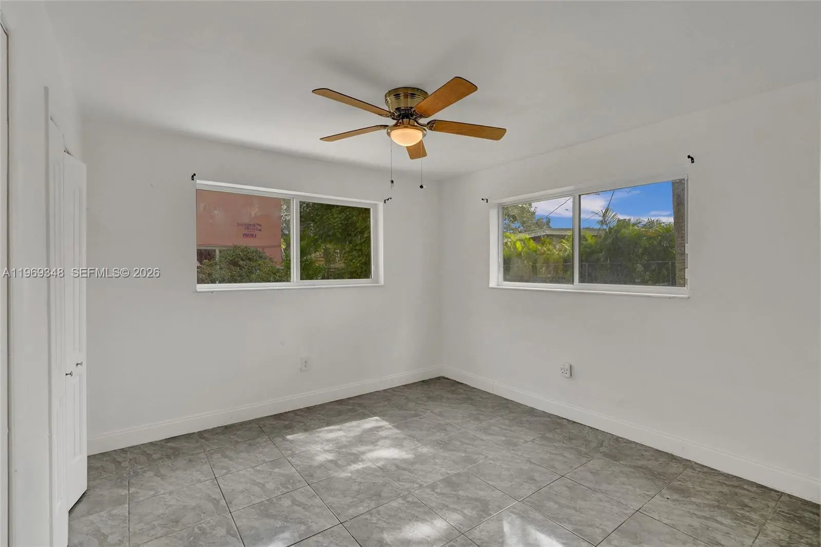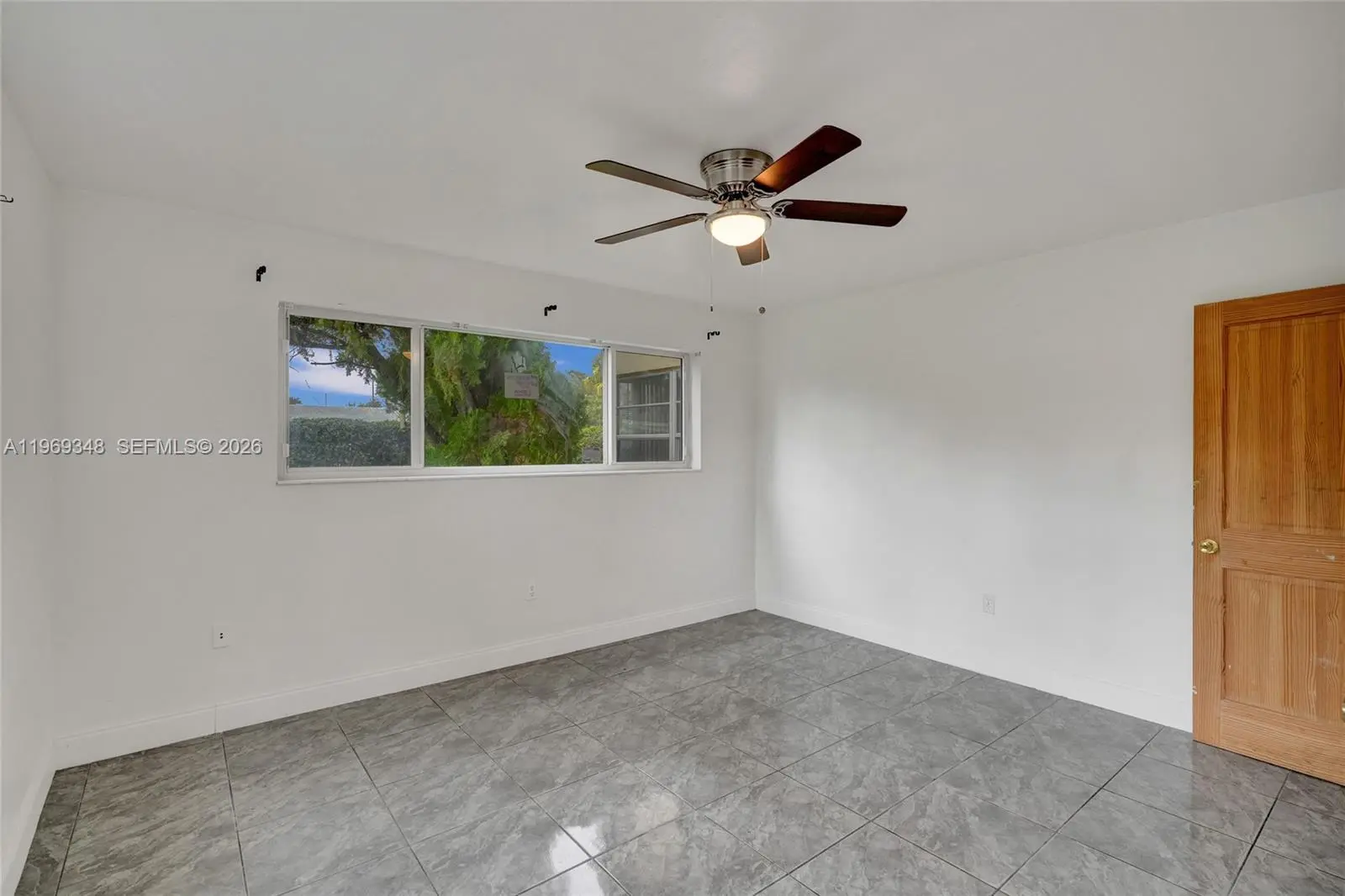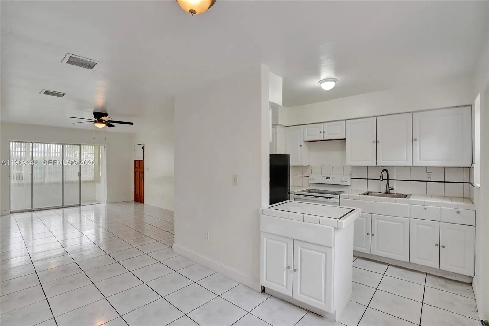 Welcome to this bright and spacious rental in the heart of North Miami Beach. Featuring an open-concept layout with sleek white tile flooring throughout, this home offers a clean, modern feel and plenty of natural light. The living and dining areas flow seamlessly, creating a comfortable space for both relaxing and entertaining. Enjoy ceiling fans for added comfort and large windows plus sliding glass doors that bring in natural light and lead to an enclosed patio area perfect for a home office setup, reading nook, or additional sitting space. The kitchen is equipped with white cabinetry, ample storage, tiled countertops, and stainless steel appliances. Freshly painted with neutral finishes throughout, this home is move-in ready. Conveniently located near major highways, shopping, dining, schools, and just minutes from Aventura, Sunny Isles, and the beach.