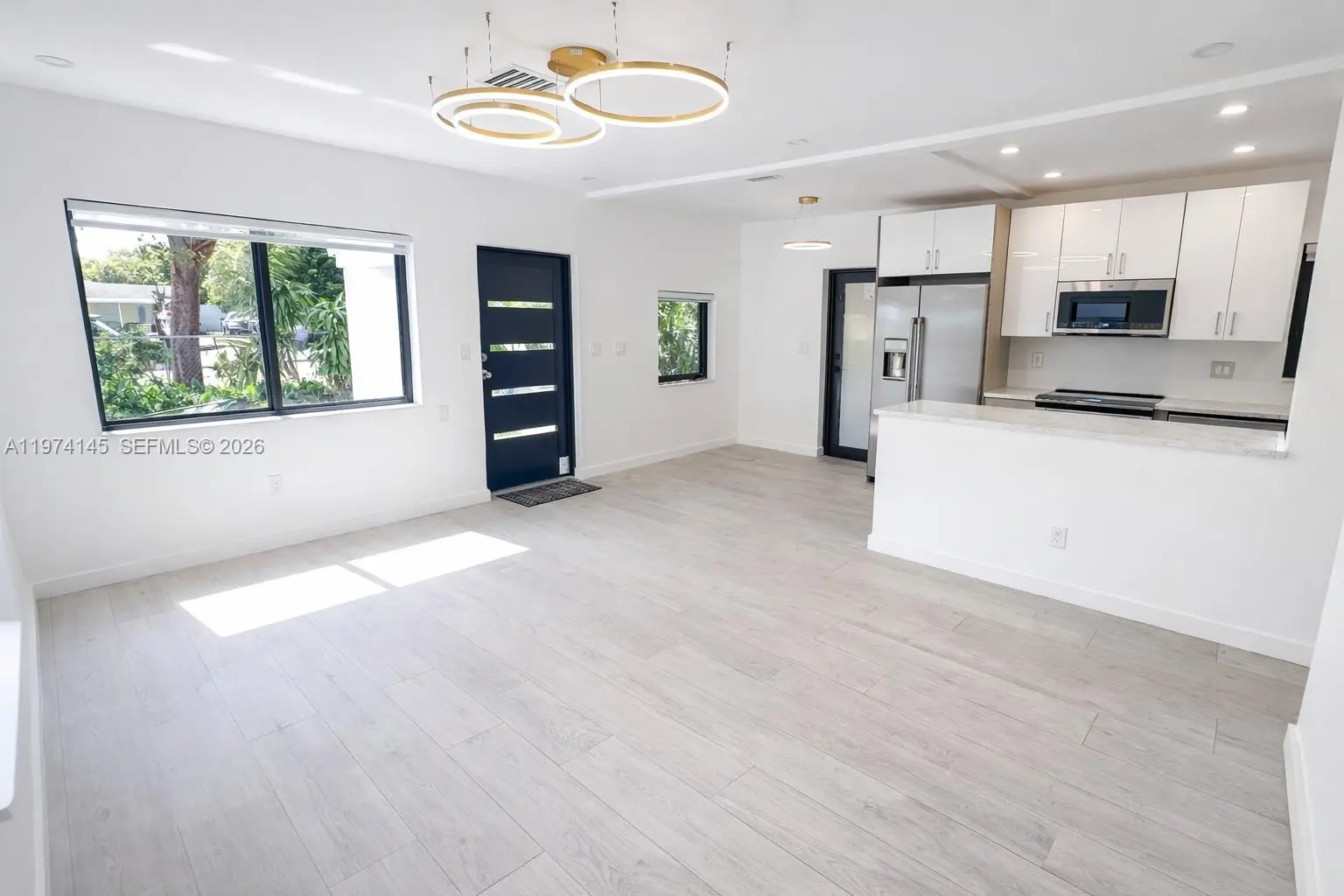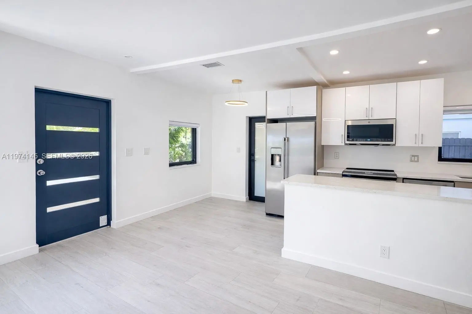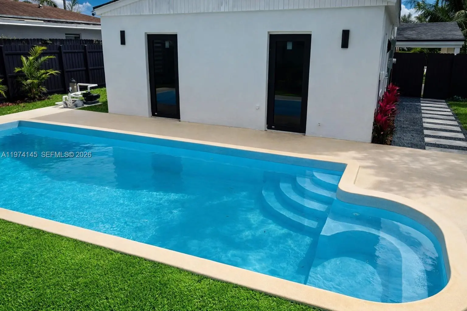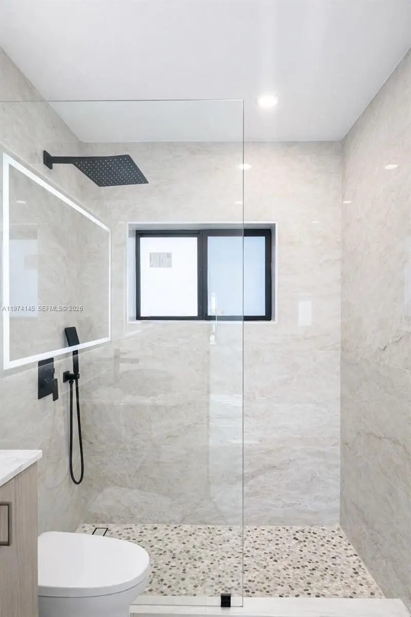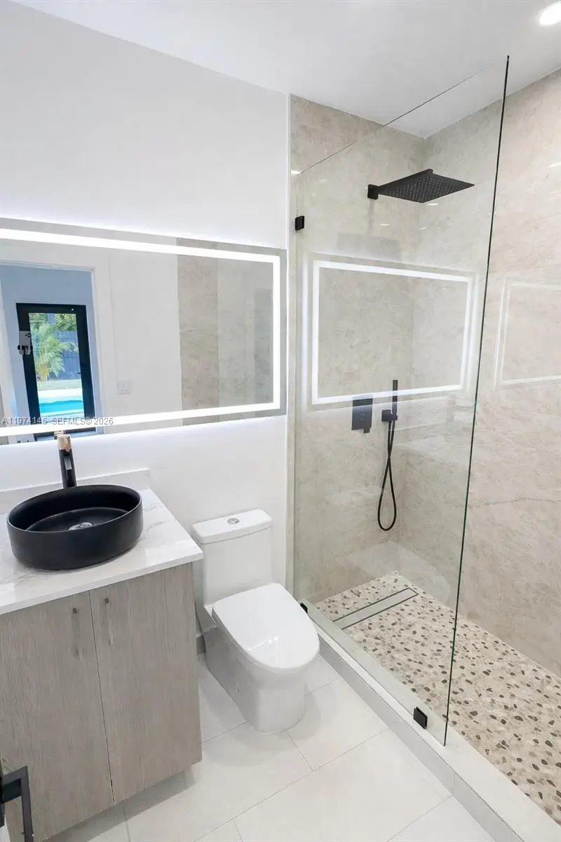 Amazing Opportunity in North Miami Beach. Most extensive renovation in the neighborhood. 3BR/2BA pool home with ample space for 5 car parking, a boat, jet skis, etc. Perfect location: walking distance to shopping center with Publix Supermarket, Golf Course, House of Worship. Situated near Biscayne Blvd with quick access to highways, 5min to Aventura Mall, and only 10 minutes to the beach. Completely renovated turnkey property: new porcelain tile flooring throughout, modern bathrooms, a brand-new, welcoming modern open kitchen with granite countertops, and new high-end GE Café stainless-steel Wi-Fi-controlled appliances. Major upgrades include a New central A/C, New roof, New impact doors and windows, complete electrical rewiring and new plumbing, a tankless water heater, and fully remodeled bathrooms. All renovations were fully permitted by the City of North Miami Beach. Huge tropical fenced backyard with mature landscaping and an oversized 30x15 ft pool—perfect for relaxing, entertaining, or creating your own outdoor oasis. The front garden features an extended covered patio and offers space for bbq and a sitting area. This beautifully modernized home is ready for you to enjoy. This 3/2 can easily be converted in 2/2 for an oversized master suite with 2 pool access. No detail was overlooked in this transformation— A Rare chance for a primary home, vacation getaway, or investment property. Short-term/Airbnb allowed with license.