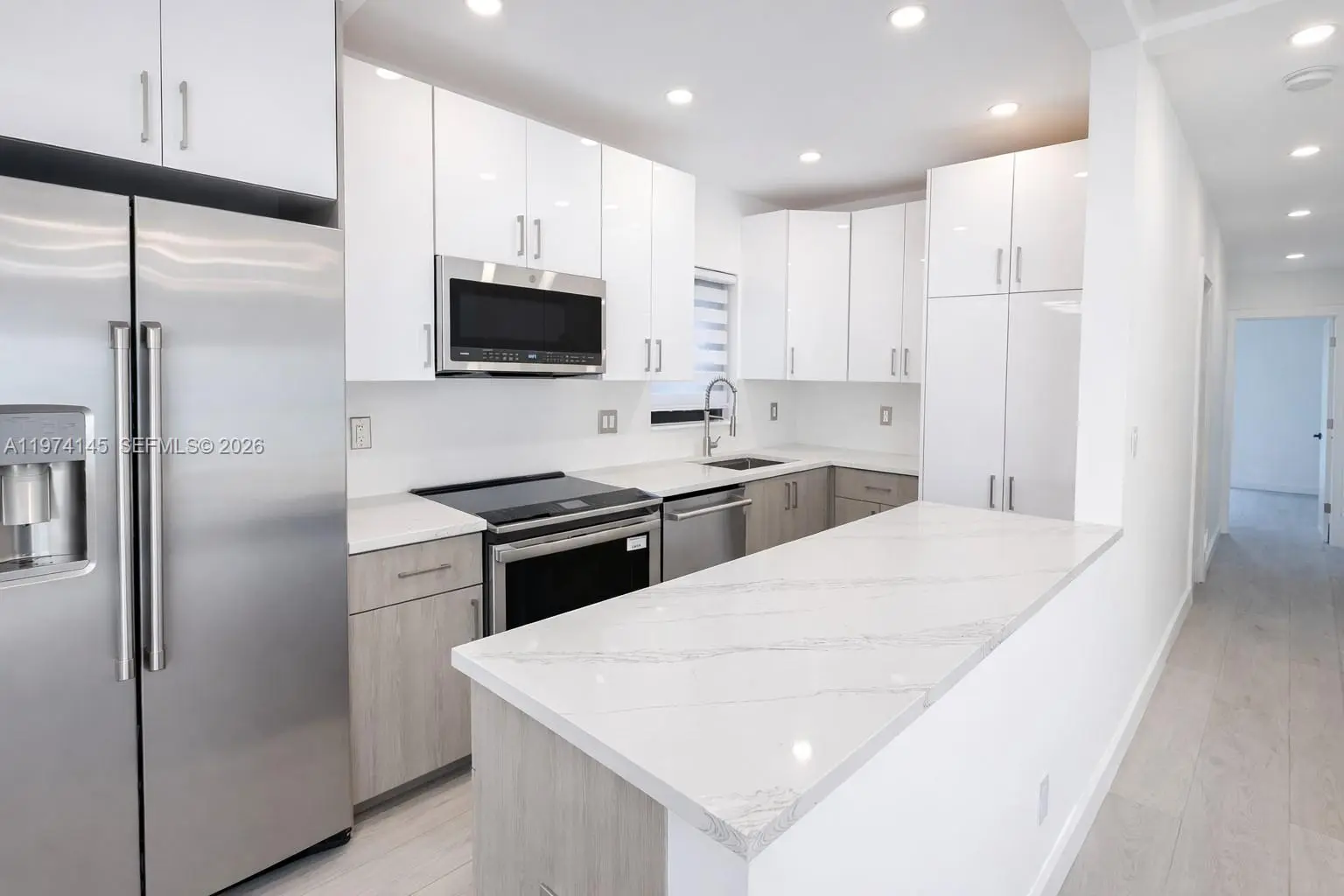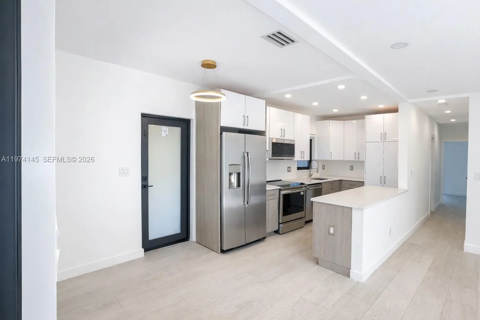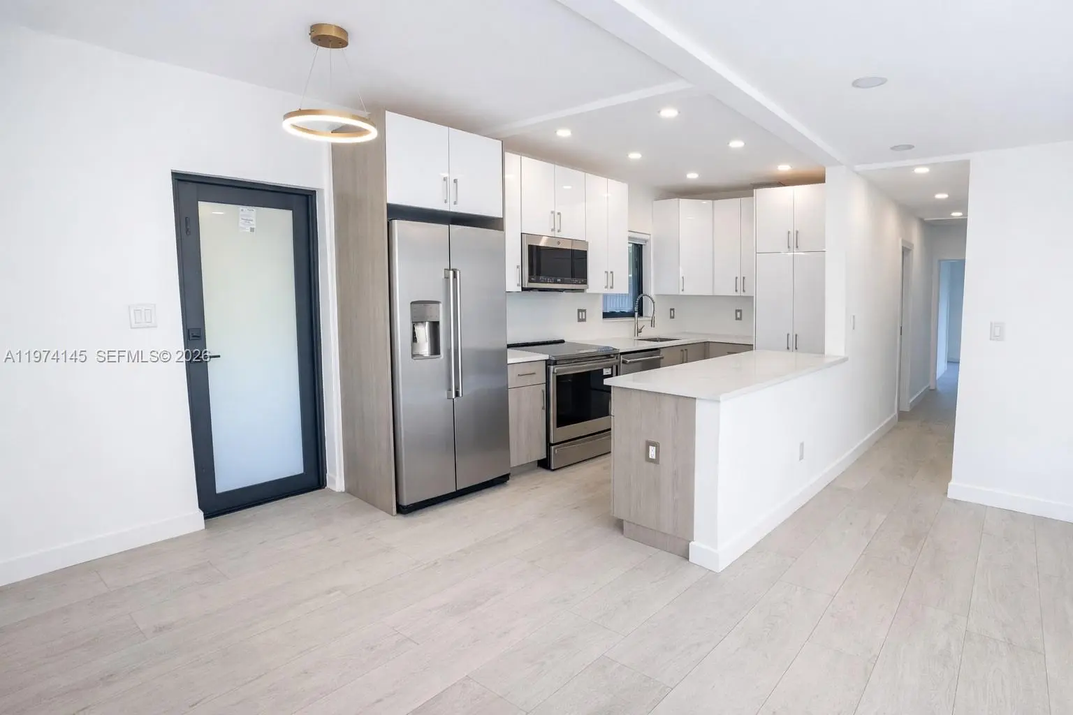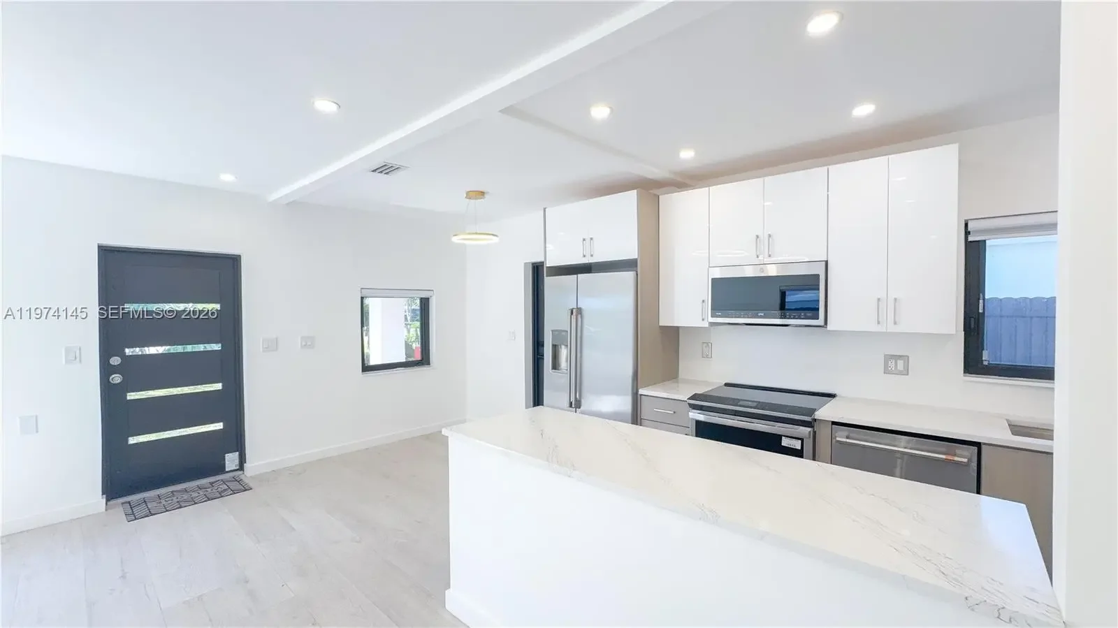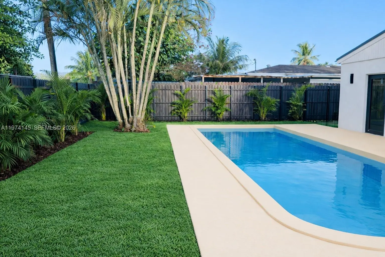 Amazing Opportunity in North Miami Beach. Most extensive renovation in the neighborhood. 3BR/2BA pool home with ample space for 5 car parking, a boat, jet skis, etc. Perfect location: walking distance to shopping center with Publix Supermarket, Golf Course, House of Worship. Situated near Biscayne Blvd with quick access to highways, 5min to Aventura Mall, and only 10 minutes to the beach. Completely renovated turnkey property: new porcelain tile flooring throughout, modern bathrooms, a brand-new, welcoming modern open kitchen with granite countertops, and new high-end GE Café stainless-steel Wi-Fi-controlled appliances. Major upgrades include a New central A/C, New roof, New impact doors and windows, complete electrical rewiring and new plumbing, a tankless water heater, and fully remodeled bathrooms. All renovations were fully permitted by the City of North Miami Beach. Huge tropical fenced backyard with mature landscaping and an oversized 30x15 ft pool—perfect for relaxing, entertaining, or creating your own outdoor oasis. The front garden features an extended covered patio and offers space for bbq and a sitting area. This beautifully modernized home is ready for you to enjoy. This 3/2 can easily be converted in 2/2 for an oversized master suite with 2 pool access. No detail was overlooked in this transformation— A Rare chance for a primary home, vacation getaway, or investment property. Short-term/Airbnb allowed with license.
