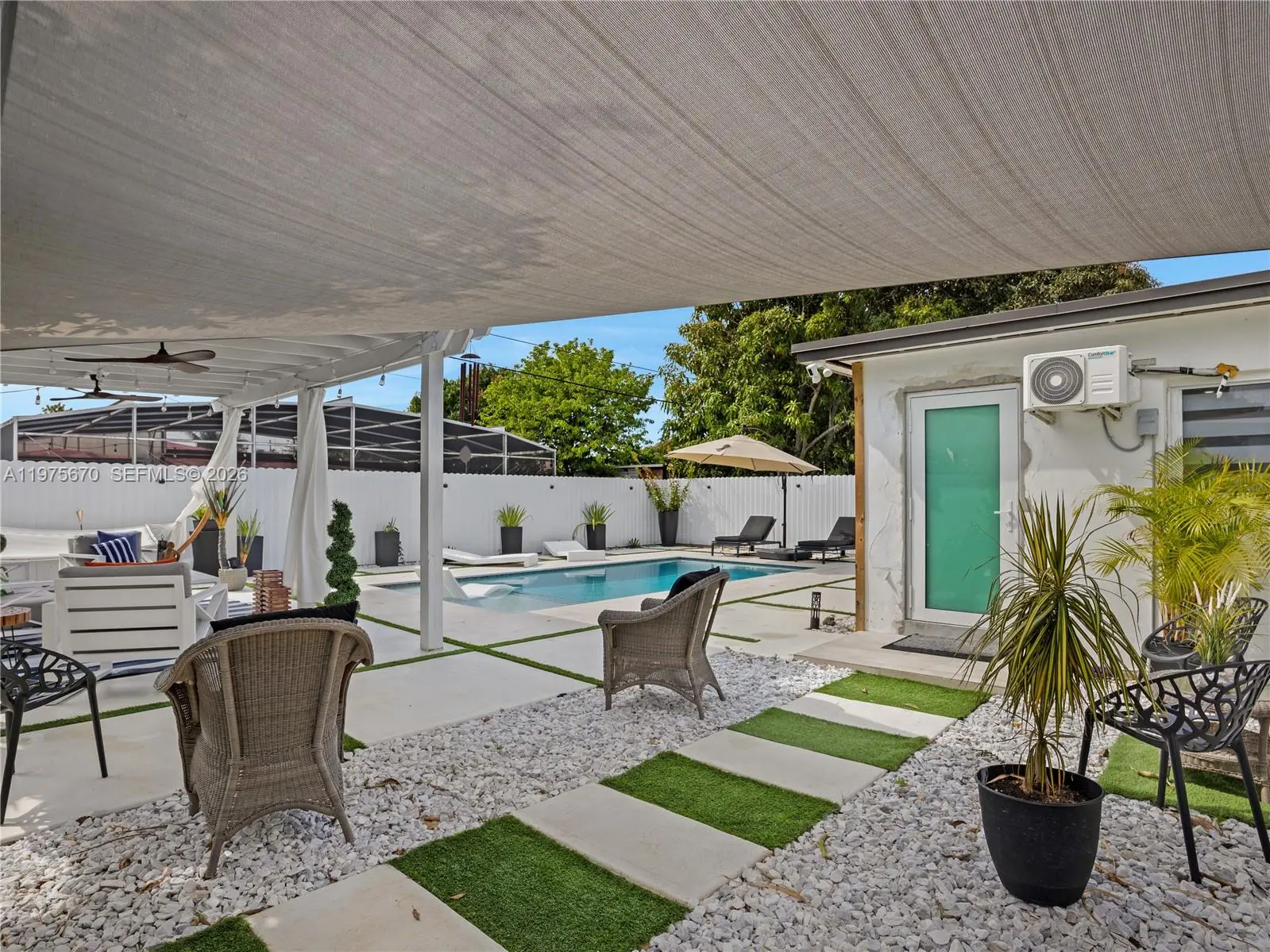 welcome to this beautifully remodeled 3-bedrroms 2-bathrooms home that blends modern comfort with prime Location, step into serene oasis featuring a brand-New saltwater pool, perfect for relaxing afternoons Enjoy breathtaking sunsets under the elegant pergola and appreciate the fully fenced property offering both privacy and charm Centrally located near Hallandale, Beach, Aventura mall and the coastline, this home is just minutes from all conveniences, the Gourmet Kitchen boast a stunning island, while remodeled bathrooms and charming terrace complete the picture of refined living This home is not just a property-its a lifestyle waiting for you to step in and enjoy!