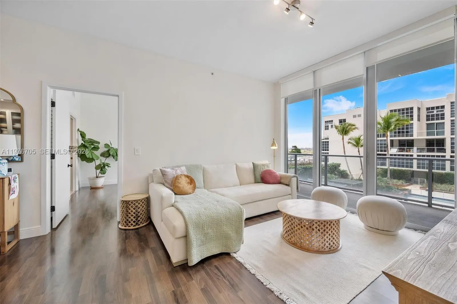 Experience the heart of Miami in this beautifully updated residence at Two Midtown. Spanning 1,017 square feet, this home features a thoughtful layout with two primary bedrooms, each with its own full bathroom, complemented by a convenient guest bath. Recent interior enhancements include high-quality new flooring, fresh paint, a refreshed launderette, Smart Lock, remodeled bathrooms, floor-to-ceiling sliding glass doors, tracks repaired, and new rollers installed, upgraded electrical outlets to usbA/usbC, and GFCI in the kitchen. The kitchen is equipped with a new dishwasher and garbage disposal, while the laundry area features a new washer and dryer. Relax on your large balcony overlooking the pristine pool area. Community life offers 24/7 security, a fitness center, sauna, steam rooms, a hot tub, and so much more. This home includes one assigned covered parking space, is partially furnished, and features remote-controlled blackout blinds. Located moments from the Design District and Wynwood, you have the best of the city right at your doorstep. Mortgage savings may be available for buyers of this listing.