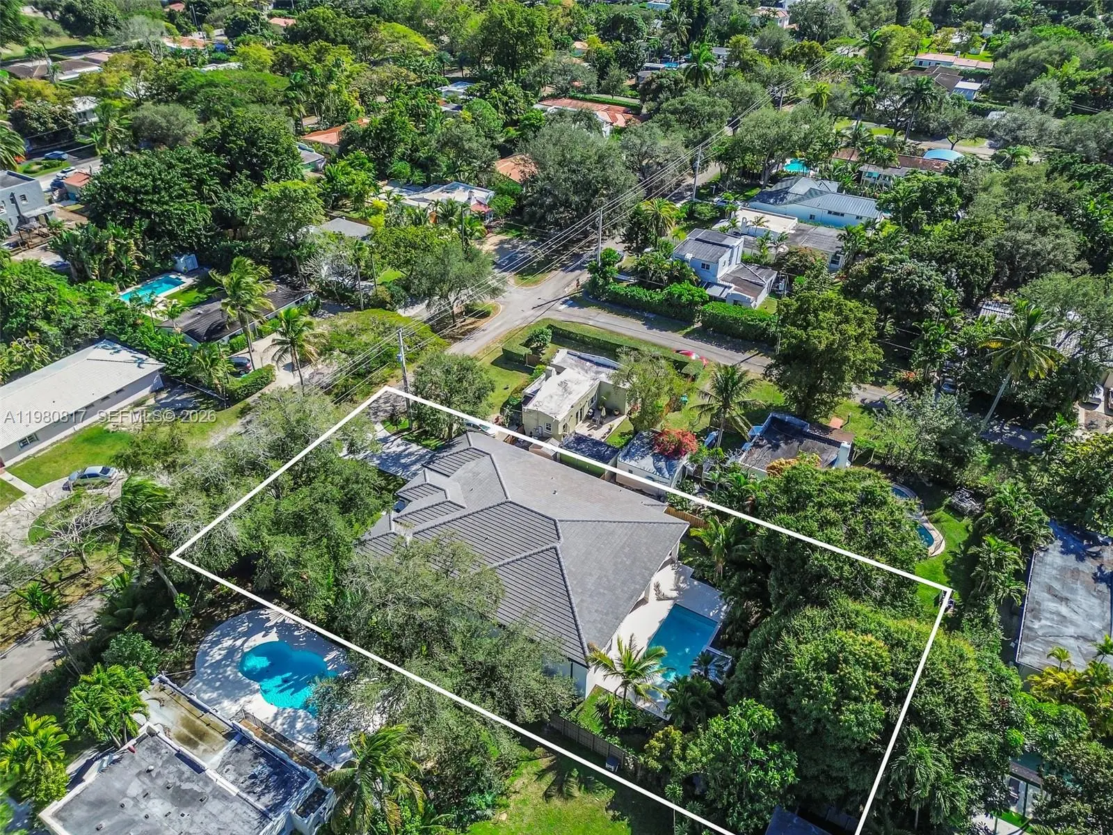 Brand new construction in Biscayne Park. One story home, high ceilings, impact windows and doors, private large backyard with covered patio, pool and spa. The interior features porcelain flooring in main areas and wood in bedrooms. Spacious living room, open kitchen featuring island, pantry, Miele appliances, quartz countertops. Four bedrooms, laundry room, walk-in closets, two car garage. Close to shopping plazas, Bal Harbour Shops, Miami Design District, Miami Country Day school. Easy access to major highways.