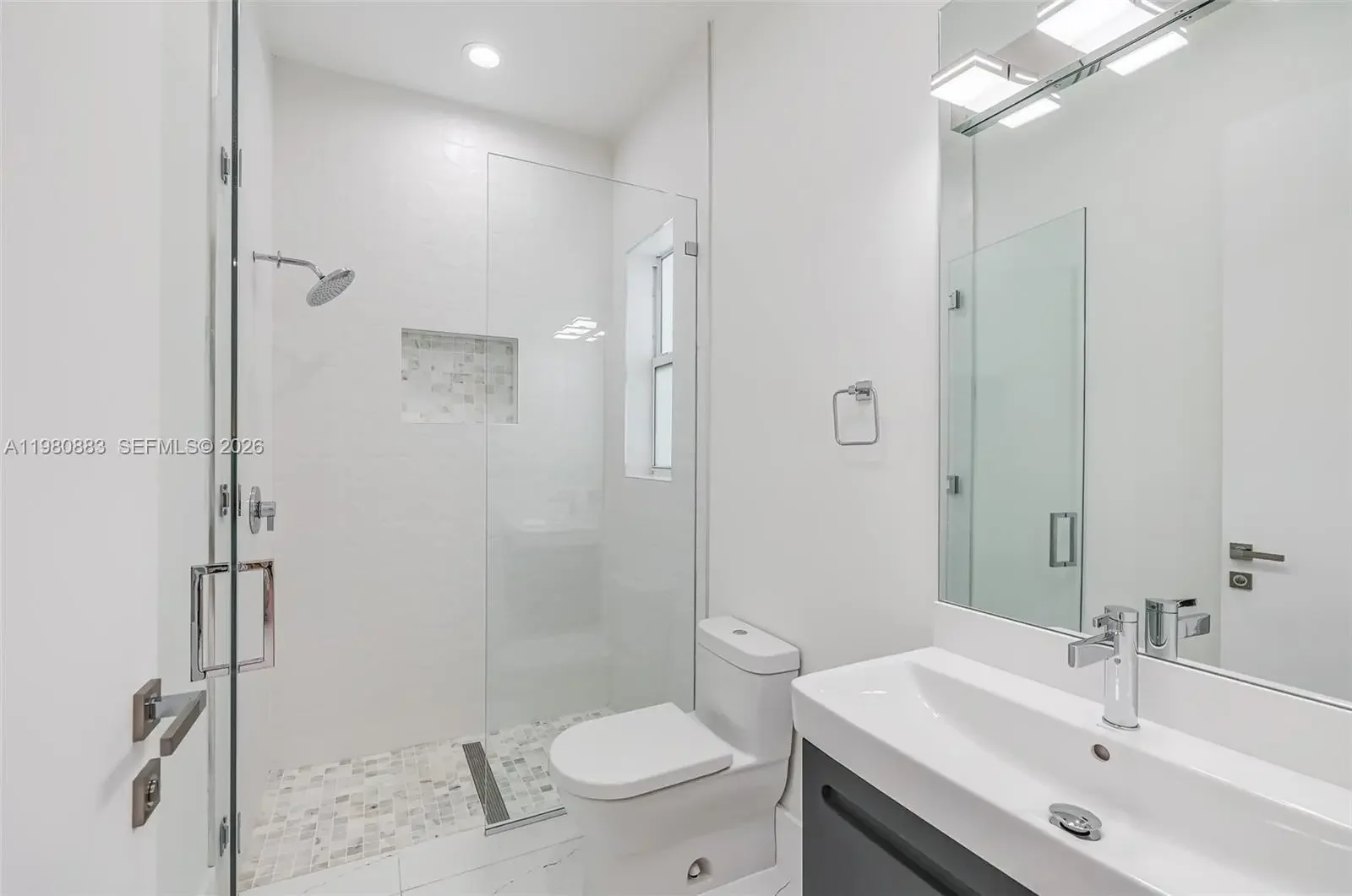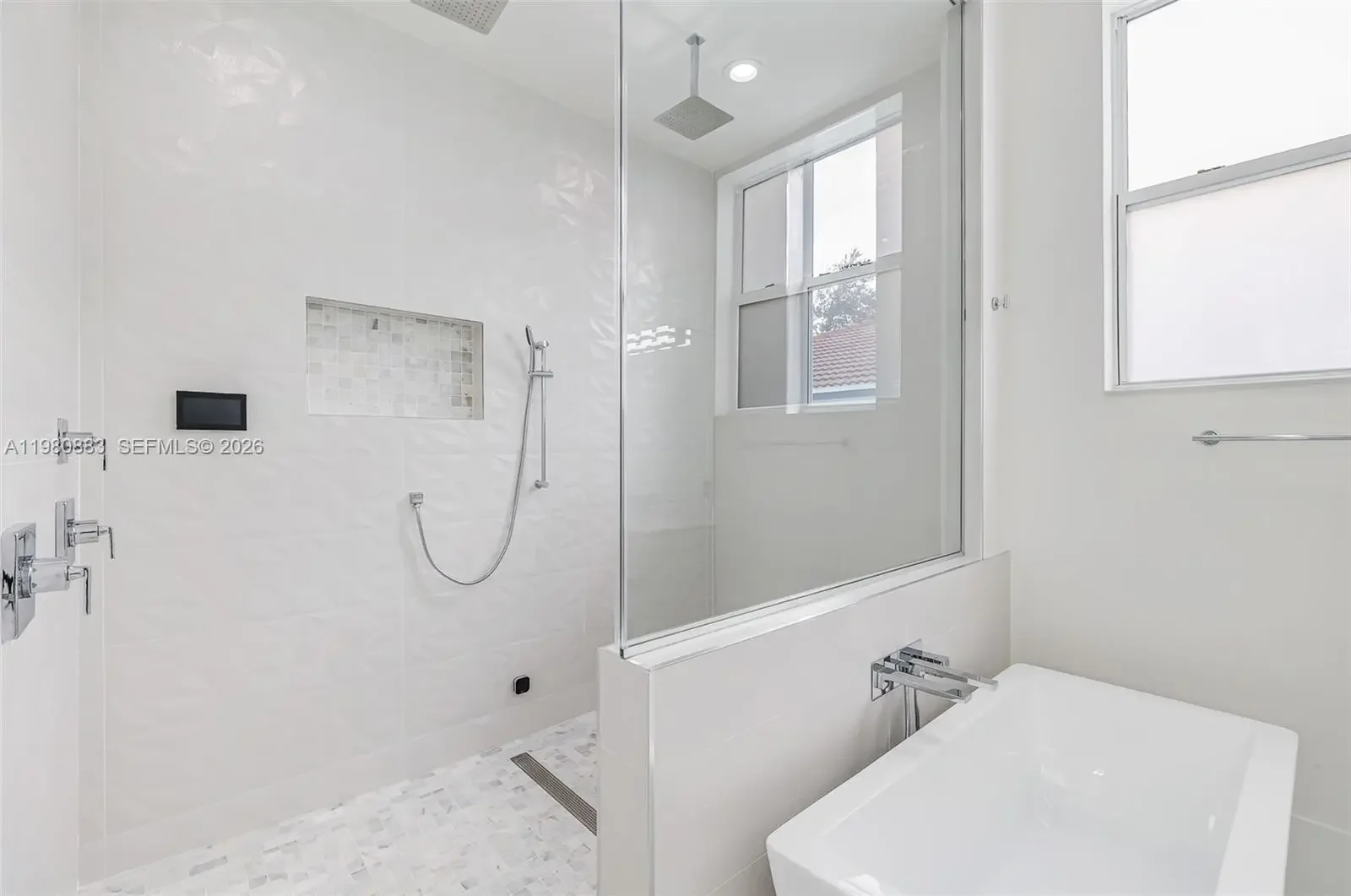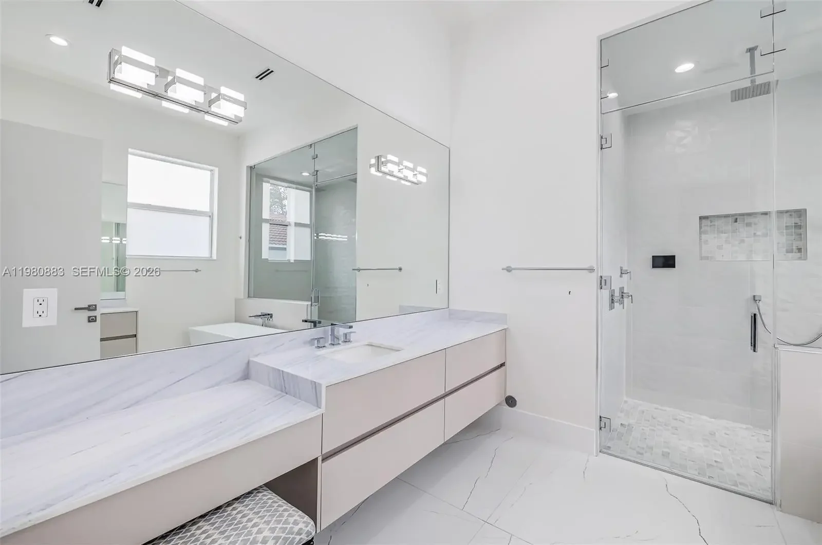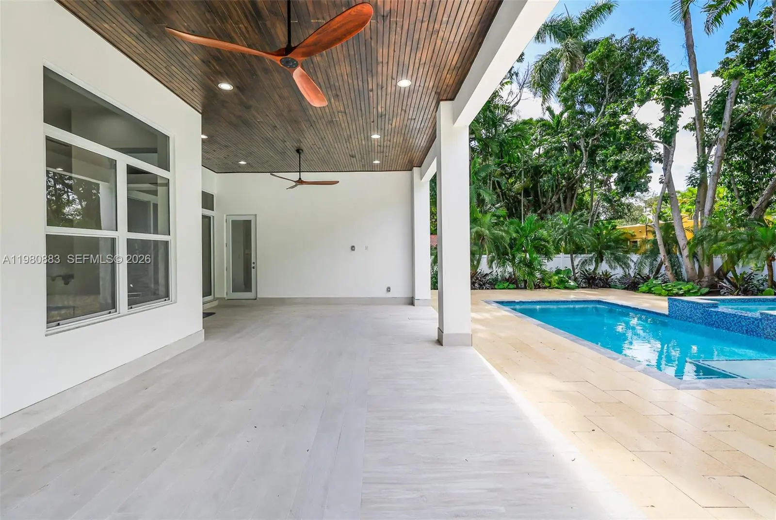 Outstanding new modern one story home in Biscayne Park. High end finishes throughout. Open kitchen with large cooking island, quartz countertops, Miele appliances, separate spacious pantry. Dual tone kitchen cabinets. The home features high ceilings, impact windows and doors, porcelain flooring, Indigo custom doors. Trane AC units. Private backyard with covered patio, pool and spa/hot tub. Split plan 4 bedrooms, walk-in closets, large laundry room, 2 car garage. Close to Miami Design District, Bal Harbour Shops, Miami Country Day school, shopping plazas. Easy access to major highways.