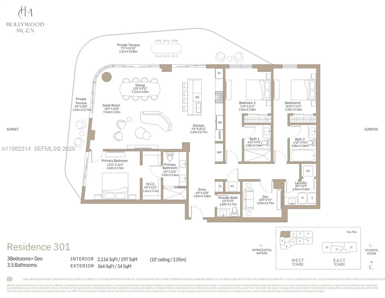 Residence 301 at Hollywood Moon is a beautifully designed 3-bedroom, 3.5-bath residence with a den that embodies luxury, exclusivity, and refined coastal elegance. This spacious floor plan offers expansive living and dining areas designed for both sophisticated entertaining and comfortable everyday living. Floor-to-ceiling windows invite abundant natural light while creating a seamless connection between the interior and the surrounding coastal environment. Thoughtfully designed with modern architecture and elevated finishes, the residence features a generous primary suite with a spa-inspired bathroom and ample closet space, while each additional bedroom includes its own en-suite bath for ultimate privacy and comfort. The versatile den provides the perfect setting for a home office, media room, or additional lounge space. Hollywood Moon offers a boutique residential experience, blending contemporary design with an atmosphere of exclusivity and tranquility. Residents enjoy an elevated lifestyle defined by privacy, elegance, and sophisticated beachfront living in one of South Florida’s most desirable coastal destinations. Ideal as a primary residence, vacation retreat, or luxury investment opportunity, Residence 301 represents the perfect balance of modern luxury and timeless coastal sophistication.