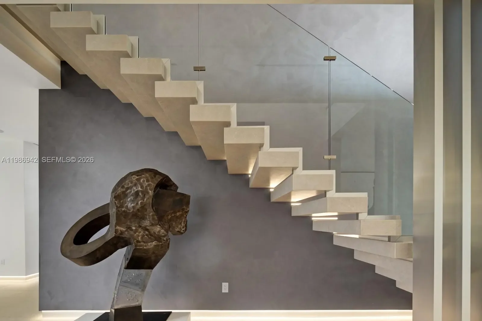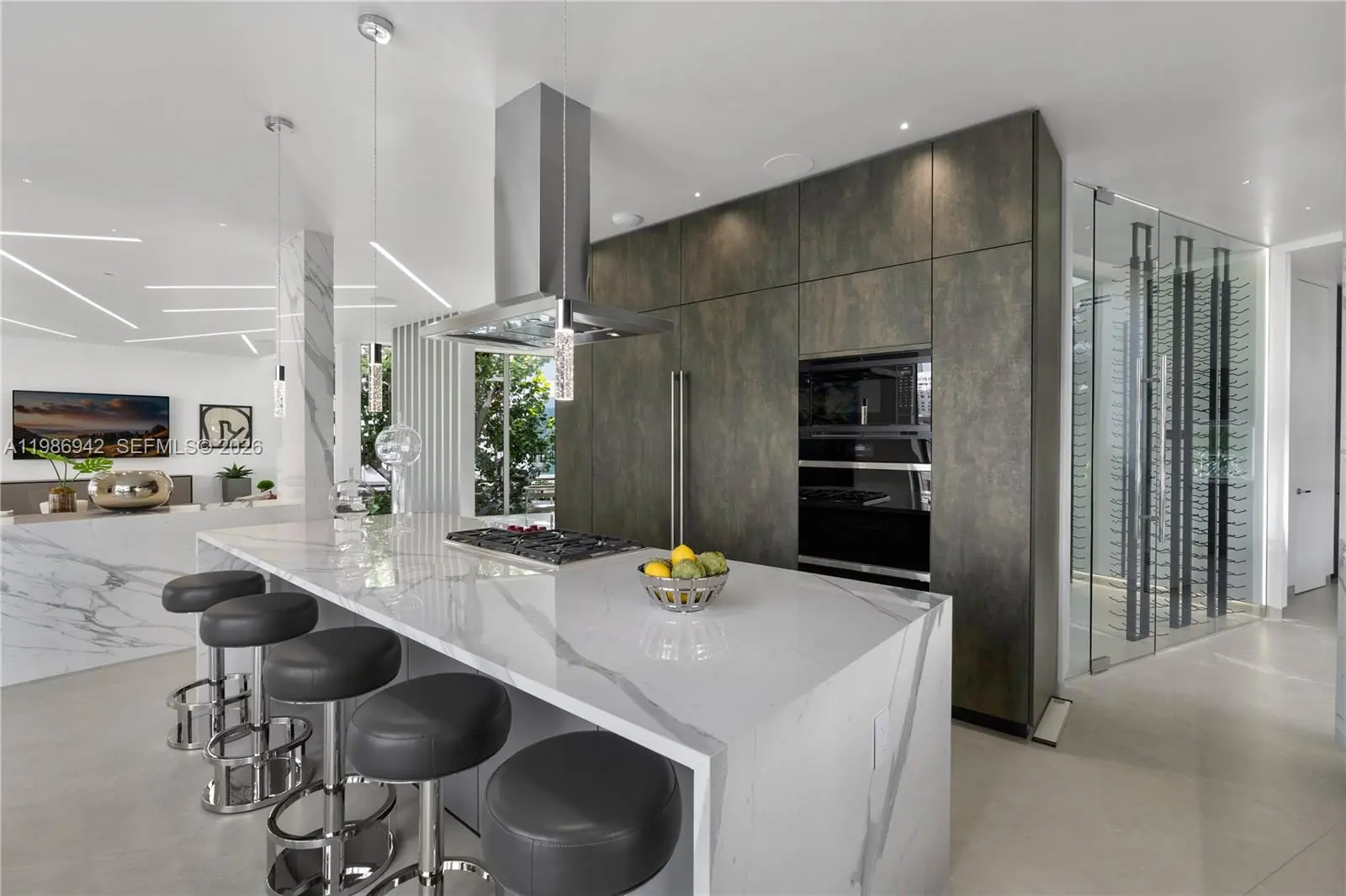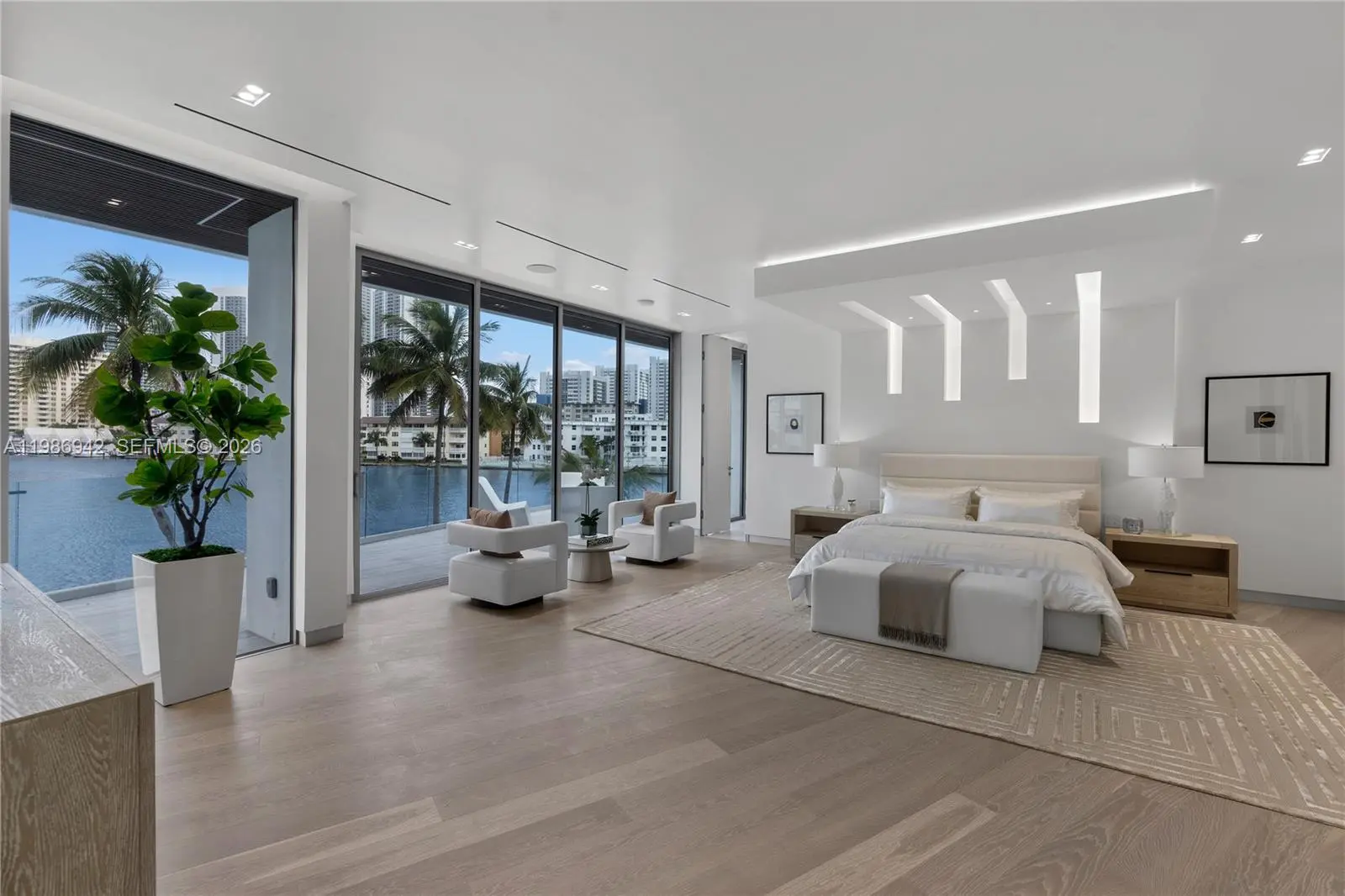 Nestled within the exclusive guard-gated waterfront enclave of Golden Isles in Hallandale Beach, this residence is a true statement of architectural excellence. Positioned on a 16,000 SF point lot along the Intracoastal Waterway, this exceptional estate offers the ability to accommodate a 200 FT mega yacht. Spanning 8,000 SF of meticulously designed interiors, the home features seven bedrooms—five upstairs and two on the main level—plus a private office and fully equipped gym, all crafted with premium materials and custom millwork throughout.The expansive 1,400 SF primary suite offers ultimate privacy with separate his-and-hers bathrooms and custom closets. Additional highlights include a designer European kitchen, wet bar, wine cellar, elevator, and media room. Outdoors, enjoy 315 feet of water frontage, a brand new concrete dock, no fixed bridges, and a resort-style pool with summer kitchen—perfect for true waterfront living and entertaining. Golden Isles is perfectly positioned between Fort Lauderdale and Miami Beach, offering the best of both worlds with unmatched value. Close to A+ schools, Aventura Mall, Bal Harbour shoppes and just 15 minutes to the open ocean.