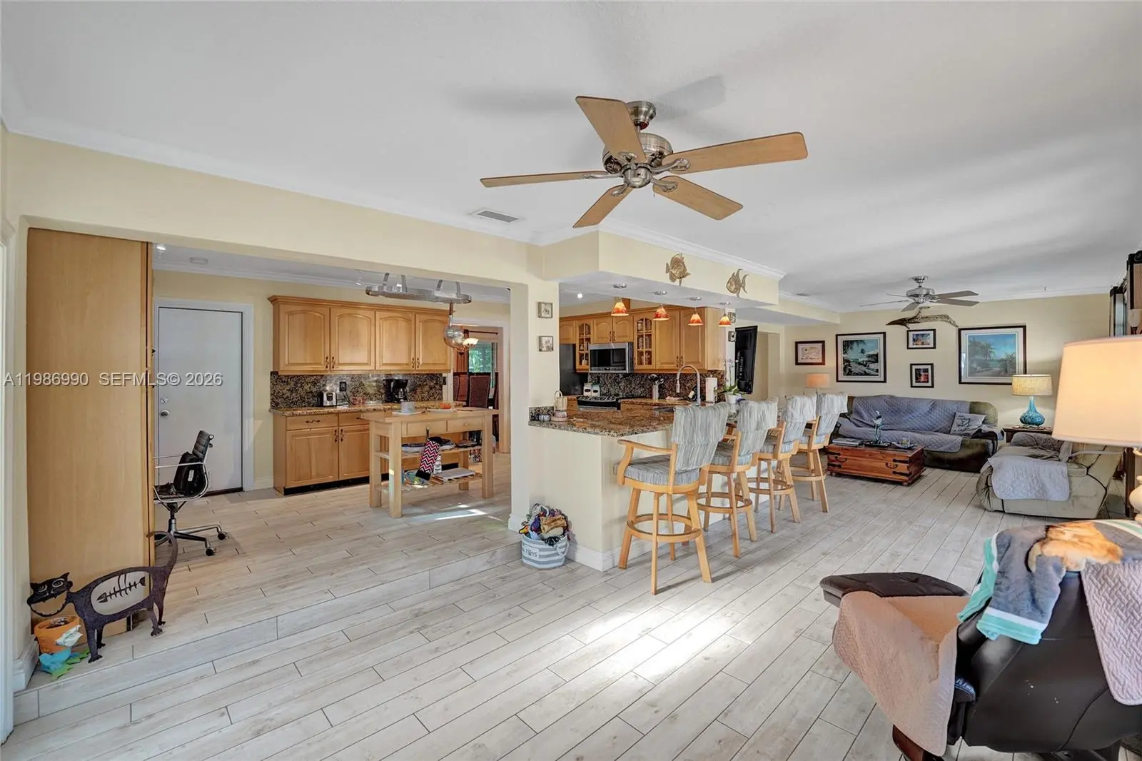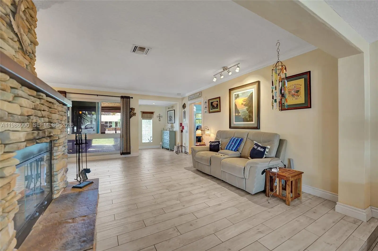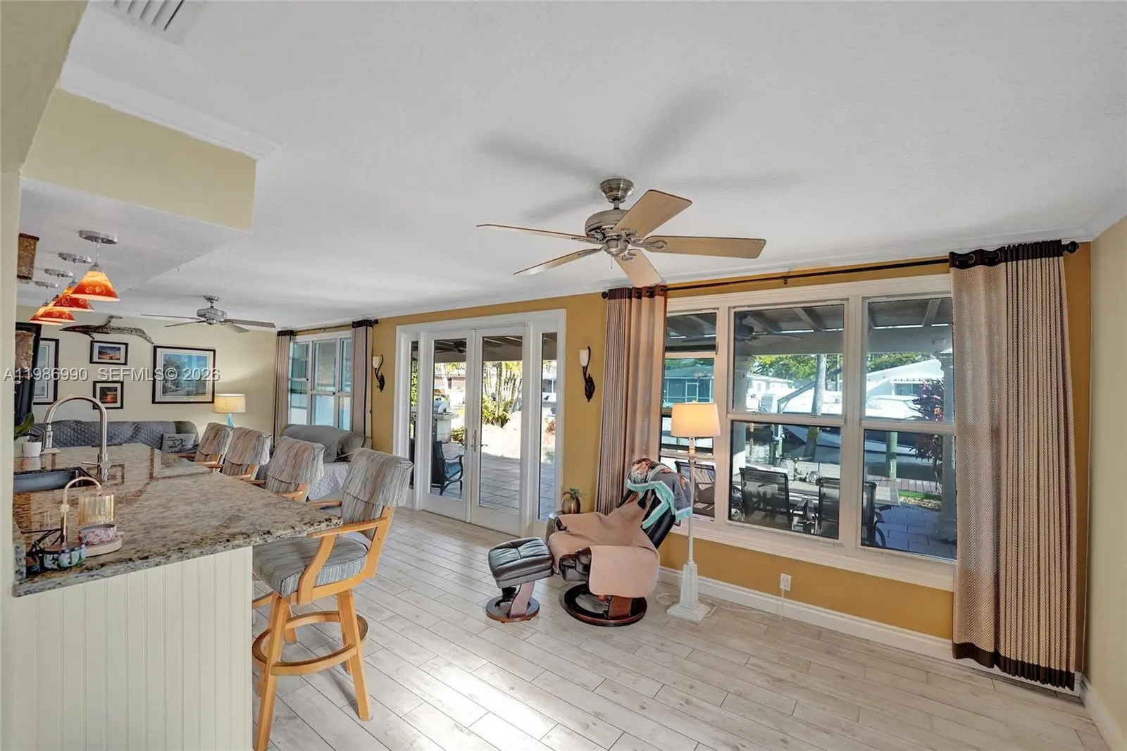 Hidden Gem area!!! Amazing and huge now 2 bed 2 bath Pool home with a garage could easy be converted to a 3 bed house. Home offers a very big living and entertainment area. Going outside through the French doors the almost 700sqft porch is great when it rains in summer to enjoy the outside without getting wet. House has a real working wood fireplace for the cold Florida days. Open kitchen with lots of wood cabinets and granite counter tops. Master bathroom is very spacious with a huge shower and tub. Walk in closet and more closets. The beautiful pool has a nice waterfall feature. New updated guest bathroom with a beautiful shower. Dock 2025, Boatlift 2020, 13 ton B-lift. Freshly painted outside and inside in 2026, Ac compressor is from 2025, tankless water heater, Seawall rebuilt recently. House has impact windows and doors . Only one fixed bridge and you are at the ocean in a very short time. Community offers a boat ramp and Tennis and Playground. Perfect as a vacation home or family home. Close to highways and perfect in the middle between Fort Lauderdale and Miami. Close to airport so could be a great rental income.