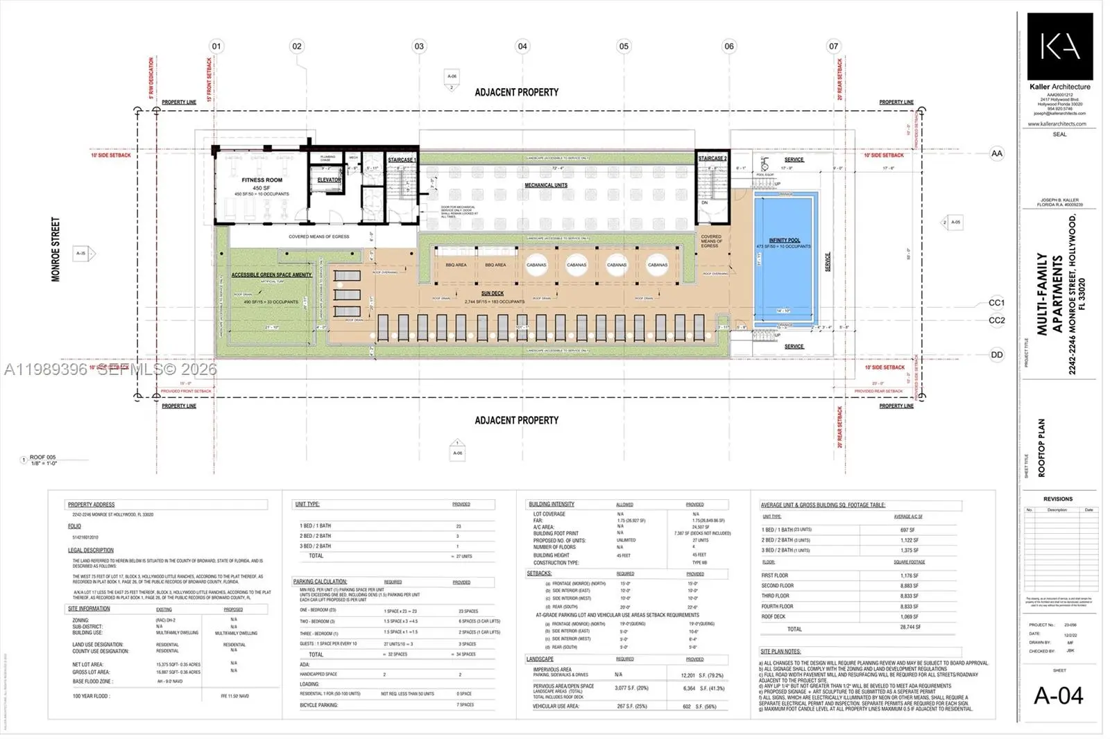 We are excited to present a rare development opportunity lot in the heart of Hollywood. This DH-2 zoned site is shovel-ready, with approved plans and permits for a 4-story, 27-unit multi-family building. The project comes with approved Plans and the Permit! With conventional financing, an investor could achieve: • Equity Multiple: 2.5+ • Gross Return: 155%+ The development plan includes: • Spacious 1, 2, and 3-bedroom units • Rooftop deck with open-air pool • Green space amenity with sun deck, BBQ area, and lounge zone • Fitness center • 34 covered parking spaces plus bicycle parking. Project and plans include 27 units total: 23 units with 1 bed/1 bath, 3 units with 2 bed/2 bath and 1 unit with 3 bed/2 bath. The site is just a 10-minute walk from Young Circle and an 8-minute drive to Hollywood Beach, offering excellent access to restaurants, arts, and transit. Project highlights: • Approved construction plans available • Full geotechnical investigation completed • Zoning and permitting confirmed for immediate build-out. Close with the permit in hand and start construction the next day!