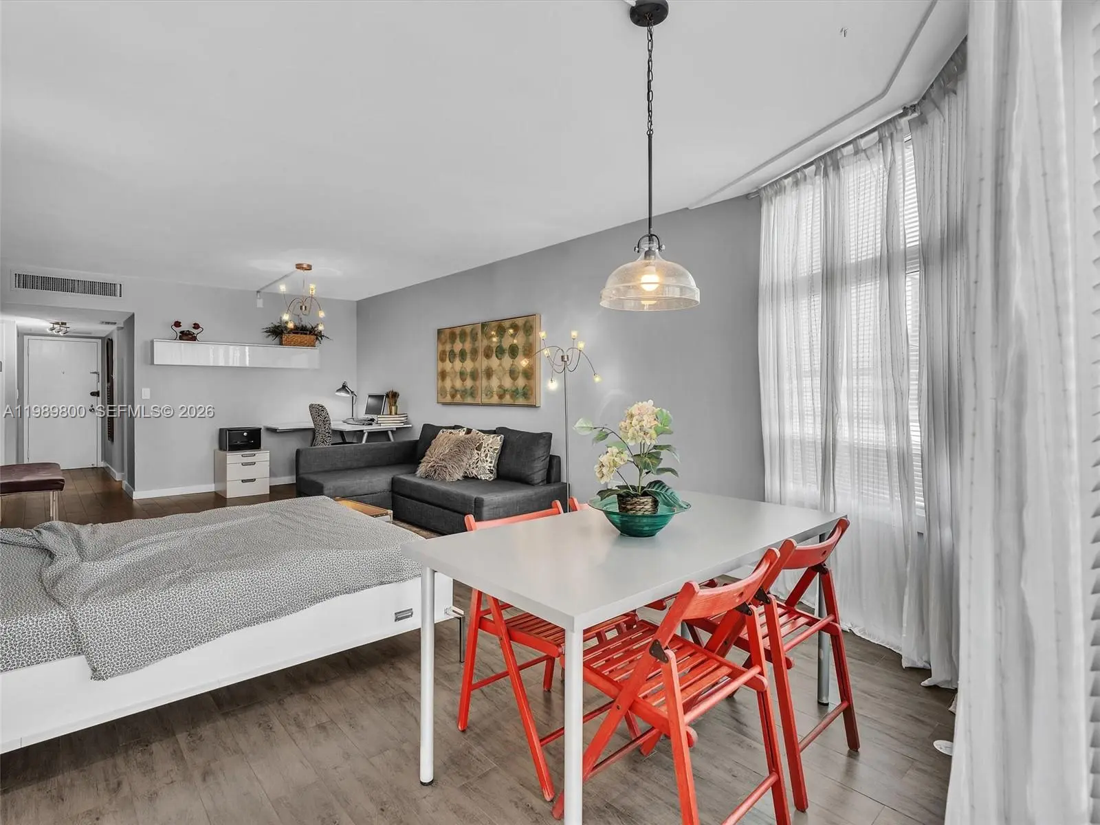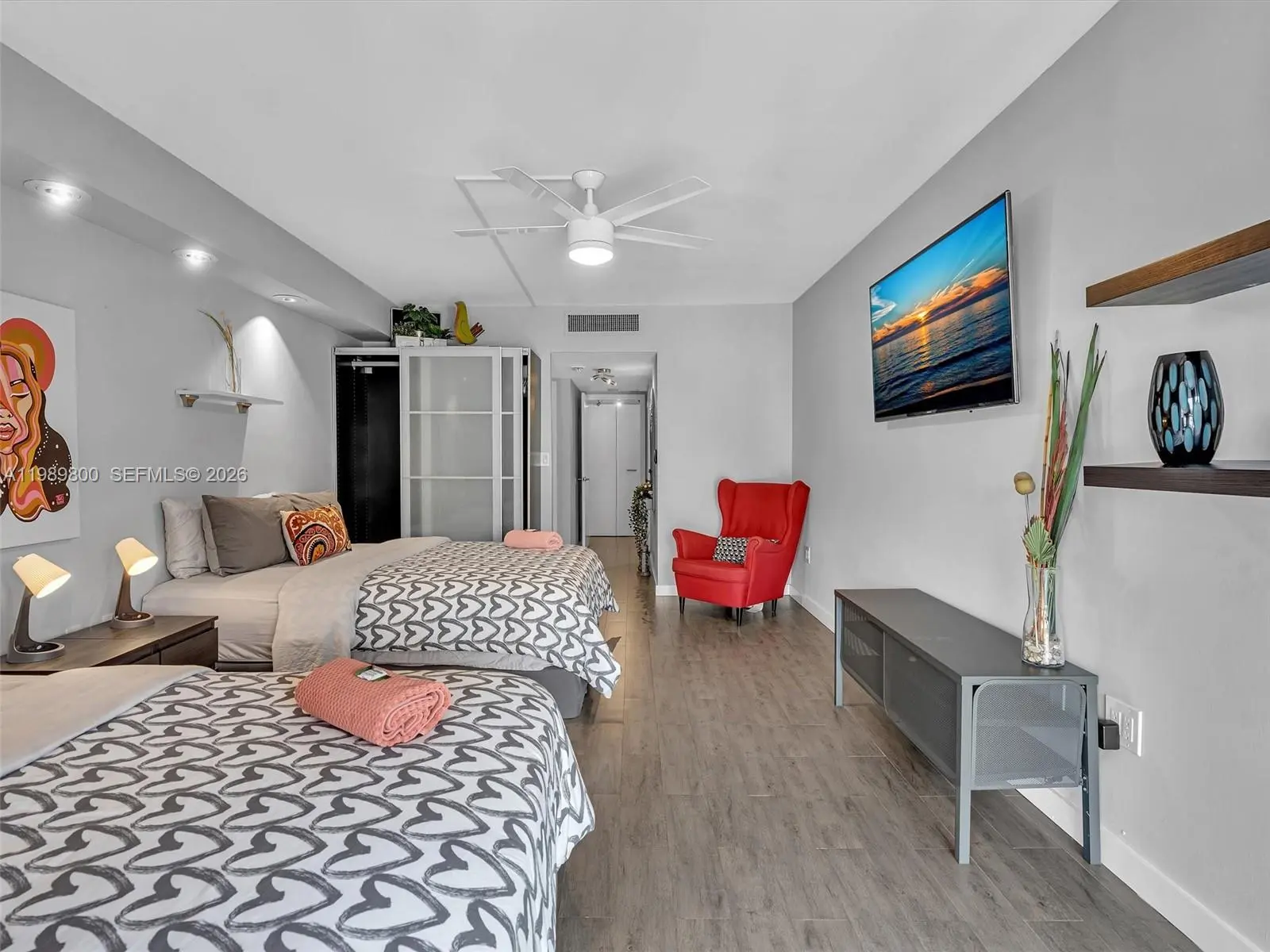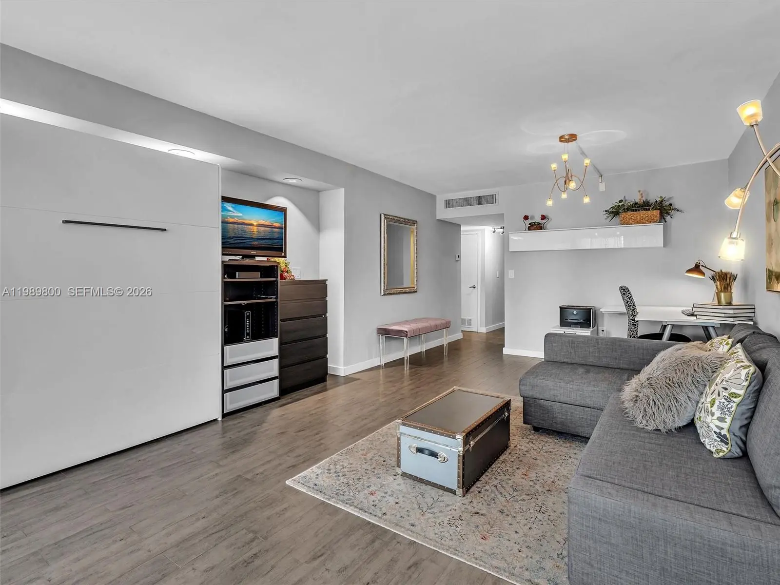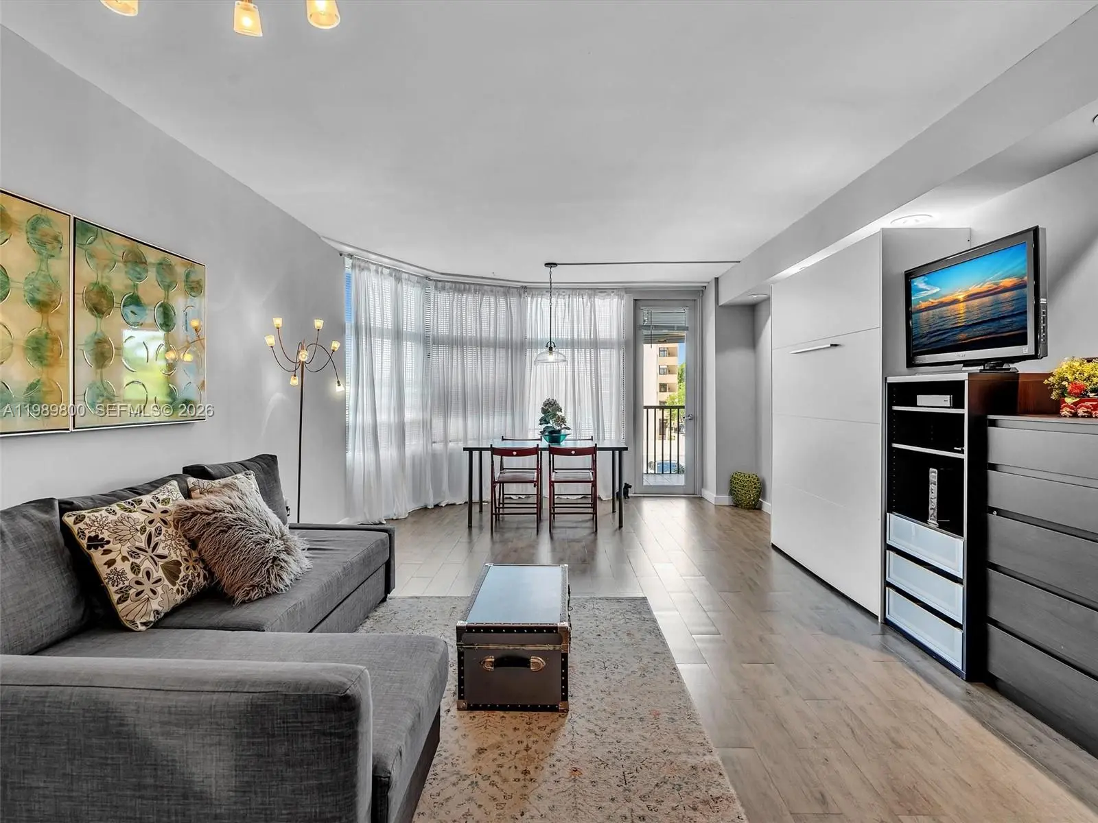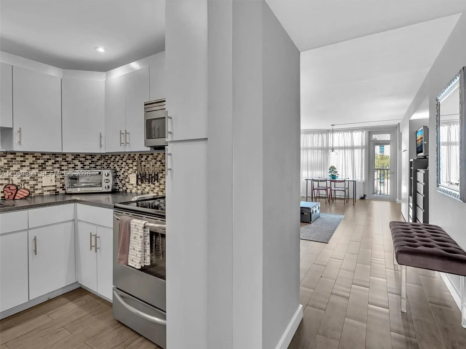 Fall in love with this move-in ready, fully furnished 1-bedroom, 1.5-bath condo in the heart of Aventura. Tastefully renovated with high-end finishes, it features a spacious white kitchen with stainless steel appliances, wood-look tile floors, and a Murphy bed in the living room for guests. Enjoy beautiful sunsets from the large balcony, accessible from both the living area and bedroom. Located in a charming all-ages boutique building offering a heated pool (under renovation), gym, party room, BBQ are, cable and security 24 hours. Prime location on a 3-mile path around Turnberry Golf Course. Close to top-rated schools, Aventura Mall, fine dining, shopping, entertainment, houses of worship, the beach, I-95, and in the middle of Miami and Ft Lauderdale airport. City shuttle available. Pool and balconies are temporary closed due to renovations.