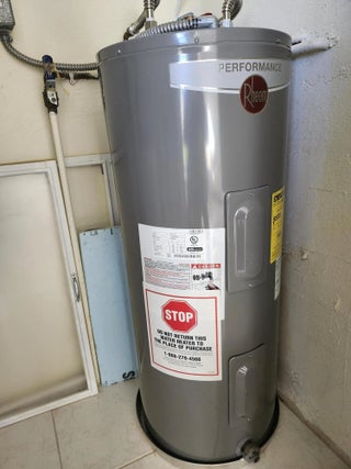 Electric Water Heater, Dishwasher, Electric Range, Microwave, Refrigerator, Vented Exhaust Fan, Water Heater