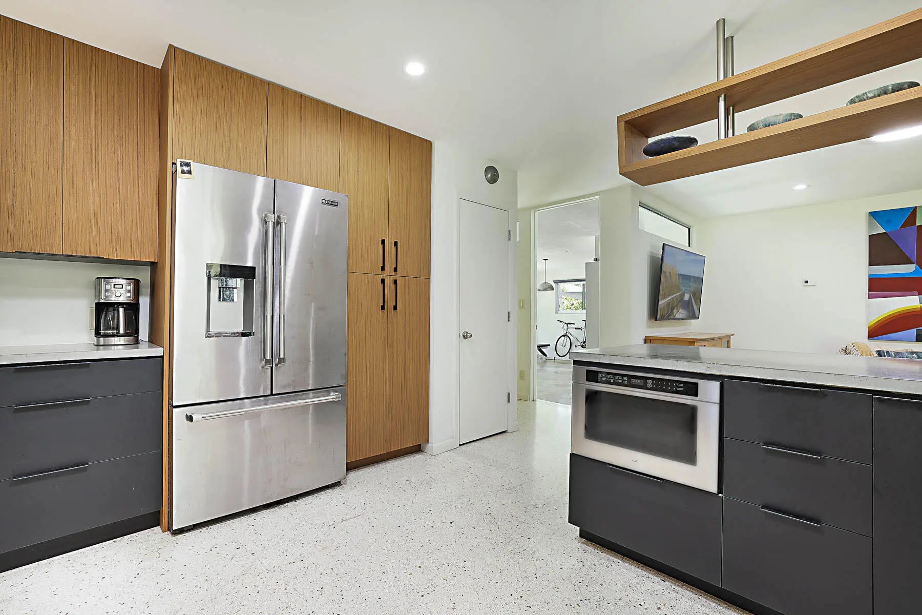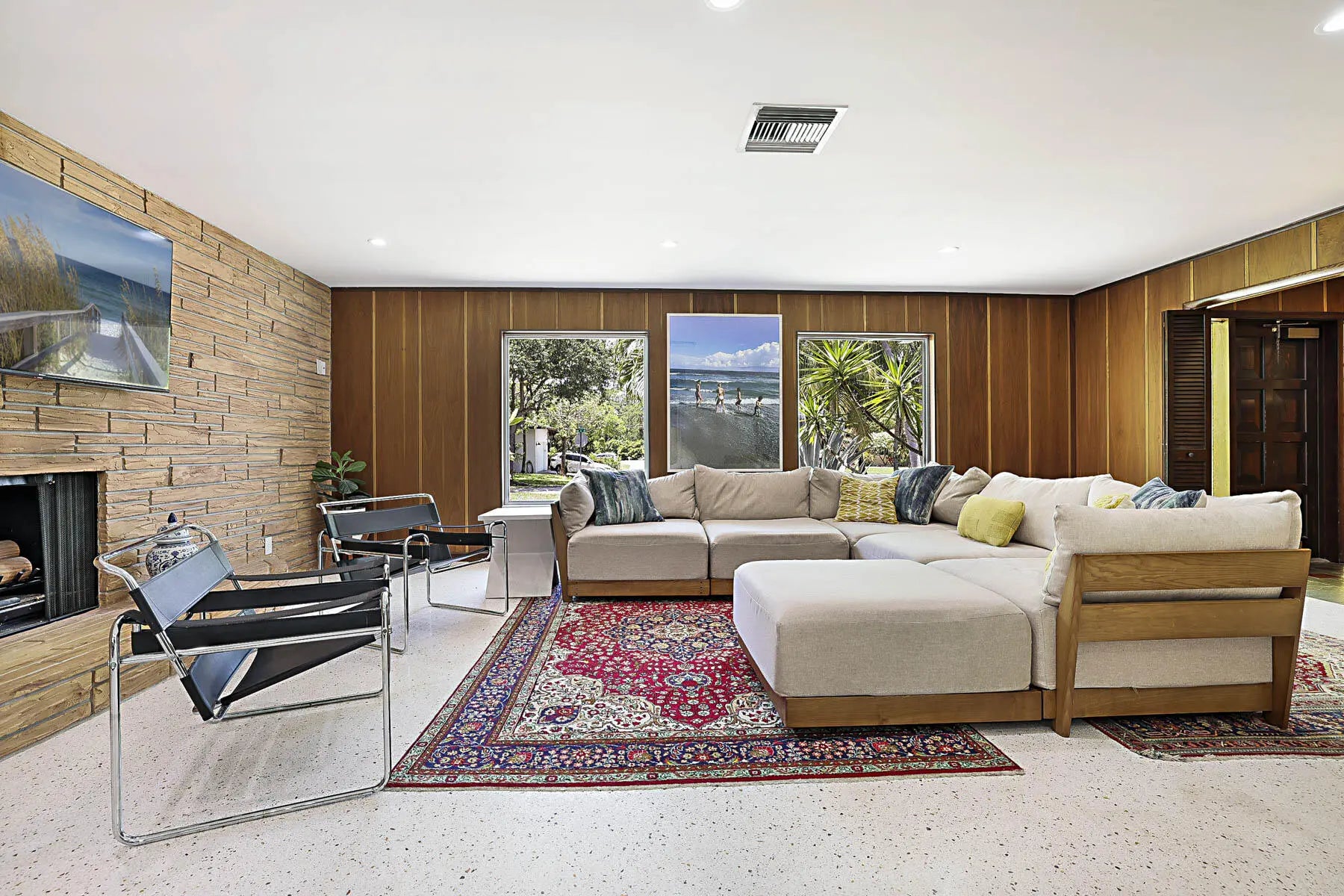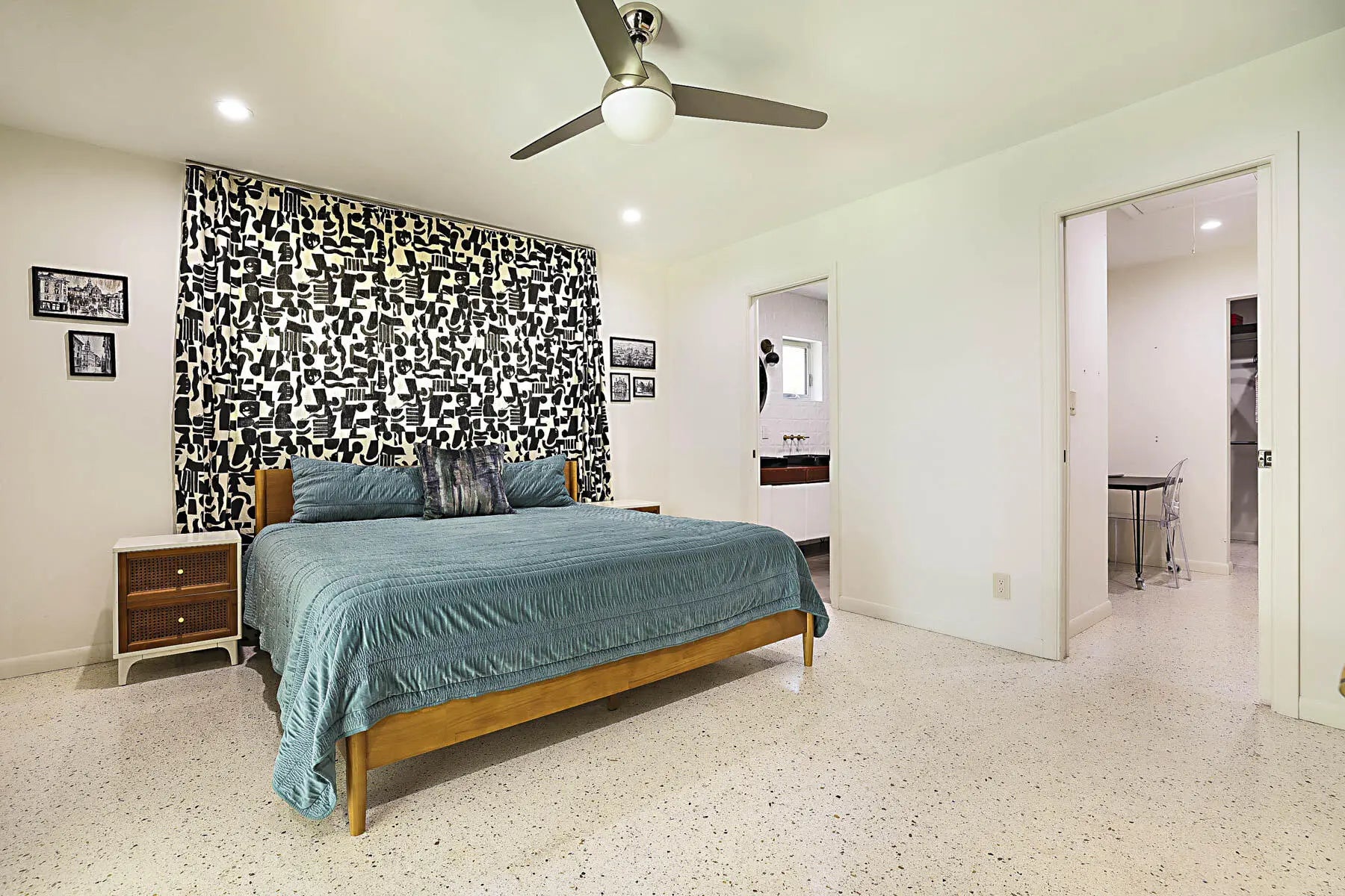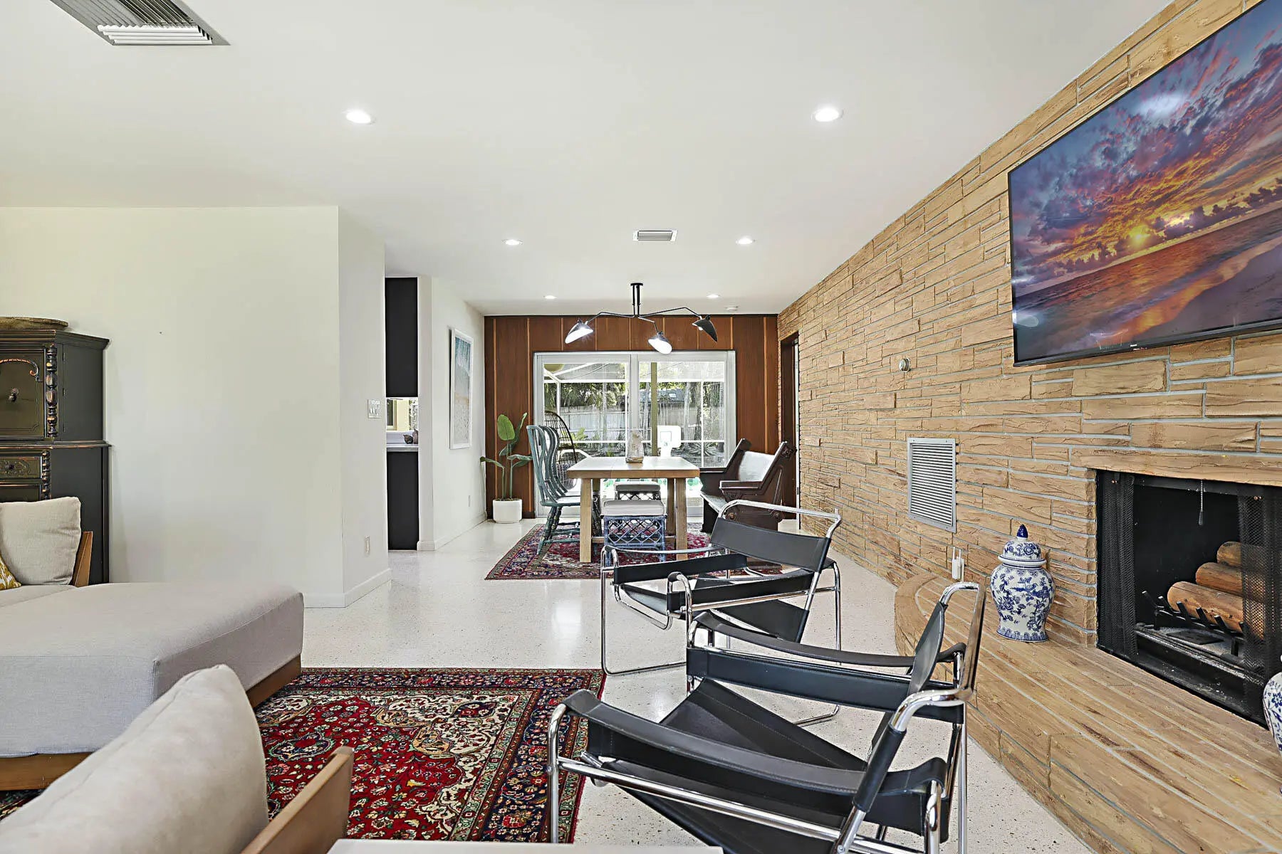 Experience East Boca living at its finest in this beautifully renovated 4-bedroom, 3-bathroom Mid-Century Modern home with a sparkling private pool. Showcasing stunning Terrazzo flooring throughout, this residence seamlessly blends classic architectural charm with thoughtful modern updates. A converted garage serves as a highly versatile 5th room—complete with a built-in Murphy bed and a dedicated mini-split AC—making it the perfect home office or guest suite. Step outside to enjoy year-round relaxing and entertaining in the covered pool area. Perfectly situated in a tranquil, highly sought-after neighborhood, you are just minutes away from Mizner Park, South Pavilion Beach, the Brightline Station, FAU, the Boca Raton Library, and Baptist Memorial Hospital.