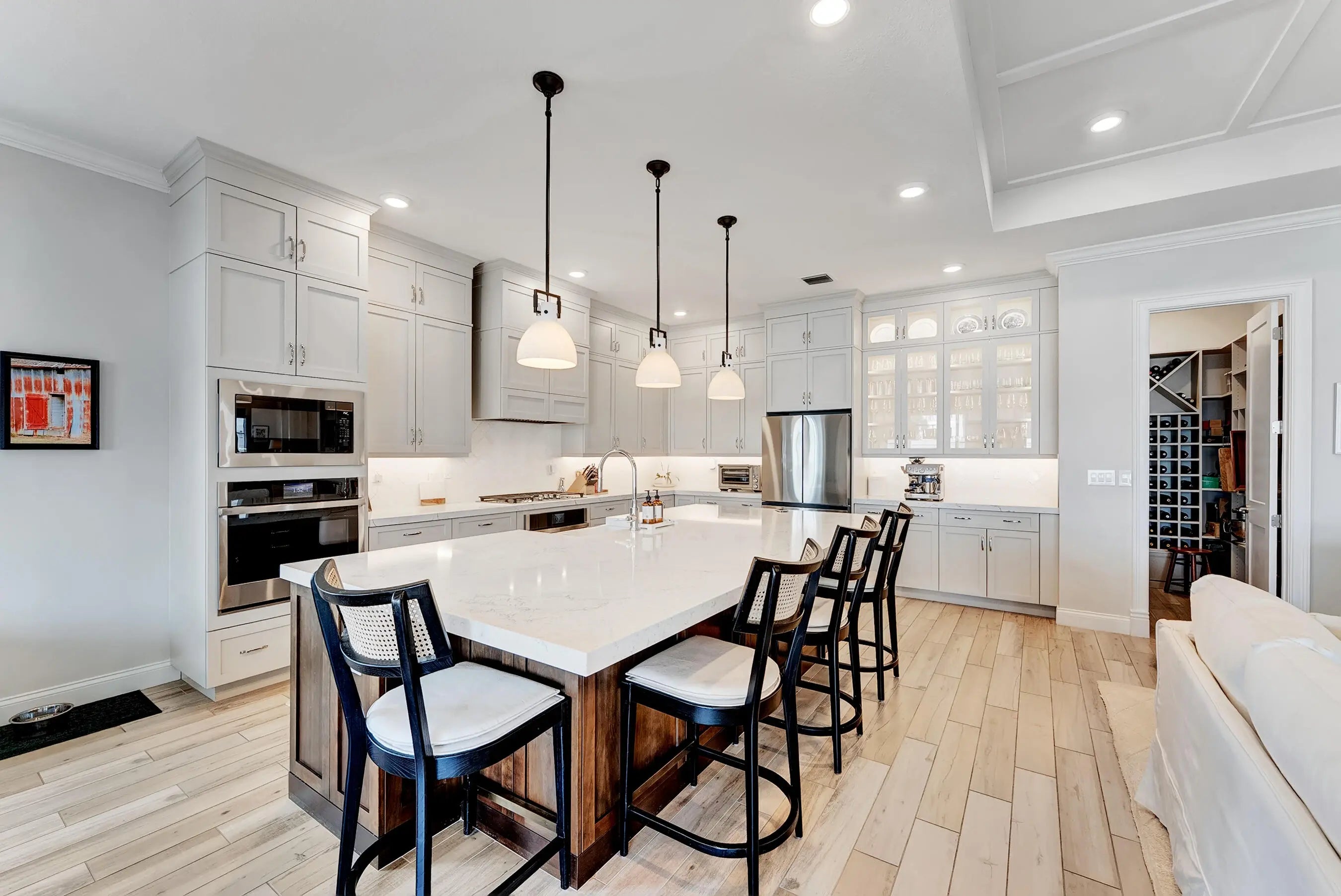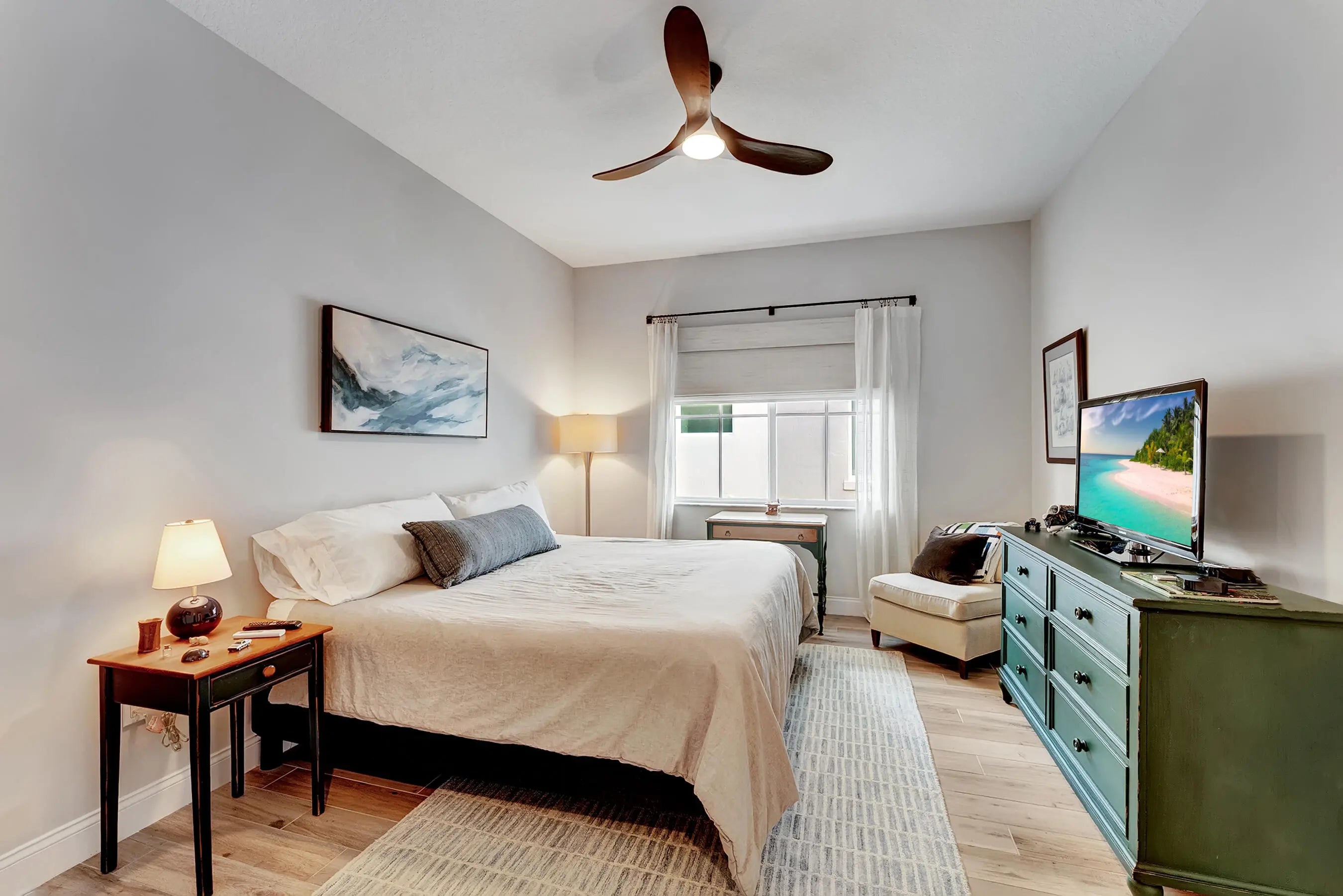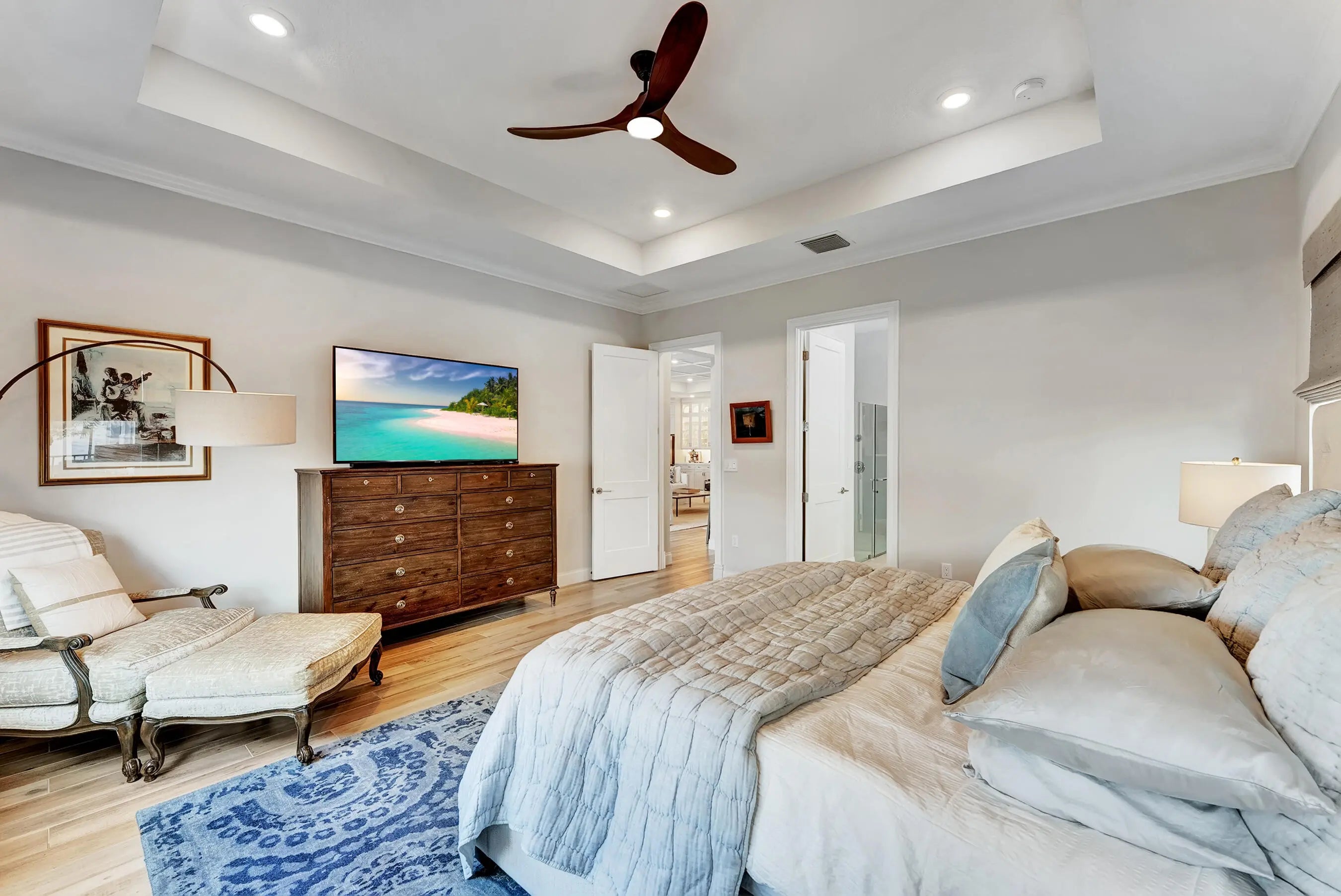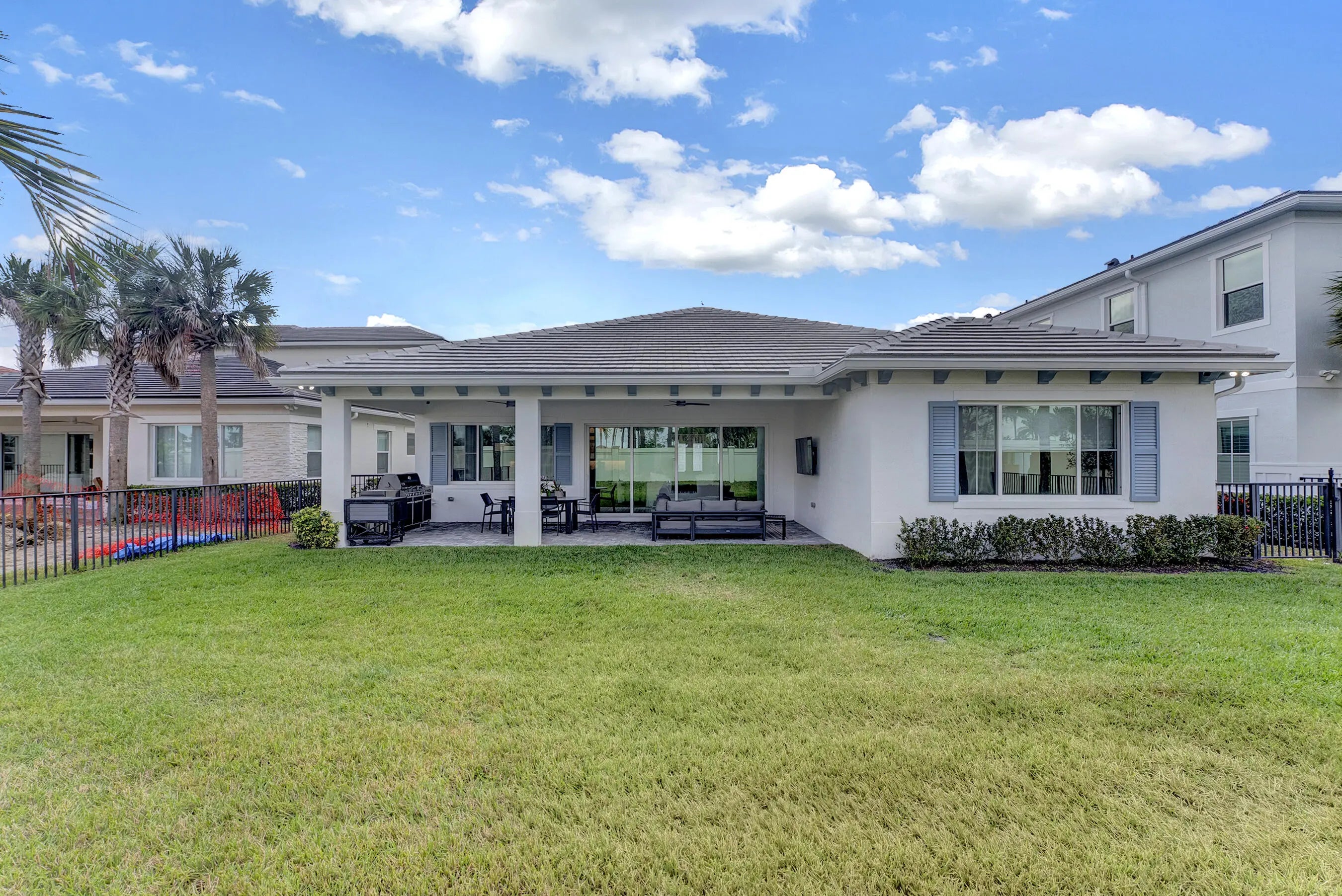 This ranch home, only 3 years old, is located in the desirable La Terre at Avenir and offers a bright, open layout designed for modern living. The spacious great room with coffered ceiling flows into a stunning chef's kitchen featuring quartz countertops, oversized island, upgraded cabinetry to the ceiling, and a custom California Closets pantry. The primary suite offers a spa-style bath with soaking tub, dual vanities, and custom closet system. Impact glass windows and doors, Roof only 6 months old, A/C and tankless water heater (3 yrs). Smart upgrades include ethernet/power for wall-mounted TVs in great room, primary suite and covered patio, ceiling fans throughout, upgraded lighting, and monitored security. Enjoy outdoor living on the covered patio and private backyard.