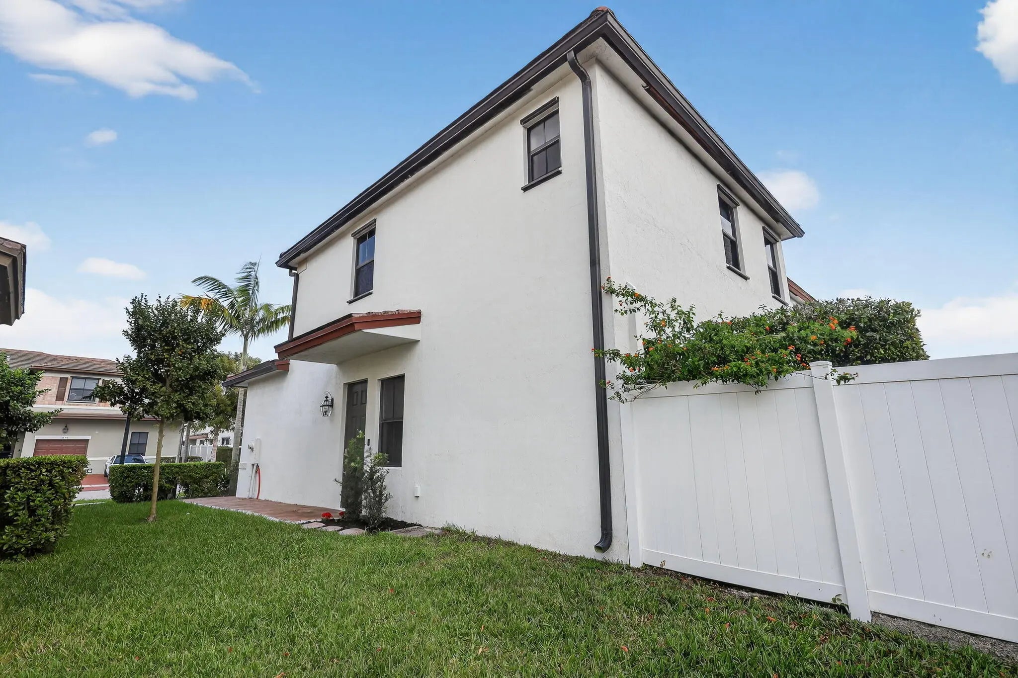 Corner-unit 2-story TH in a highly sought-after gated Aquabella community! This spacious 4BR/3BA home features a bright open layout and new wood-laminate flrs t/o. Modern kitchen w/ SS appls, ideal for everyday living & entertaining. Convenient 1BR & full BA on the 1st flr - perfect for guests or in-laws. Enjoy a private fenced backyard w/ artificial turf and no neighbors behind, offering extra privacy and low maintenance outdoor space. Additional features incl laundry rm, tankless water heater, hurricane panels, and 1-car garage w/ auto opener + driveway prkg. Residents enjoy resort-style amenities: clubhouse, pools, fitness ctr, playground & 24-hr security. Excellent location near major hwys, shopping, dining & schools. A must see!