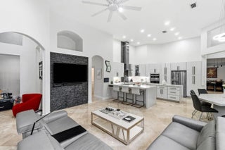 Single-story residence offering 4 bdrm w/ a convertible 5th bdrm option, showcasing newly renovated modern design and architecture and an open, gallery-like floorplan curated for refined living and grand entertaining. The Primary Suite unfolds as a private retreat with separate dressing rooms and spa-caliber comfort. The epicurean's kitchen anchors the home with a custom quartz built-in banquet enhanced by a dedicated water filtration system. Outdoors, a heated pool and spa create a serene backdrop for evening gatherings & sun-filled days. Five newer A/C systems w/ individual bedroom mini-splits, impact windows & doors, central vacuum, natural gas service w/ gas water heater & dryer, and a full security camera system complete this exceptional offering, with the roof replaced 3 years ago.