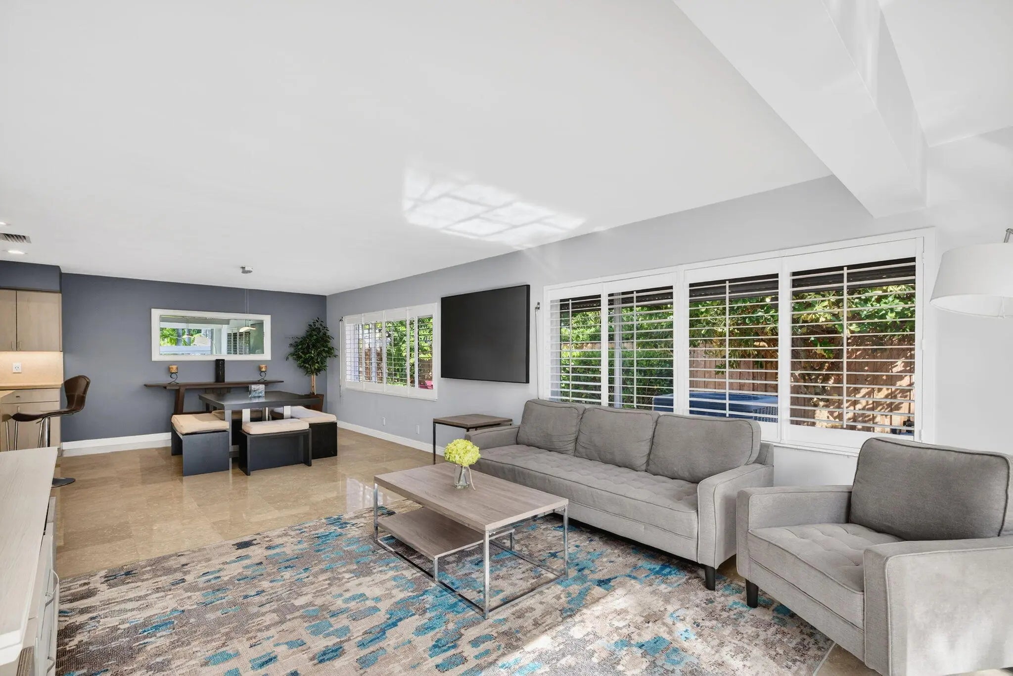 Something really special in sought after Mary Knoll community offers total privacy and is in "Move-In' condition. Recent improvements include New Metal Roof (22), New A/C (24), Pool Re-marcited (21) with heater and automatic refill. Kitchen has been updated with granite countertops, SS appliances and a large Island with seating. Bathrooms have been remodeled as well. There is a privacy wall around the entire property with a private courtyard off of the family room great for a fire pit and entertaining. Paver driveway and walkways. Additional entertaining space by the pool. Rolladen shutters. Huge Primary bedroom has room for a sitting area, nursery or office set up. Great location. A short drive or bike ride to the ocean. This unique home is like spending your life on vacation. No Flood Zone! Walk to West Minister School, close to Pine Crest, Cardinal Gibbons, and other top rated public schools. Property can be purchased furnished or unfurnished. This house would also be perfect for an Air B &B.