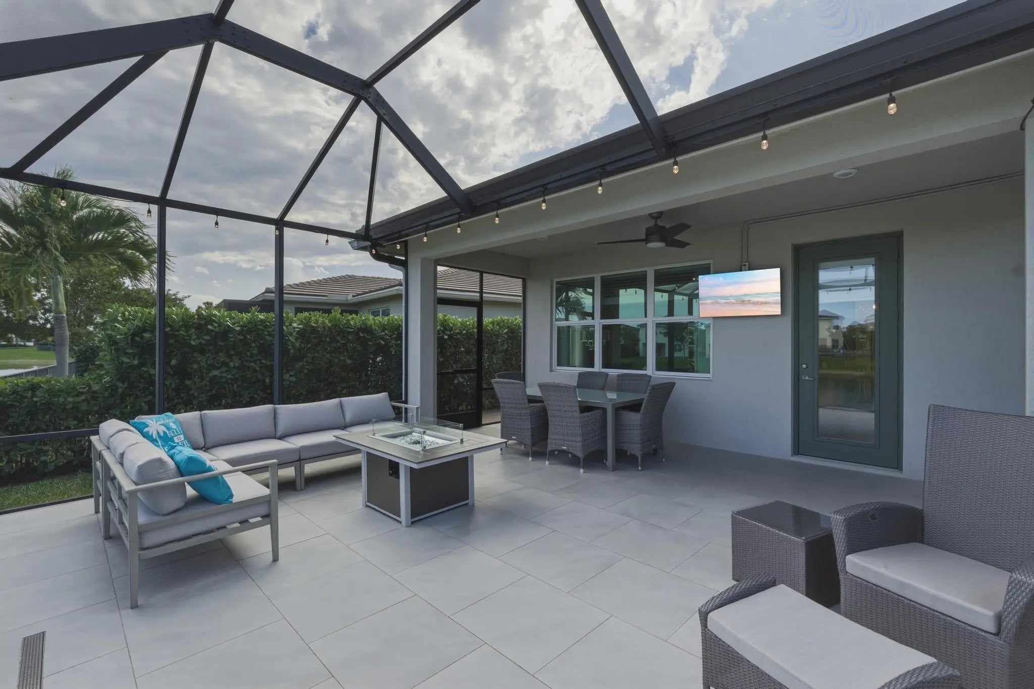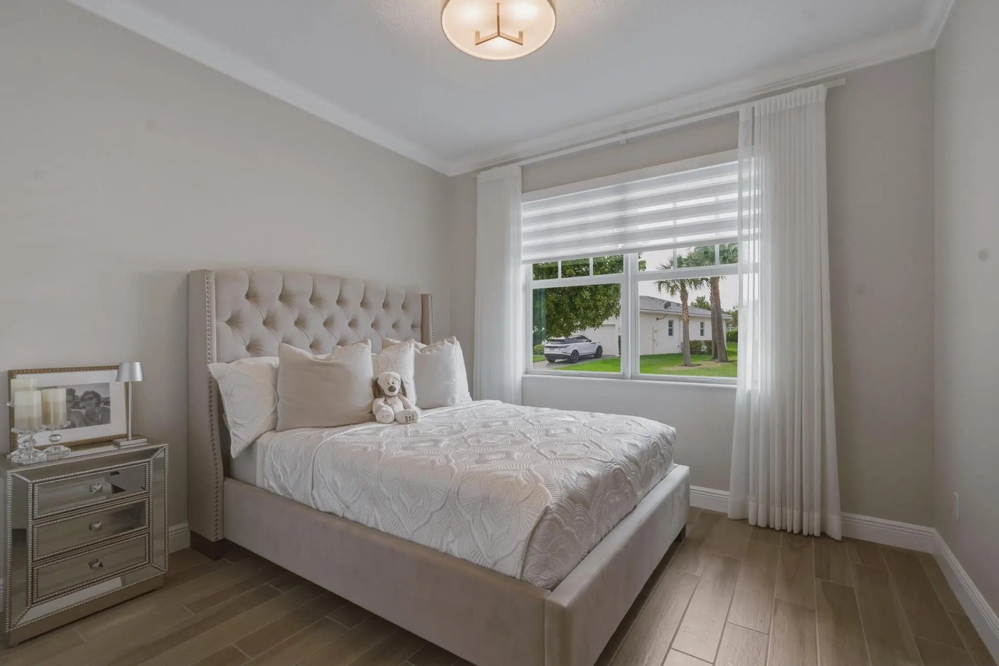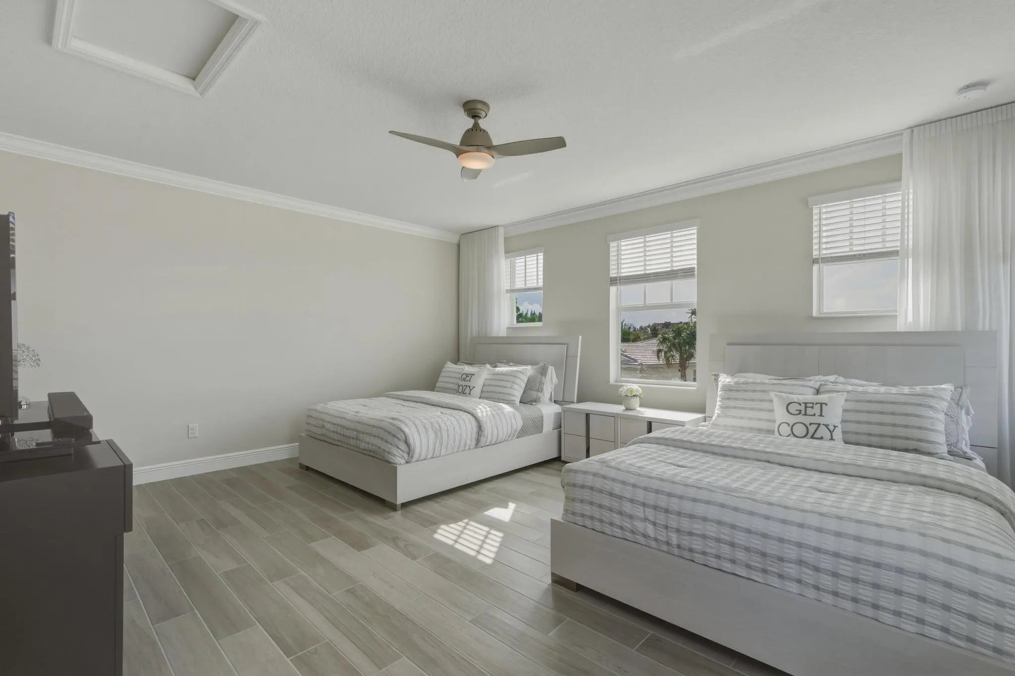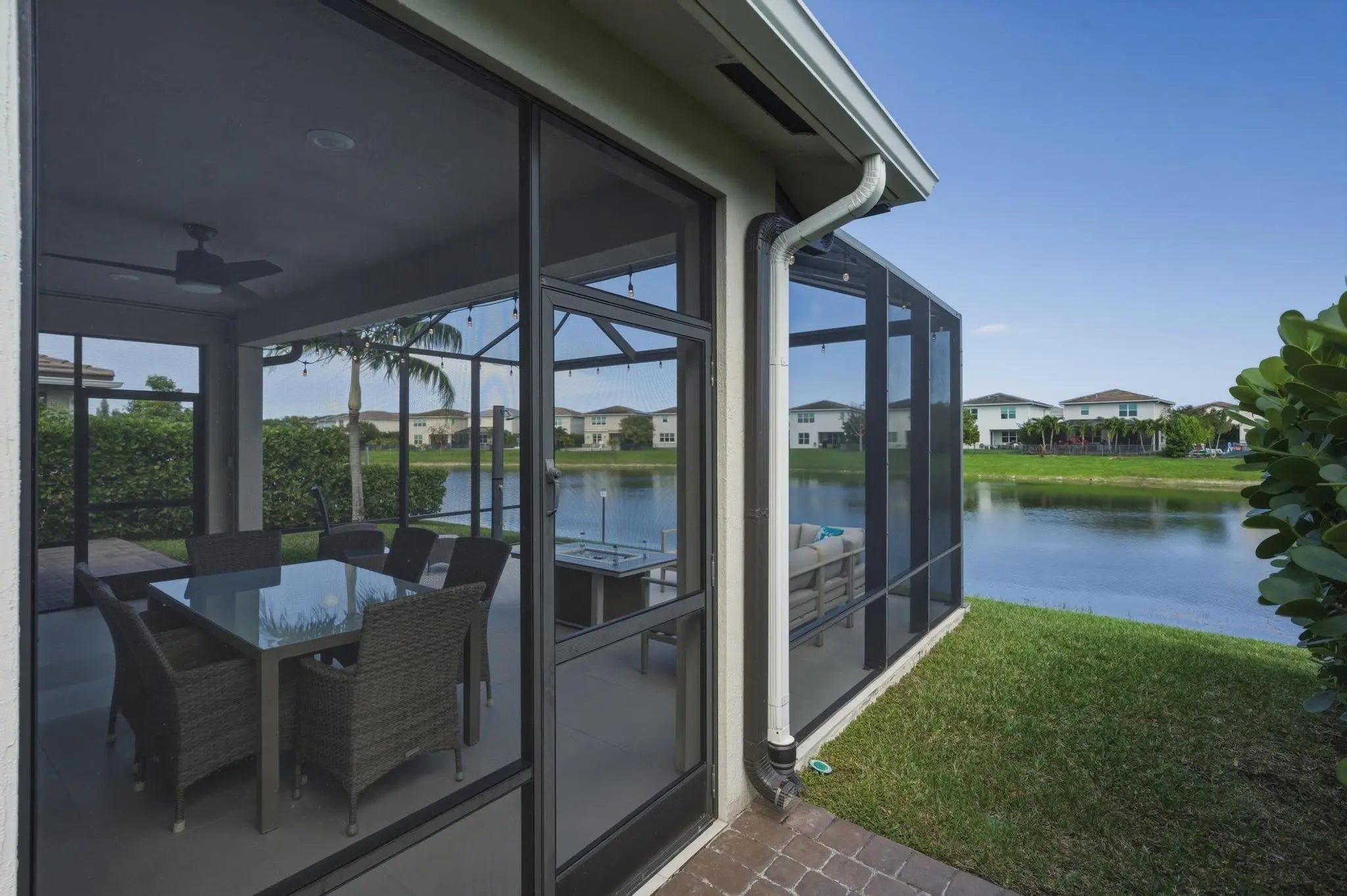 Exceptional & Exquisite 2020 Construction Luxury Smarthome on waterfront lot in new gated community. Showstopping screened patio w/tile over concrete slab & paved side yards, lush greenery, exterior stone trim, shaker cabinets, Carrara quartz counters, wood-look tile, impact glass, paver driveway, 2-car epoxy garage, top-of-the-line appliances, wine fridge, laundry room. 1st floor Master w/dual sinks, w/c, XL shower & walk-in California closet. Guest rooms & bath on other side of home offer quiet spaciousness & built-in office.. 2nd master upstairs. Upgraded faucets, crown moulding, window treatments, light fixtures, ceiling fans. Lawn service incl. Club w/gym, totlot, lounge deck, beach-entry freeform pool. Near Publix, Whole Foods, Boca Town Ctr, 95, Turnpike, beach. Furniture for sale.