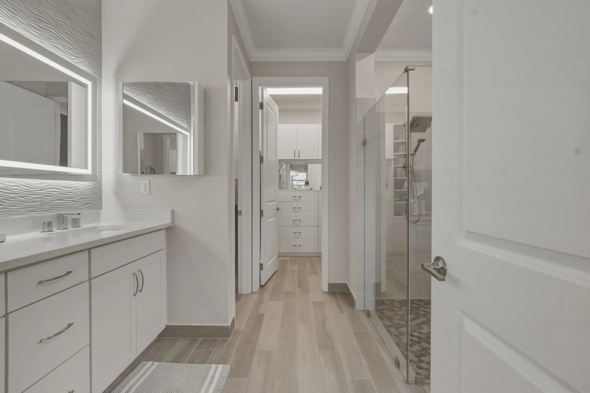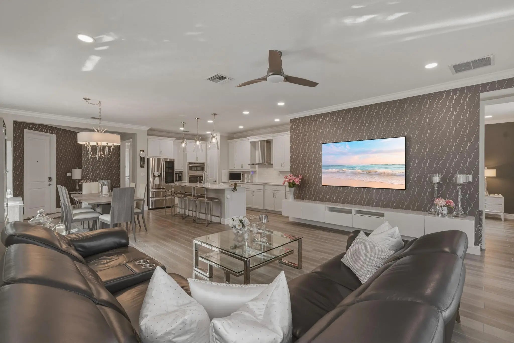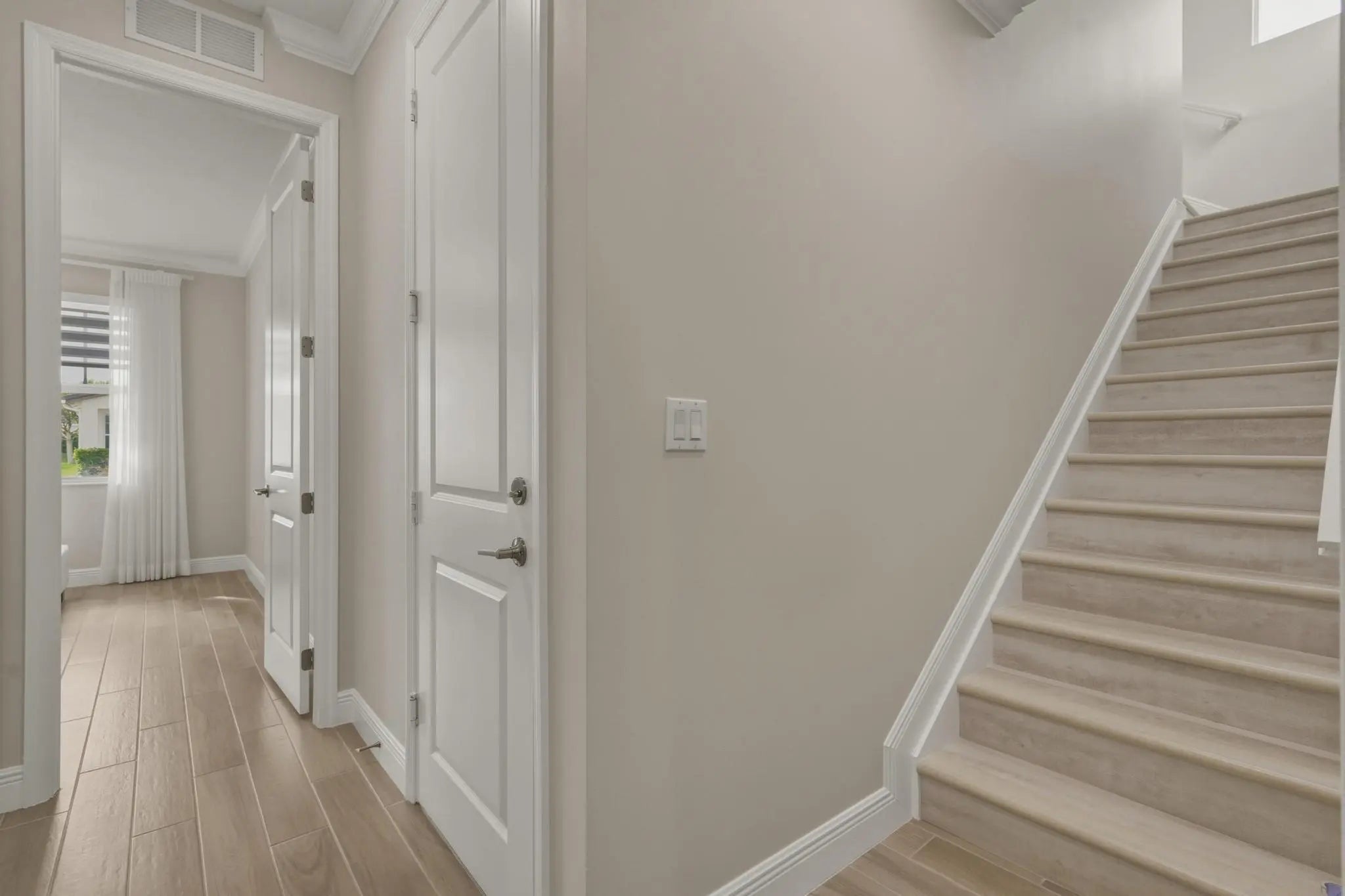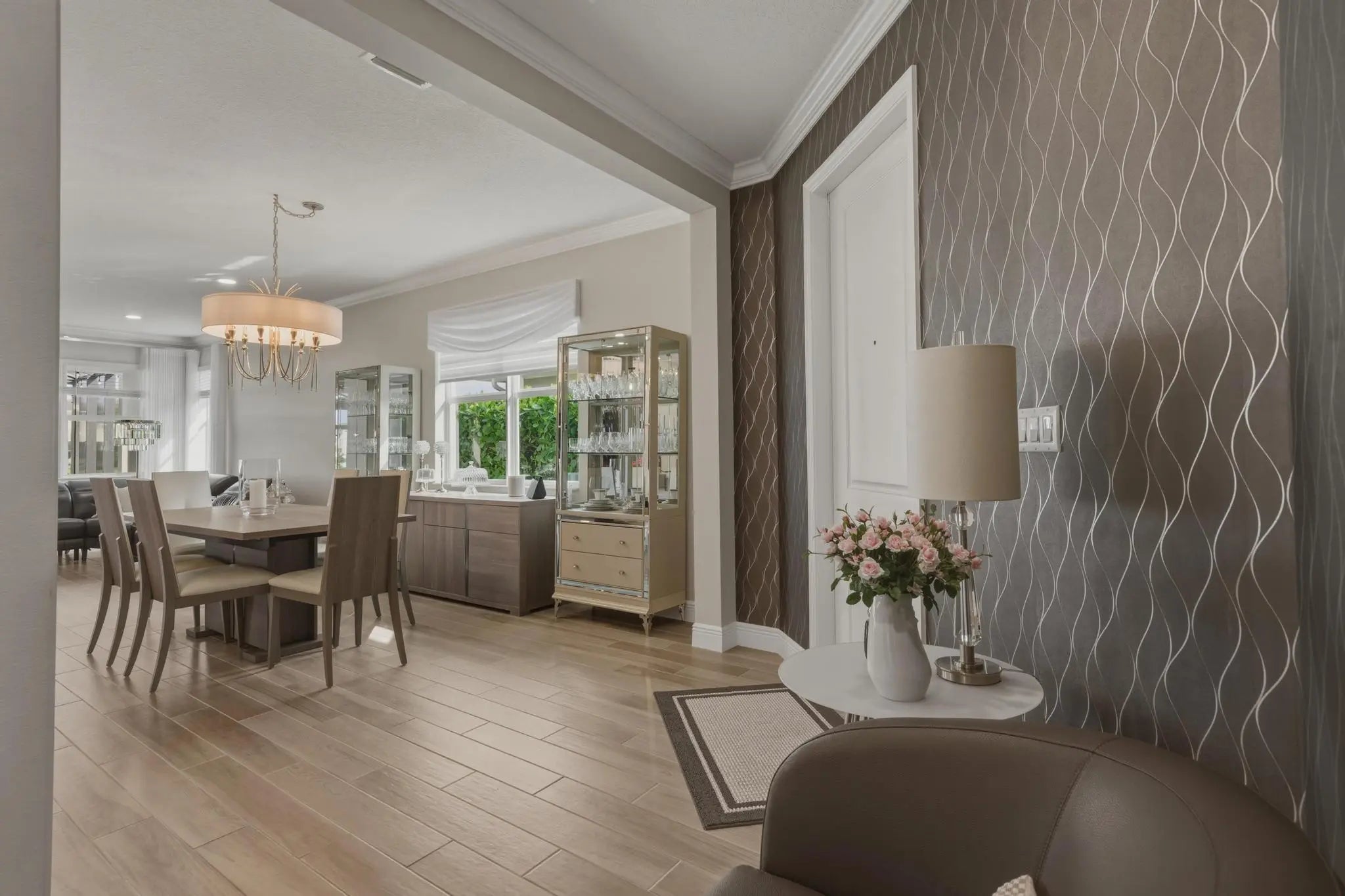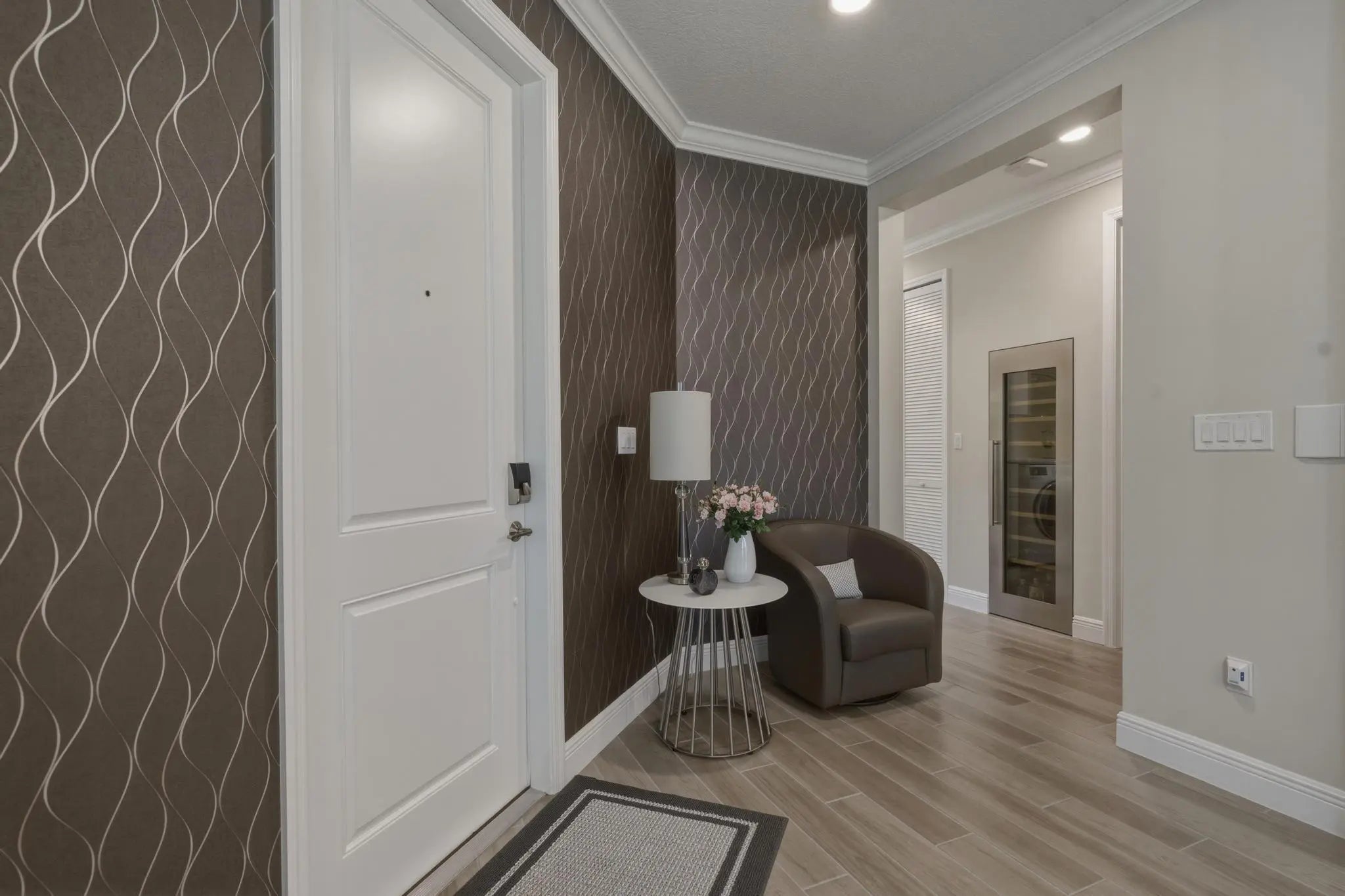 Exceptional & Exquisite 2020 Construction Luxury Smarthome on waterfront lot in new gated community. Showstopping screened patio w/tile over concrete slab & paved side yards, lush greenery, exterior stone trim, shaker cabinets, Carrara quartz counters, wood-look tile, impact glass, paver driveway, 2-car epoxy garage, top-of-the-line appliances, wine fridge, laundry room. 1st floor Master w/dual sinks, w/c, XL shower & walk-in California closet. Guest rooms & bath on other side of home offer quiet spaciousness & built-in office.. 2nd master upstairs. Upgraded faucets, crown moulding, window treatments, light fixtures, ceiling fans. Lawn service incl. Club w/gym, totlot, lounge deck, beach-entry freeform pool. Near Publix, Whole Foods, Boca Town Ctr, 95, Turnpike, beach. Furniture for sale.