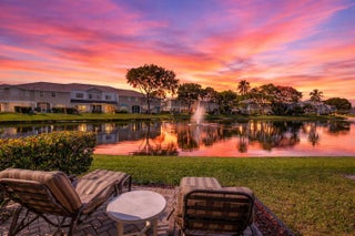 Welcome to this beautifully maintained , professionally landscaped and rarely available two-story townhome in the desirable Boca Gardens community! Offering 1,916 sq. ft. under air, this spacious 3-bedroom, 2.5-bath residence is ideally positioned at the end of a quiet street and showcases one of the best lake views in the neighborhood with breathtaking sunset vistas. The thoughtfully designed floor plan features a primary suite on the ground floor with generous closet space, while two additional oversized bedrooms and a full bath are located upstairs. The home has been impeccably cared for and thoughtfully upgraded throughout, including a NEW ROOF (2026), fresh interior paint, a brand-new refrigerator (2026), and an updated kitchen with stainless steel appliances. Elegant ceramic tile floors on main level, complemented by high-quality patterned carpeting on the stairs and second floor. The staircase banister has been replaced, adding a refined touch. The fully permitted garage conversion creates an exceptional home theater or flexible living space. Step outside to a high screened patio overlooking the lake — the perfect place to relax and enjoy spectacular sunsets. A custom lakefront patio and beautifully designed walkway enhance both the outdoor living experience and curb appeal. Additional features include UV lighting in the A/C system for improved air quality. Conveniently located near one of the community pools, this home offers the ideal combination of privacy, space, and lifestyle. Available furnished or unfurnished, this move-in-ready residence truly has it all. Don't miss this opportunity to own a special lakefront home in one of Boca Raton's most sought-after communities. Lakefront home. Living in Boca Gardens means resort-style amenities right at your fingertips: 3 community pools, tennis and pickleball courts, a clubhouse, playgrounds, and walking paths. All this with low HOA fees that include cable,, roof maintenance and REPLACEMENT, and exterior care. Conveniently located near A-rated schools, shopping, restaurants, and major highways, this home offers both comfort and lifestyle. Don't miss this opportunity to own one of the most desirable models in Boca Raton's Boca Gardens!
