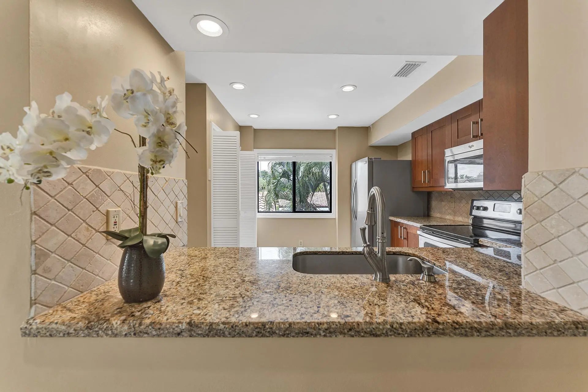 This stunning corner unit in the heart of Boca Pointe has been beautifully remodeled, offering a perfect blend of style and comfort. Available June 1st. The home boasts elegant ceramic tile throughout the main living areas and rich wood floors in the bedrooms. Enjoy breathtaking golf course views right from your window! Additional highlights include stainless steel appliances, granite countertops, an in-unit washer & dryer, a covered carport, and a storage locker. Just steps away from the pool and tennis courts. Water and basic cable are included in the rent. Cats ok and no smoking allowed. Don't miss out— AVAILABLE for June 1st. Schedule your tour today!
