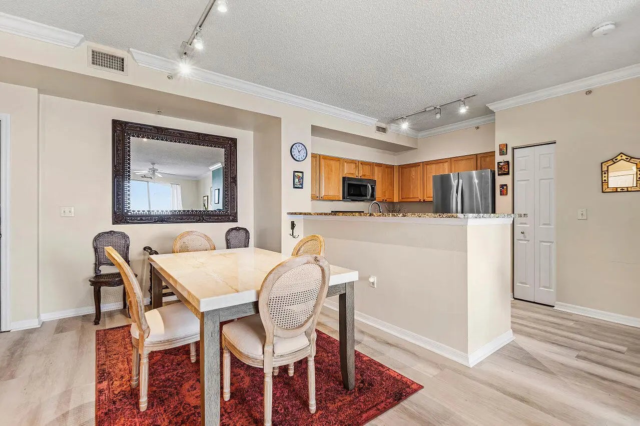 Lovely 12th-floor residence in Montecito Palm Beach Condominiums featuring 2 spacious ensuite bedrooms and beautiful lake views. The kitchen offers granite countertops, stainless steel appliances, and a pantry. Crown molding in the main living areas. Luxury vinyl and tile flooring throughout (no carpet). Impact windows and slider. Includes gated covered parking for 2 vehicles with EV charging available. Offered furnished. HOA fees includes basic cable, internet, water, and sewer. Enjoy resort-style amenities such as 24-hour concierge, fiber-optic internet, pool, jacuzzi, firepit, BBQ area, fitness center, sauna, social room with bar & billiards, business center, bike storage, & more. Conveniently located minutes from Clematis Street, CityPlace, PBI Airport, and luxurious Palm Beach Island.