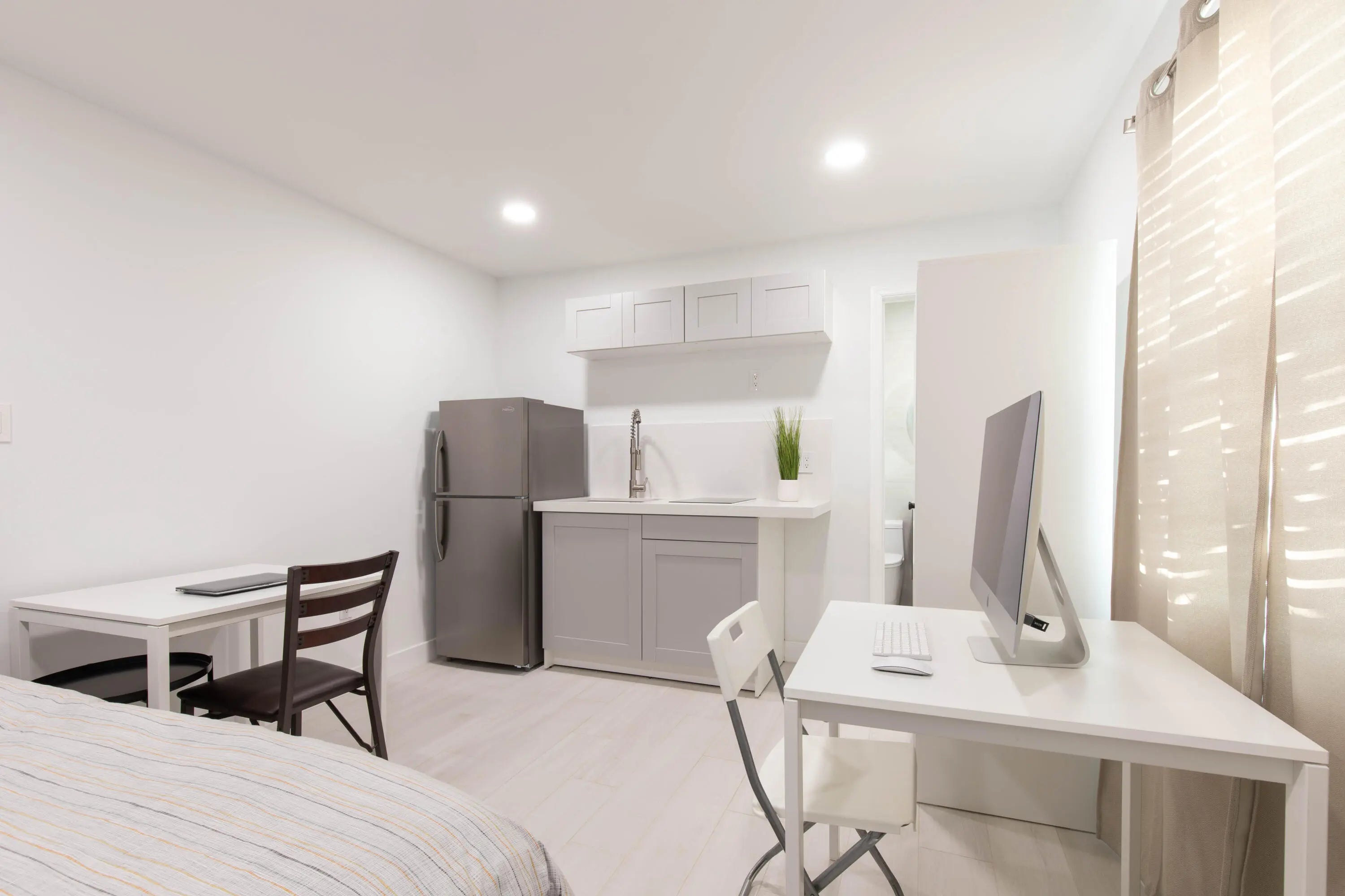 Modern studio apartment available for a 6-month lease with renewal option at $1600 per month. Located in the heart of Hollywood, this modern, minimalist space combines luxury and functionality. The unit features, Italian porcelain tile throughout, high-end appliances, a smart TV, new mini-split A/C unit, and a contemporary bathroom. Rent includes all utilities, Wi-Fi, and cable. One assigned parking space is included. The apartment is part of a quiet, private, duplex, and includes free on site laundry. First month, last month, and security deposit required. Proof of renters insurance with liability coverage is required before move-in. Applicants must provide the credit report, background, check, and two months of current bank Statements. Screening is handled by RentSpree. Non-smoking.