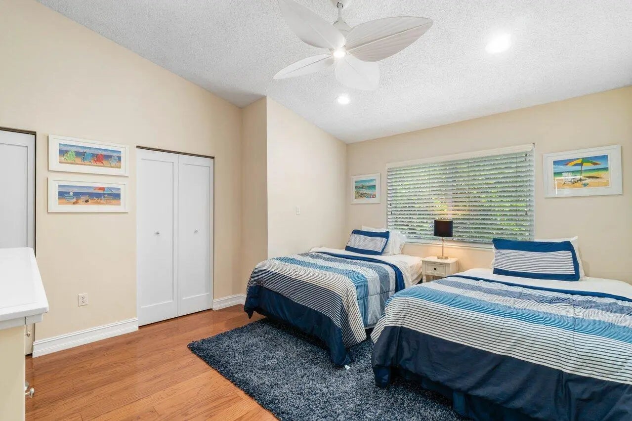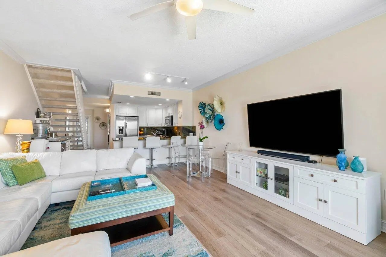 Wake up to Intracoastal views and walk to your private beach from this beautifully renovated 3BR/3BA waterfront townhome in the coveted Highland Beach Club. This light-filled residence offers an open layout with stylish driftwood plank floors and a modern kitchen with white cabinetry and SS appliances--perfect for entertaining or relaxed coastal living. A first-floor bedroom and full bath provide ideal guest or office space. Upstairs, both bedrooms feature vaulted ceilings and en-suite baths, while the primary suite opens to a covered balcony overlooking the water--perfect for morning coffee or sunset views. Enjoy 9' ceilings, impact windows, full-size W/D, newer roof and a private patio with tranquil waterfront scenery. Detached garage for additional parking. Off Season Rental The Highland Beach Club is a true paradise for beach lovers with tropical and resort like pool on the intracoastal, BBQ's, outdoor dining area, pizza oven, hot tub, pedestrian dock on the intracoastal, gym, sauna, steam room, club house, billiard room, business center and a tennis/pickleball court....every amenity you could want! Private beach is directly across the street. This is 24 hour man gated community located minutes from the fabulous restaurants, shops, movies, fairs, concerts and cultural events in Downtown Delray and Boca's Mizner Park.