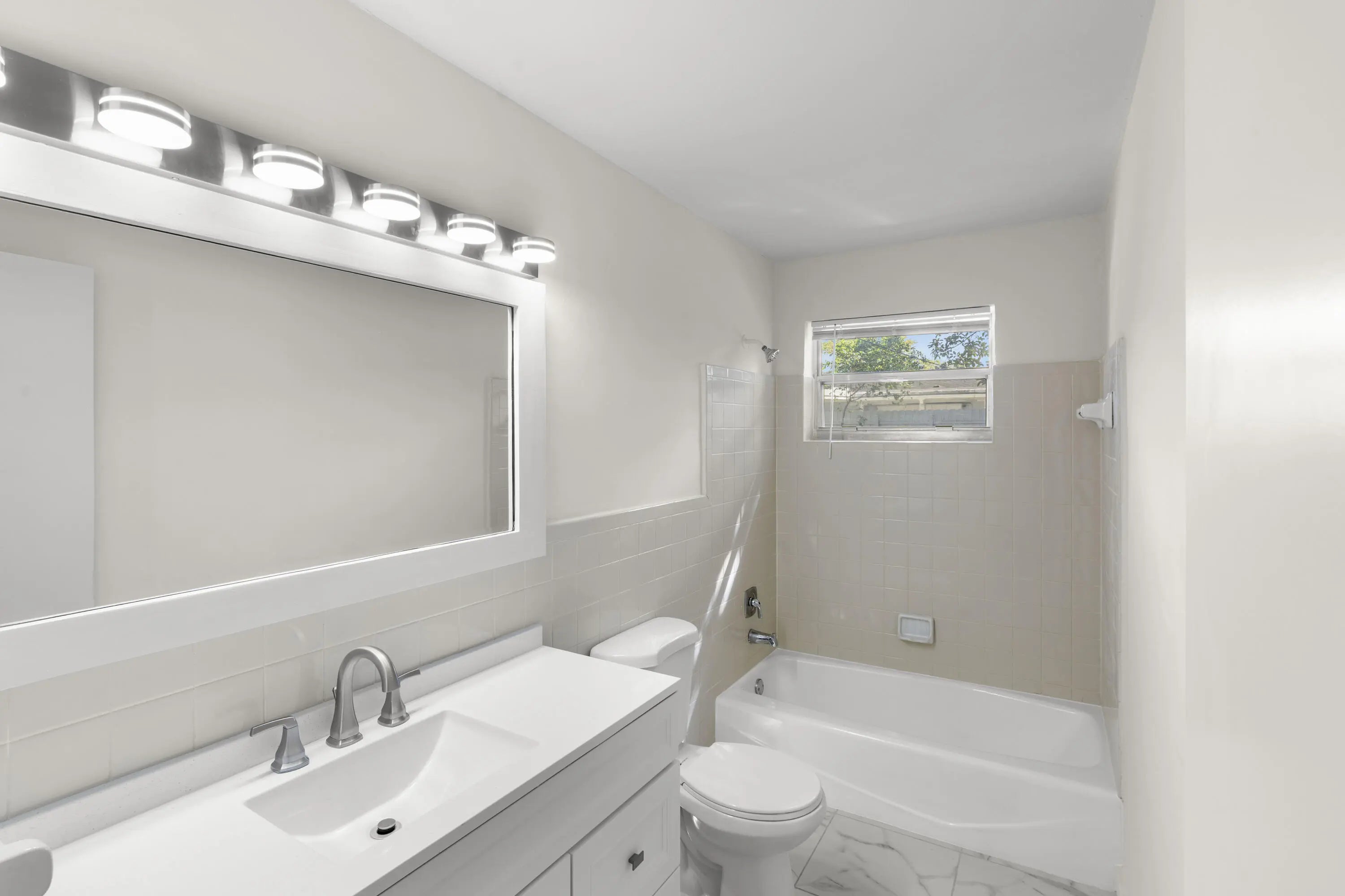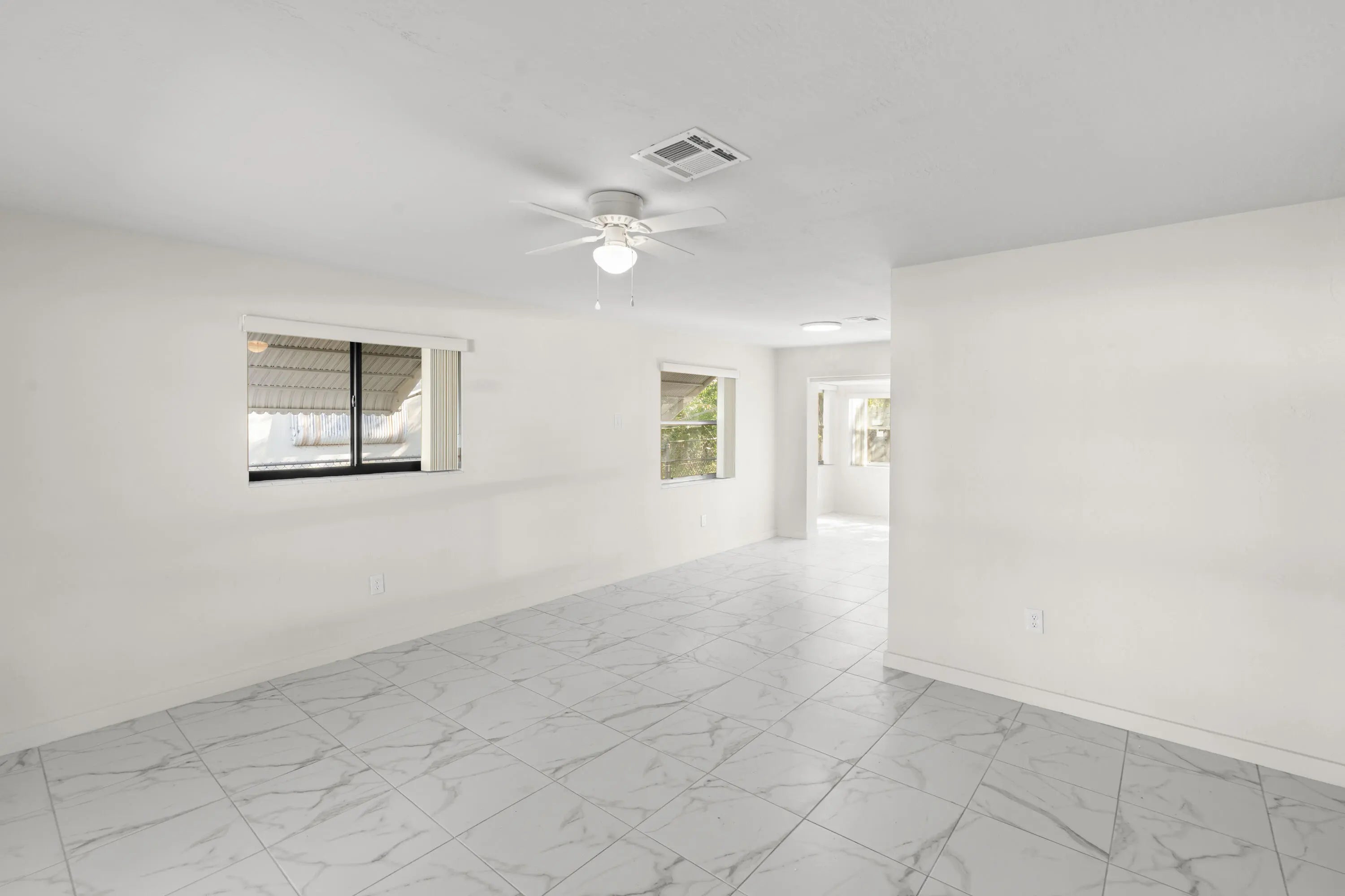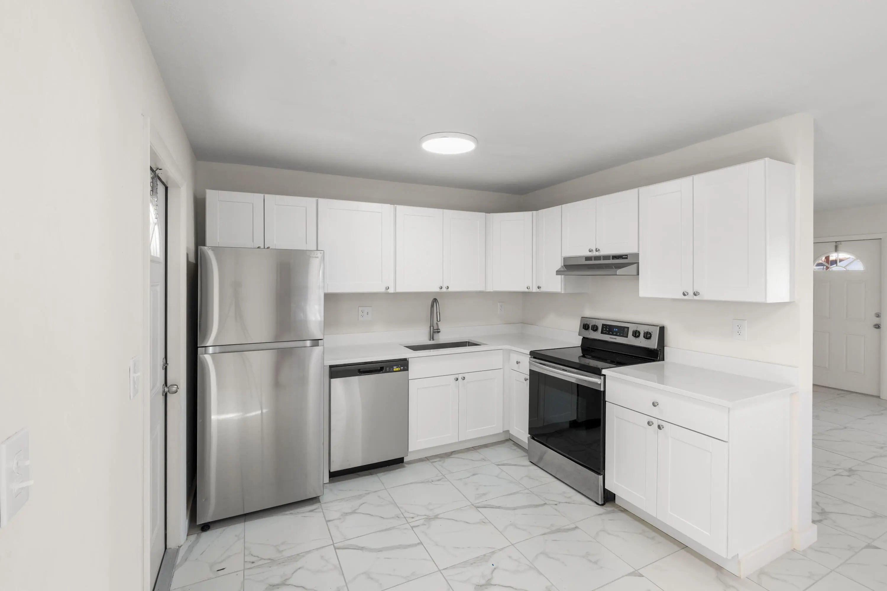 lovely 3 /1/1/2, totally renovated, new kitchen, quartz counter tops, stainless steel appliances, new bathrooms, beautifull tile floors, central ac,, laundry room, totally fenced property, will put in backyard sod when sold. being sold as is.