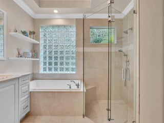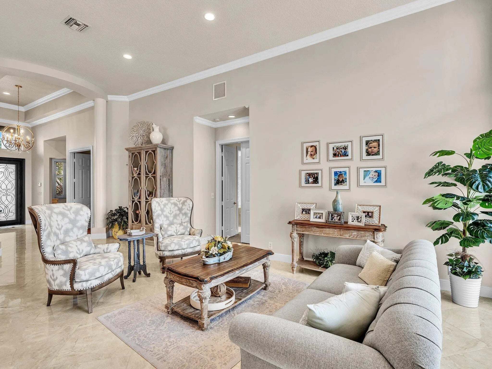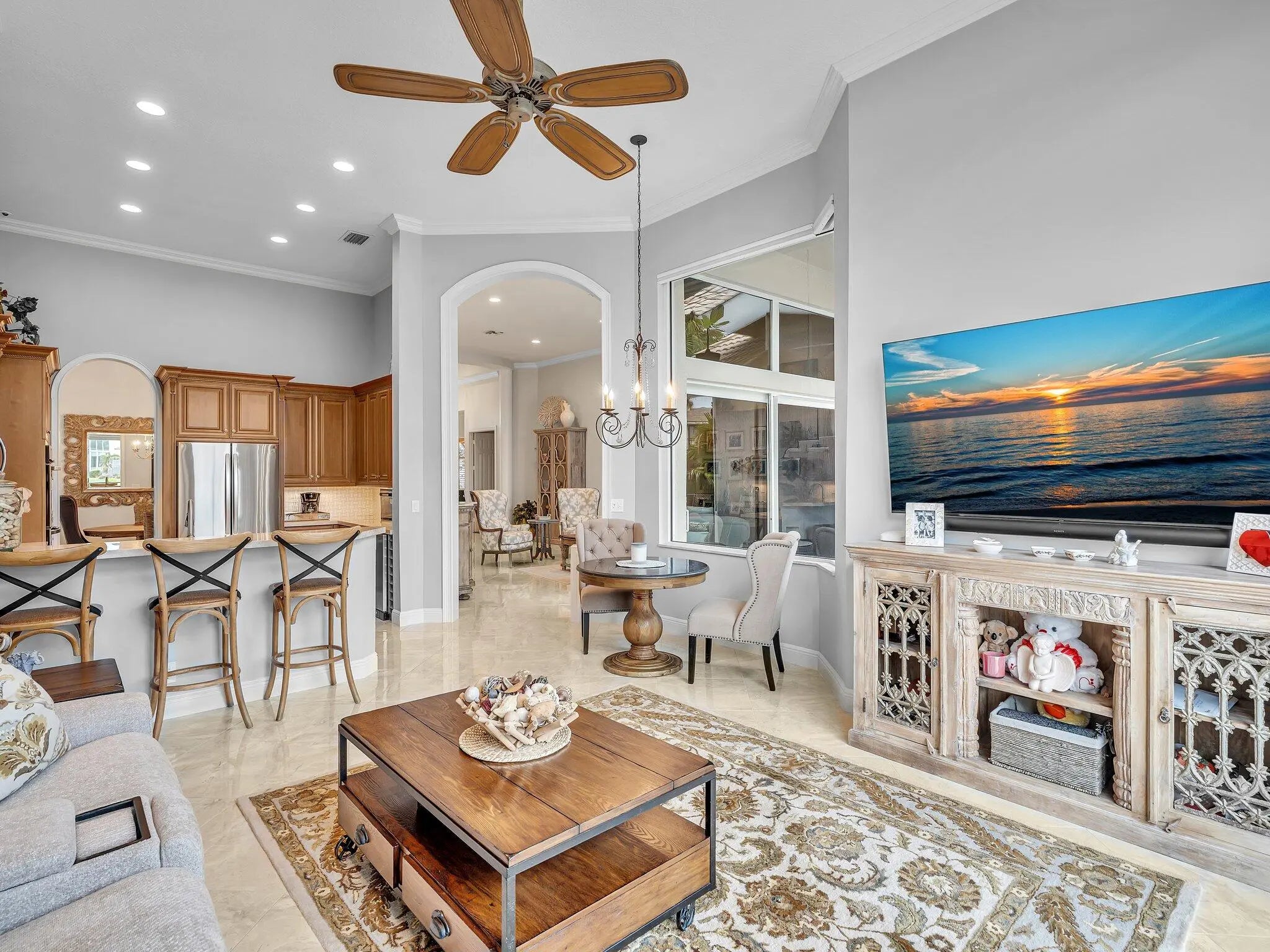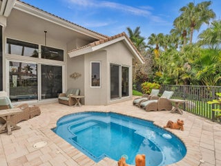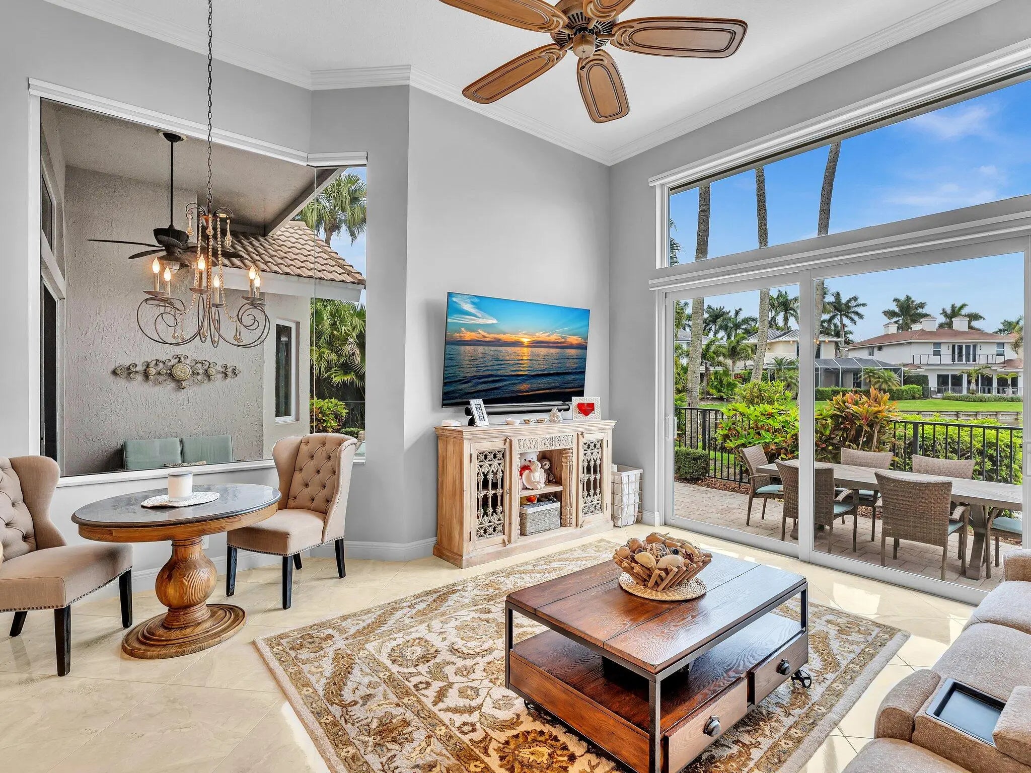 Open and airy 3 bedroom, 2.5 bath lakefront beauty on spacious corner lot in Woodfield Country Club! This desirable Capri model features volume ceilings, porcelain flooring in main living areas, tray ceilings, separate dining room, and newly renovated eat in kitchen with stainless steel appliances, wine storage, and breakfast nook. High impact sliders create an abundance of natural light and accentuate the water views throughout the home. The primary bedroom with His and Hers built out closets boasts beautiful lake views and has direct access to the splash pool and oversized side yard. Freshly painted in a neutral color palette, newer A/C (2023), central vac system, and air conditioned garage for your convenience. Enjoy an exceptional lifestyle in South Florida's most desirable club featuring an 18-hole championship golf course, 22 Har-Tru tennis courts with pro shop, pickleball, grand clubhouse with 5 dining venues, resort style pool, 38,000 sq. ft fitness center, spa/salon, social activities, and a Kids Korner center open year round. Perfectly situated in a top school district just minutes to the beach, Mizner Park, and The Boca Raton Resort and Club!