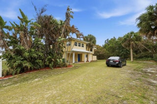 Discover this 3-bedroom, 2-bath POOL home overlooking the Indian River Lagoon. Enjoy gentle summer breezes and beautiful river views from the second-story balcony. The home features a spacious granite kitchen with white cabinets, stainless steel appliances, and a breakfast bar that opens to the living and dining areas. The large primary suite is complemented by generously sized guest bedrooms with ample closet space. Additional highlights include an inside laundry with a washer and dryer, and a one-car garage. Step outside to your private oasis with a sparkling pool, patio, and sun deck—perfect for relaxing or entertaining. Home is offered furnished! Situated on a half-acre lot, the property also includes a storage shed. Ideal as an investment, Airbnb, or second home. A rare opportunity in a prime location just minutes from beaches, fishing, surfing, boat ramps, dining, and shopping.