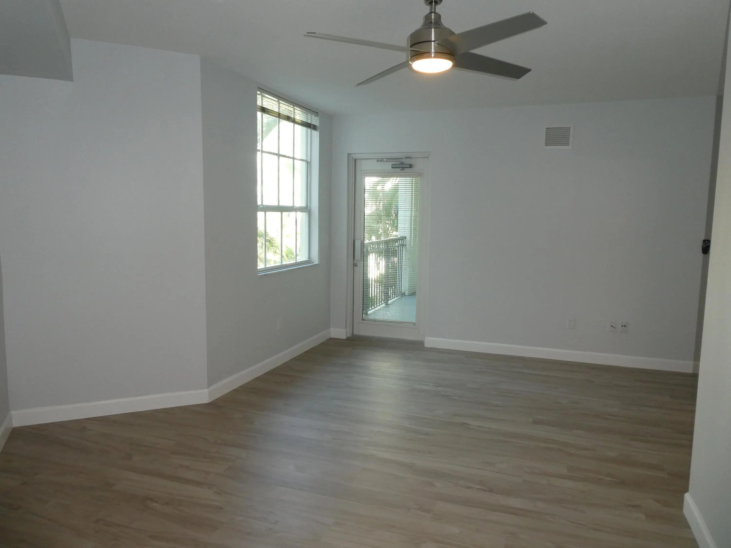 Spacious one bedroom/one bath condo with light colored vinyl flooring. This open-floor plan condo has desirable views to the Prado pol area. Balcony can be accessed from the living area and from the bedroom. Washer-Dryer inside condo. Prado has a very nice gym, hot tub, dry saunas, and a beautiful community room. Condo comes with one parking space in the building garage. 24 hour attended lobby.