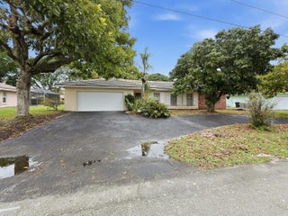 Charming 4-bedroom, 3-bath pool home in a prime Boca location! This inviting residence features a formal living and dining room with classic terrazzo floors, and a spacious family room highlighted by a warm brick accent wall. The kitchen offers a convenient snack bar, perfect for casual dining. The primary suite includes terrazzo flooring, dual closets, double sinks, a walk-in shower, and sliders leading to the patio. Enjoy outdoor living on the large, covered patio overlooking the screened-in pool. A circular driveway adds curb appeal and convenience to this well-located home.