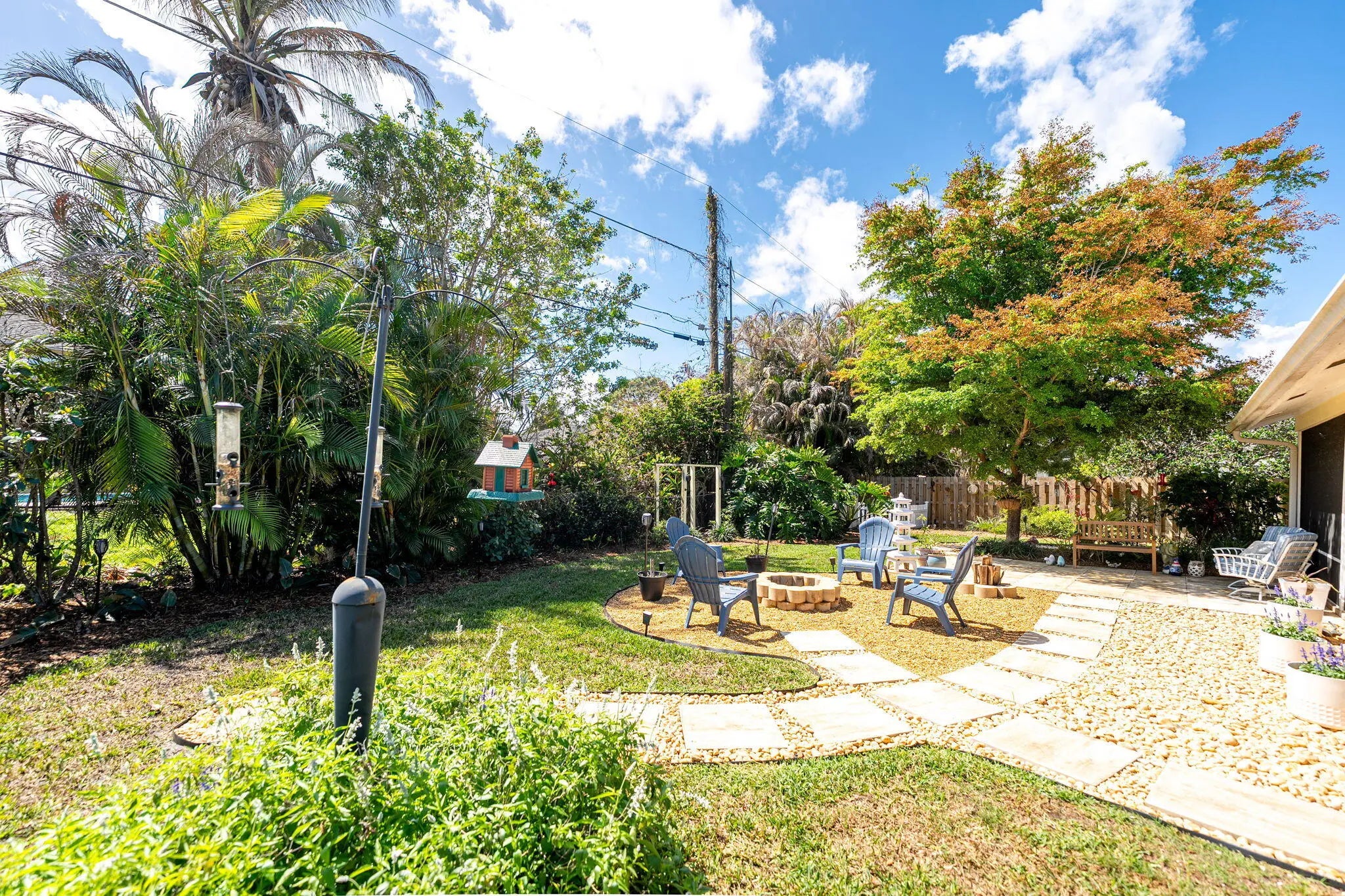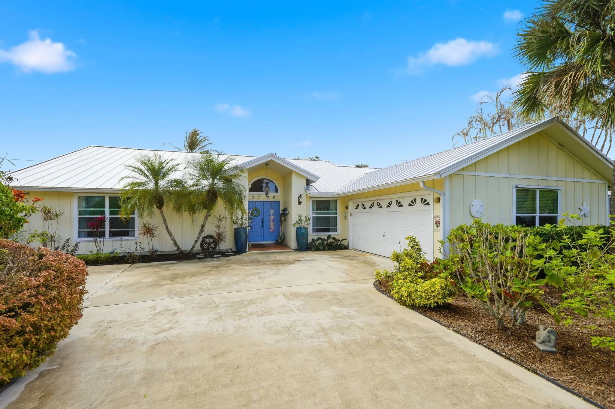 A Rare find. Welcome to Pine Tree Terrace in Hobe Sound, FL. Homes in this neighborhood rarely come on the market. This home is a must see. This residence offers a blend of modern improvements and everyday comfort. The kitchen is equipped with solid wood cabinetry and newer appliances. The roof is a 2025 standing seam metal roof, with hurricane rated skylight. The two sliding glass doors are hurricane rated. A smart thermostat was added for efficiency. The backyard has also been enhanced, creating a great space to enjoy the outdoors. Newer water heater and A/C. Don't miss out on the gem. Room for a pool.