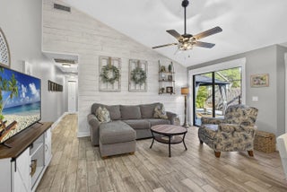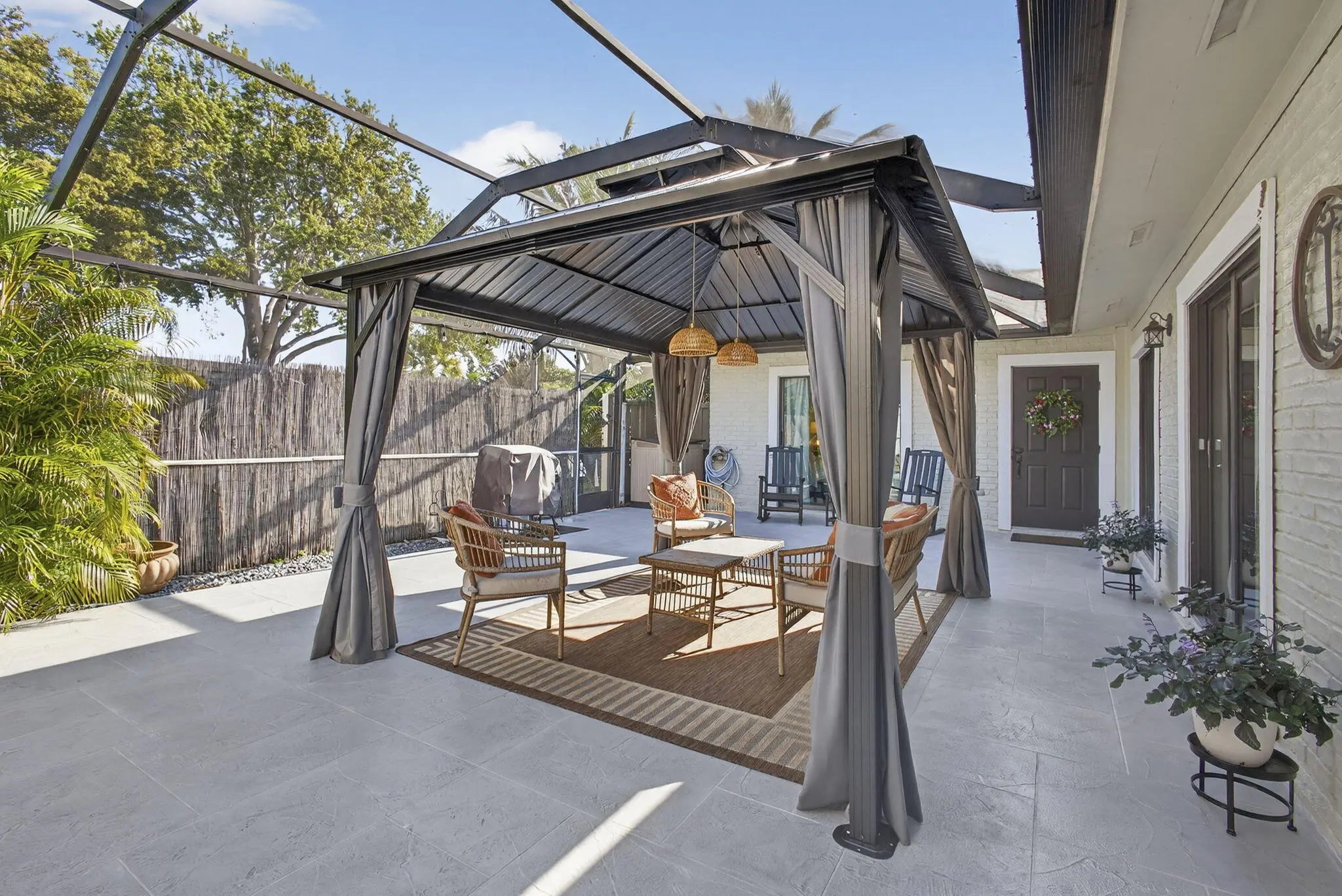 Welcome to this beautifully updated 3 bedroom 2 bathroom townhome. Inside you'll find a light-filled open layout, cathedral ceilings and upgraded finishes throughout. Creating a space that feels both elevated and inviting from the moment you walk in. Step outside to your own private retreat with a brand new stamped concrete patio, perfect for entertaining or relaxing. Conveniently located minutes from I 95, Florida Turnpike, Shopping and Beaches. Located in a well maintained community featuring two pools, tennis & basketball courts. This move in ready home is a must see!