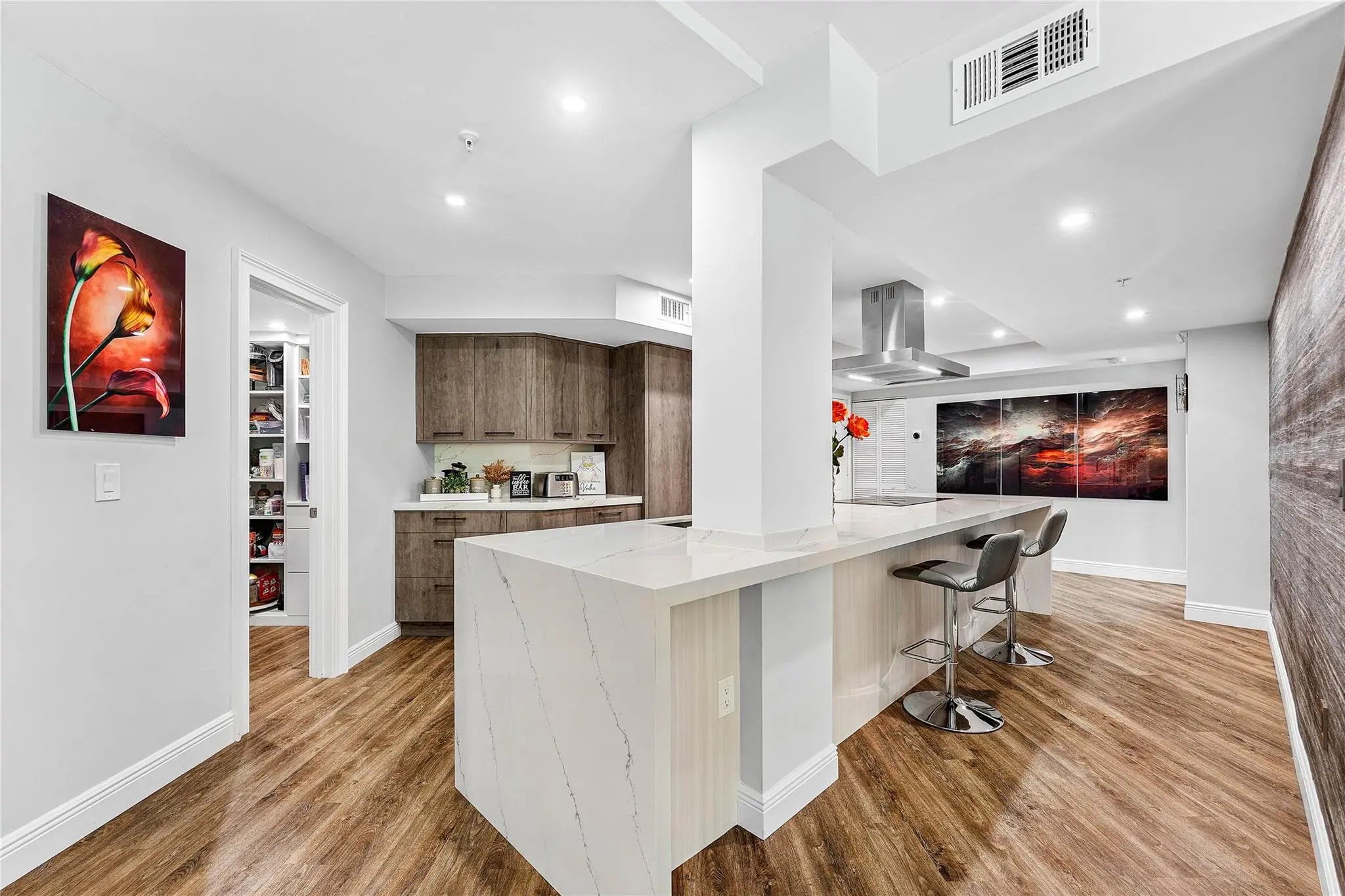Experience sophisticated living in this beautifully renovated split bedroom condo in the heart of Downtown Boca Raton. This stunning condo w/spacious wrap around covered balcony has been thoughtfully redesigned w/modern updates to make it perfect for relaxing & entertaining. Step inside to discover plank flooring, stunning kitchen featuring custom cabinetry, quartz countertops, Thermidor appliances (wine refrigerator, induction cooktop, triple oven)& walk in pantry. The open-concept living & dining areas flow seamlessly onto the balcony. The primary suite offers intimate sitting room, private balcony, custom built-ins, walk in closet & elegantly styled bathroom w/dual vanities. Residents enjoy resort-style amenities including fitness center, pool & spa, concierge services & secure parking.