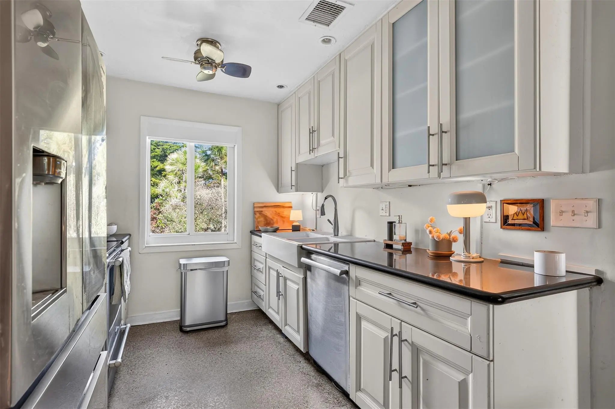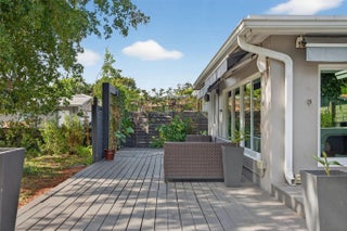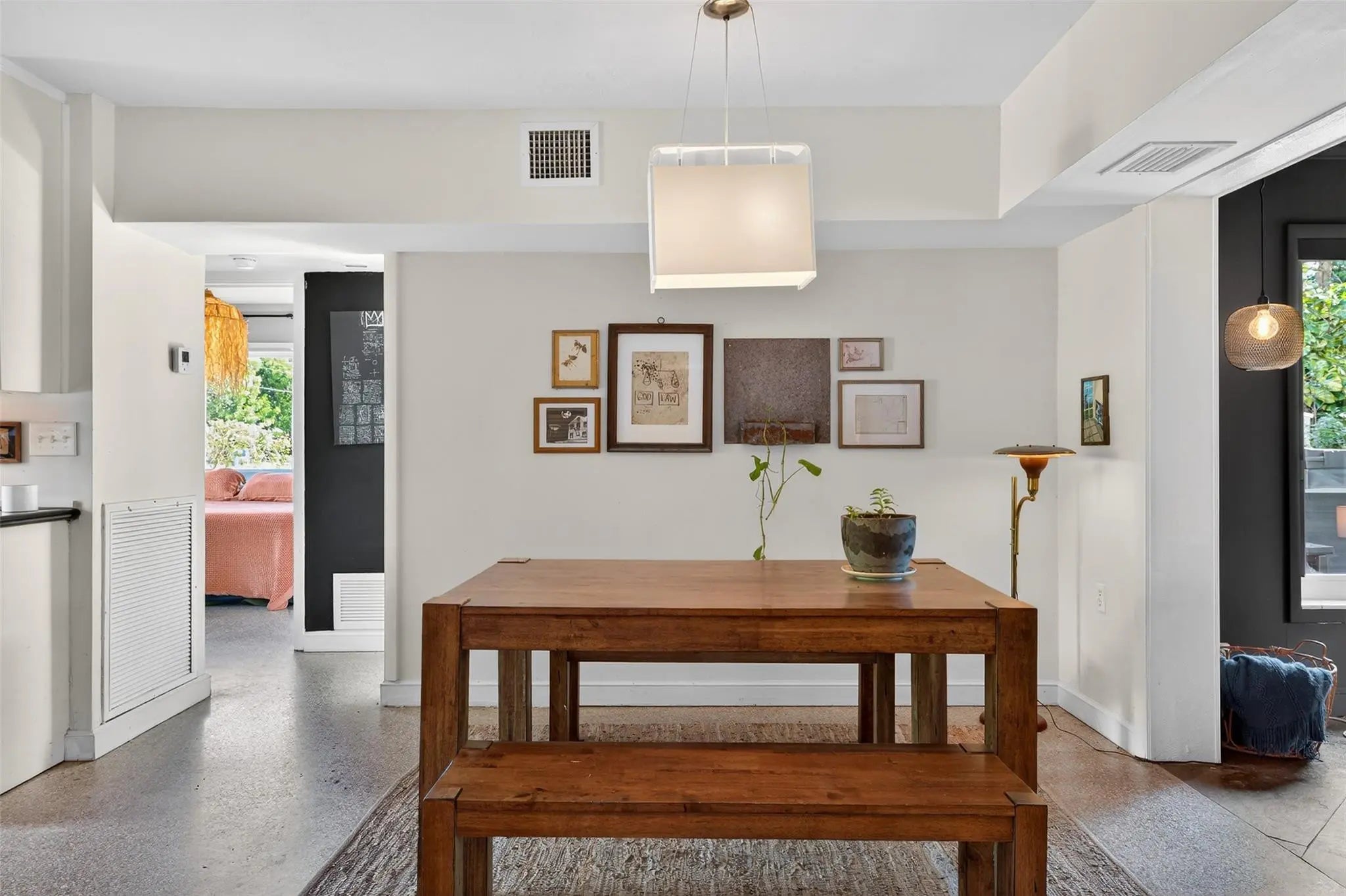 Welcome home to your private sanctuary in the heart of Lloyd Estates! As soon as you enter this 2 bedroom plus bonus room, 1 bathroom home you will be bathed in light from the wall to wall windows featuring picturesque views of the back yard oasis. From thoughtful renovated design to mid-century elements, to intentional flow of space; every detail is meant to make you feel at home in your surroundings. Enjoy time in the updated kitchen with farmhouse style sink & upgraded appliances, or head outside to enjoy the mature landscaping & butterfly garden or soak in the new hot tub. This home features hurricane impact windows, beautifully renovated bathroom, terrazzo & slate flooring, well water irrigation system, & even an outdoor shower. Come feel the restorative peace this house has to offer!
