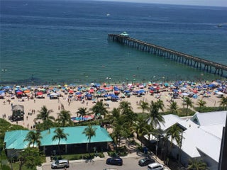 WELCOME HOME to beautiful. It's a 1 bedroom, that can show larger due to a movable wall. 1.5-bath Direct Oceanfront condo with the BEST BEACH views from every room. Awesome view of both the breakers and the ocean, & the Fishing Pier. High-end finishes - granite countertops, Upscale flooring & top-of-the-line designer features such as awesome lighting, double sinks, & imported interior doors. Washer/dryer and hurricane impact windows throughout the condo. Building features 24/7 concierge a heated pool, BBQ area with dining, clubhouse, 24 hour gym, & direct beach access. Walk to shopping, restaurants, and stroll the promenade and enjoy the experience of a newly built outdoors gym/park combination. It's all happening at the BEACH! Claim your piece of paradise and see this today!
