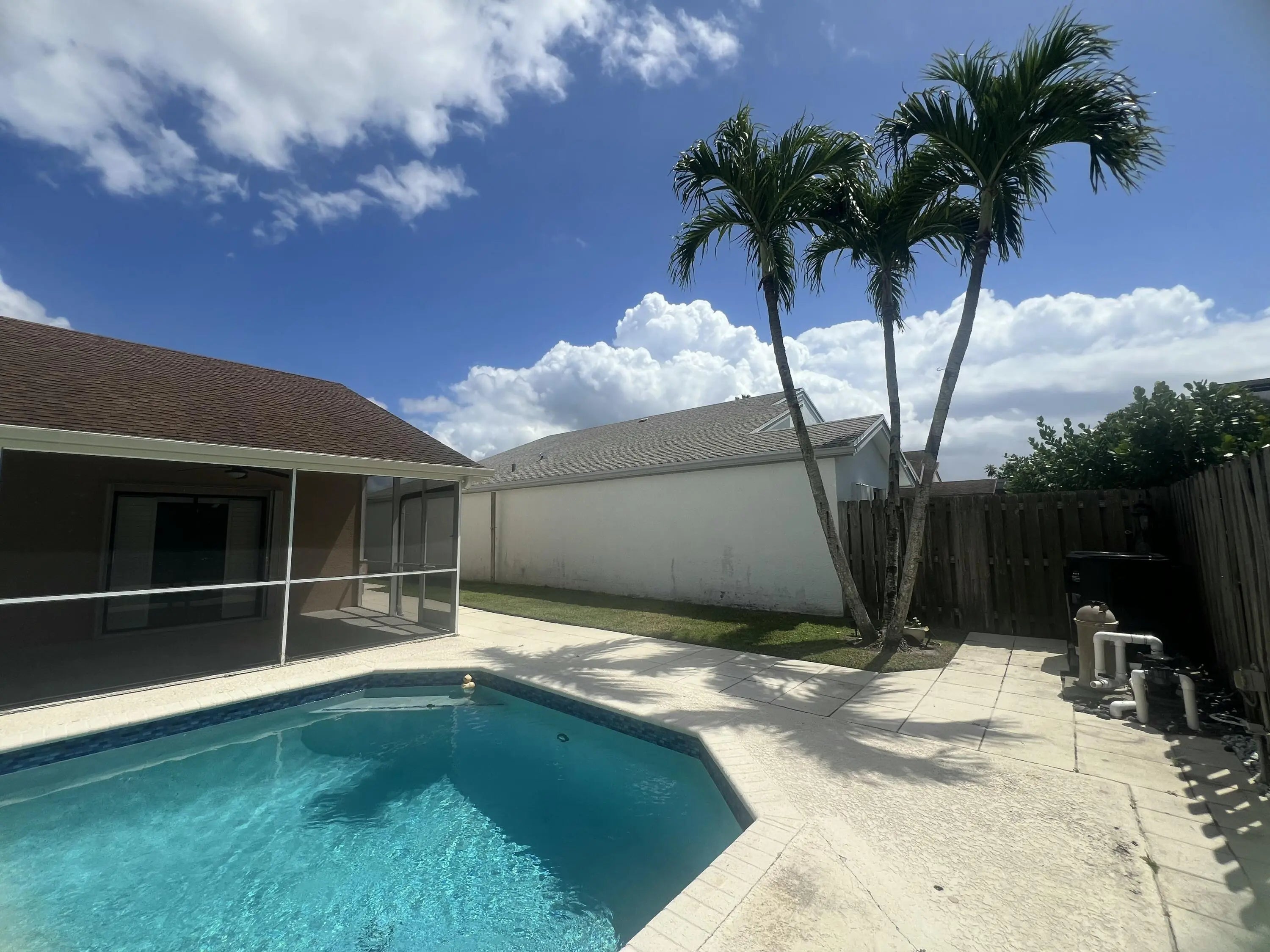 FOR RENT this beautiful 4 bedroom 2 bath POOL HOME in West Boca Raton. Nice white kitchen cabinets with SS appliances. Brand new waterproof vinyl floor! Incredible outdoor living space featuring a large screened patio overlooking the heated pool, complete with a double-sink outdoor area and outdoor shower. Vaulted ceiling.Four full bedrooms and two bathrooms totally renovated with nice showers and frameless glass showers. Vanity with double sinks in the master bath, good size walk in closet with built in shelves. Each room has a built-in closet.Two car garage. Great house & desirable neighborhood. House protected by accordion shutters. Great school district! Very fast approval. First month rent + security deposit