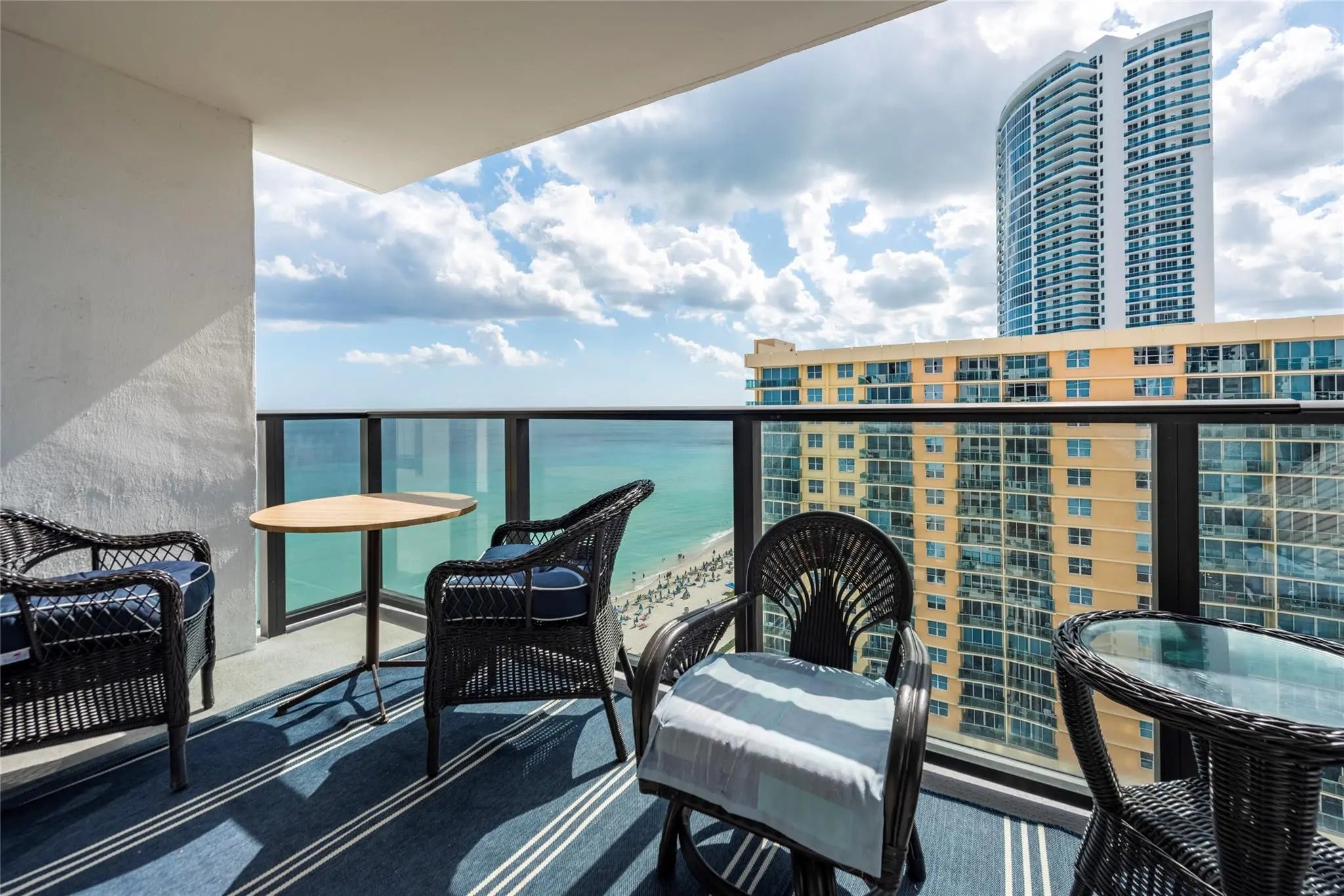 Wake up to direct Ocean and Intracoastal views - move-in-ready condo located directly on the sand of beautiful Hollywood Beach. Features include a remodeled open kitchen, stainless steel appliances, sleek modern flooring, impact windows throughout, ensuite MBR. Sold fully furnished for effortless coastal living or investment. Resort-style amenities include beach service, 2 heated pools, fitness center, sauna, billiards, bus. center. Valet service, 24/7 security, & on-site restaurant. The 40-year cert. was completed. Enjoy a beautifully upgraded atmosphere with designer lobby & hallways by Steven G Interiors. Ideally located mins. to FLL Airport, Gulfstream Park, & the iconic Hollywood Broadwalk. A rare opportunity to own a true beachfront lifestyle with great views and amenities.