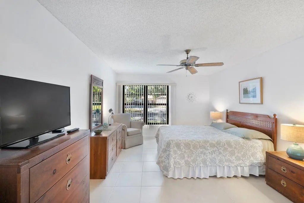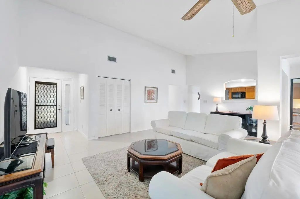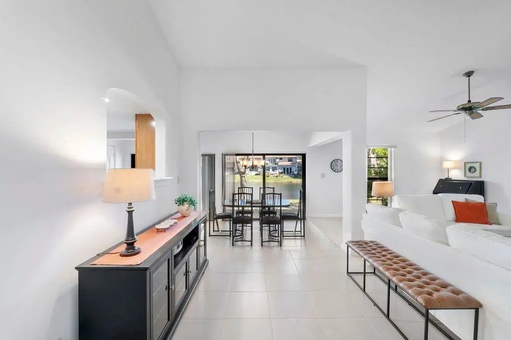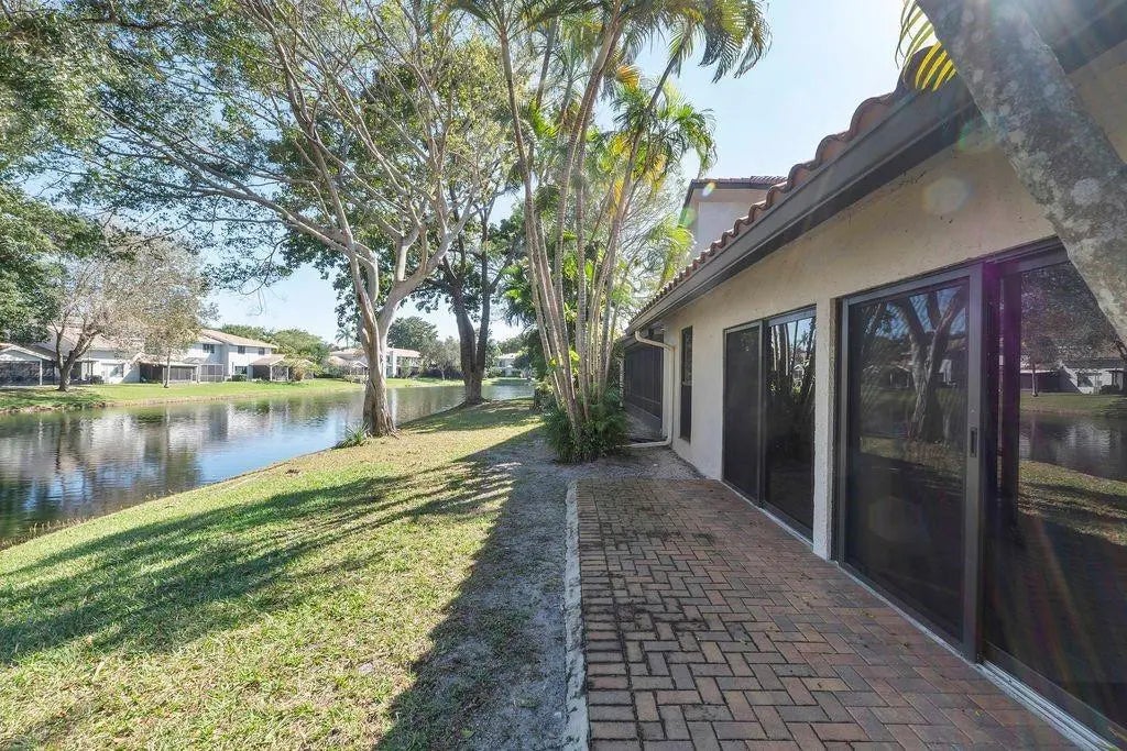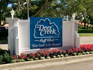 Furnished 2-bed, 2-bath waterfront villa in The Lakes of Deer Creek. Ideally situated across from the community pool, hot tub, and clubhouse, with 2 assigned parking spaces just outside your front door plus ample guest parking. This charming villa features vaulted ceilings, impact glass windows & sliders, neutral tile flooring throughout, large bedrooms, closets galore and tranquil lake views. The enclosed patio provides additional interior space, w/ sliders that open to an outdoor porch overlooking the water. Deer Creek is a public golf community with no mandatory membership—simply pay as you play and enjoy the on-site bar and grille. Conveniently located near shopping, dining, major x-ways, and just 4 miles to the beach! All ages welcome; 1 pet ok per assoc. 2 white couches not included.