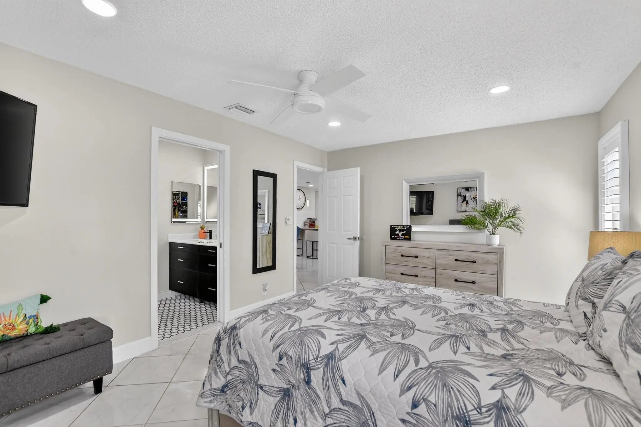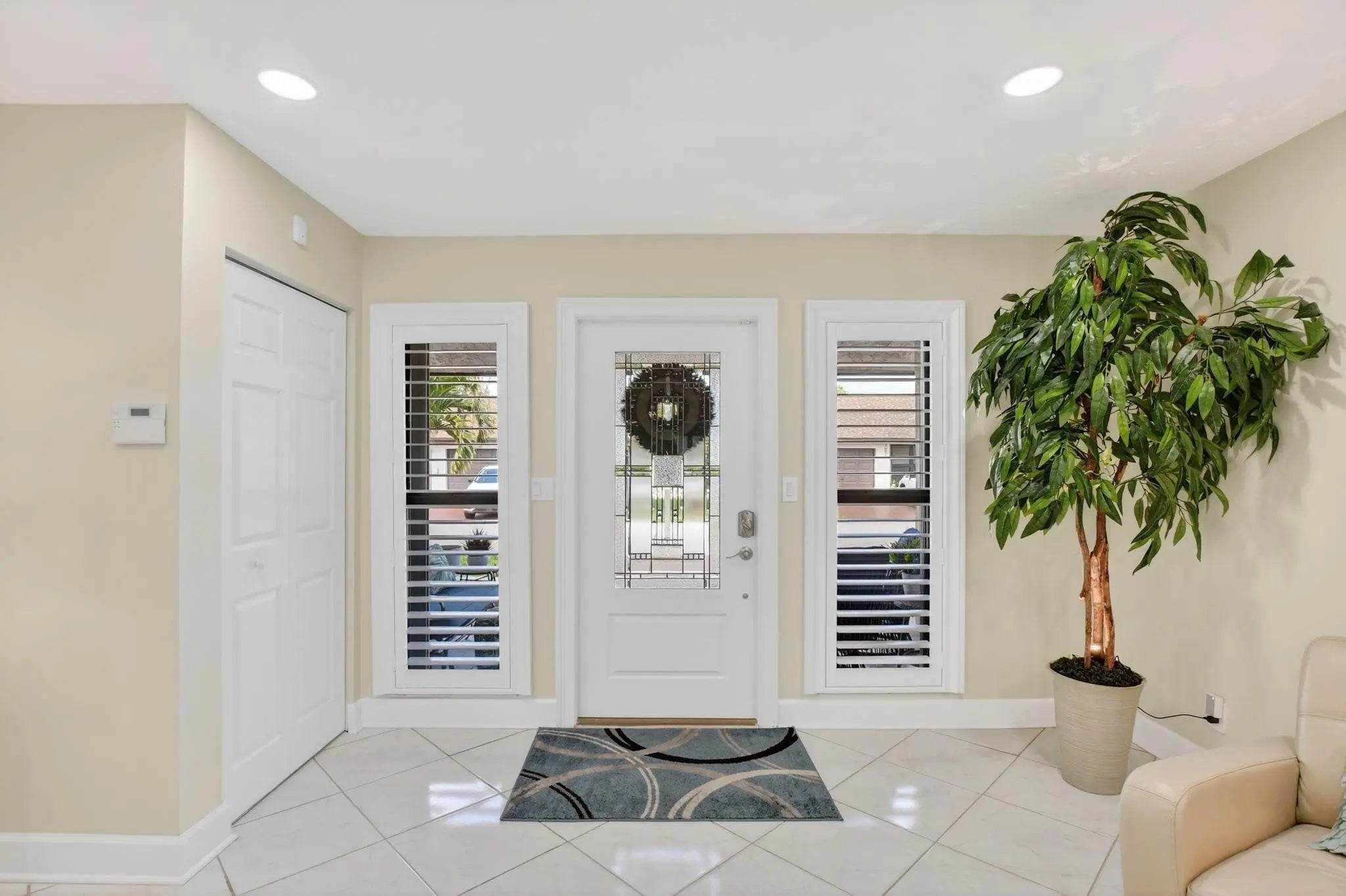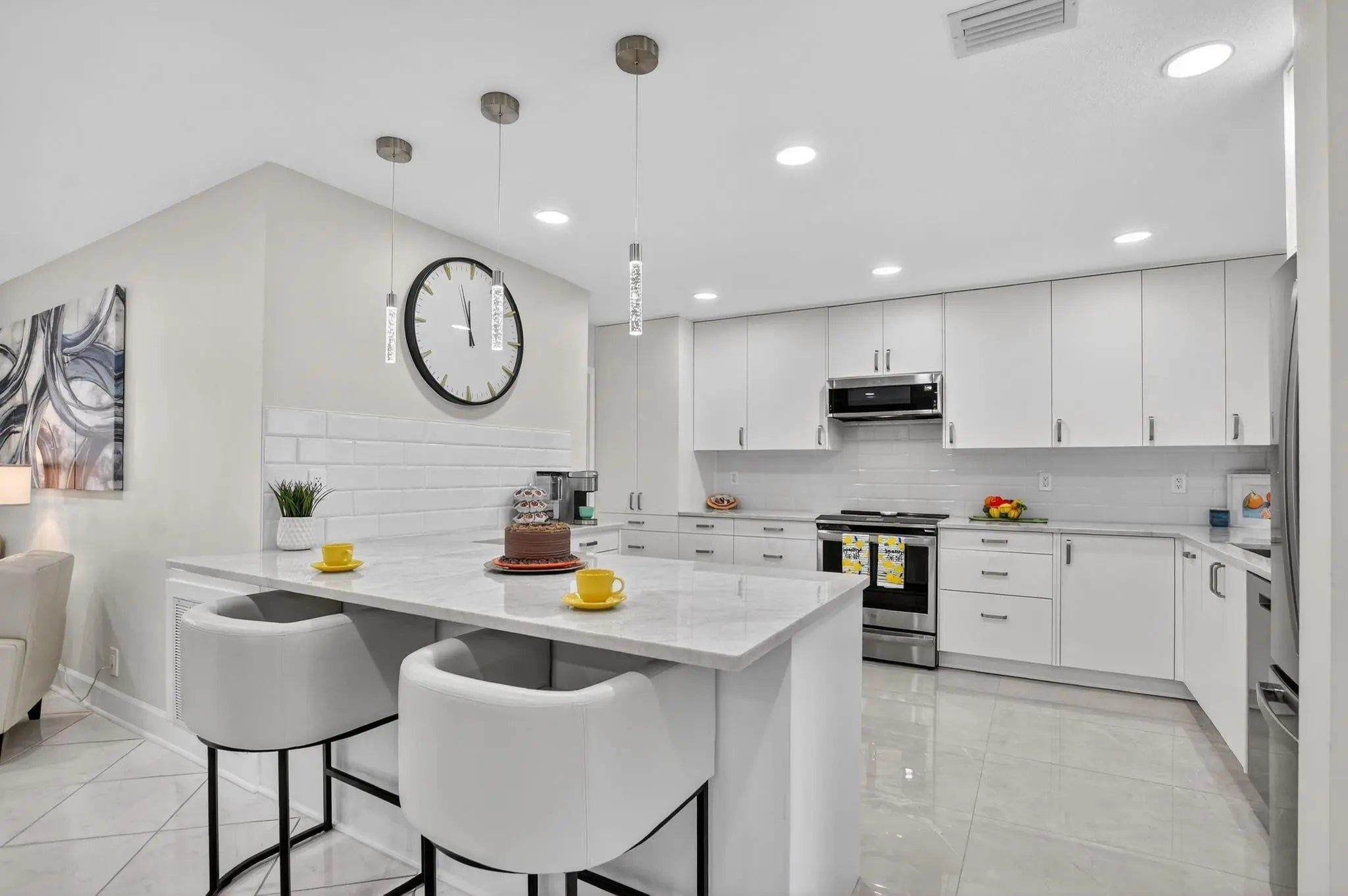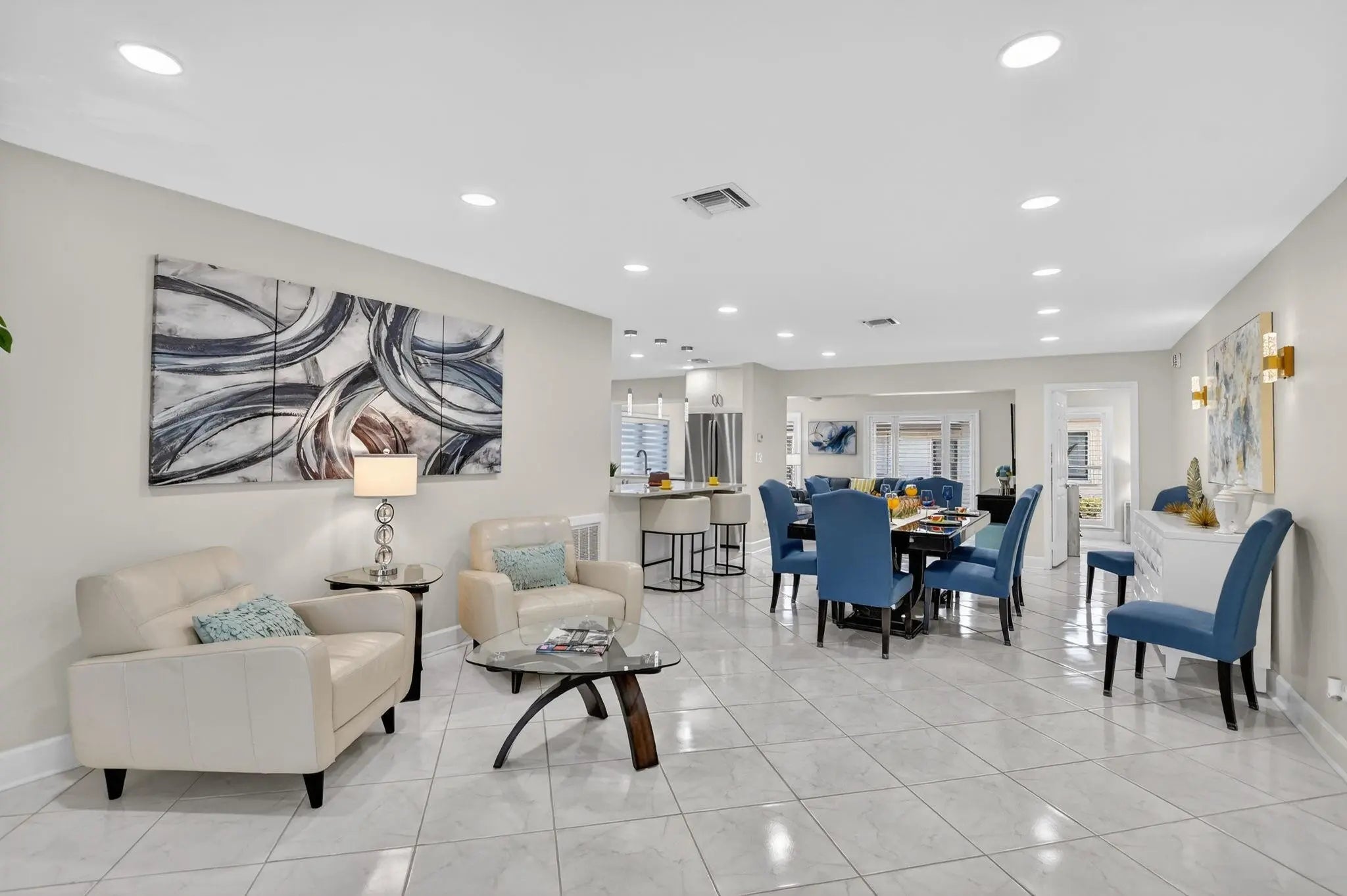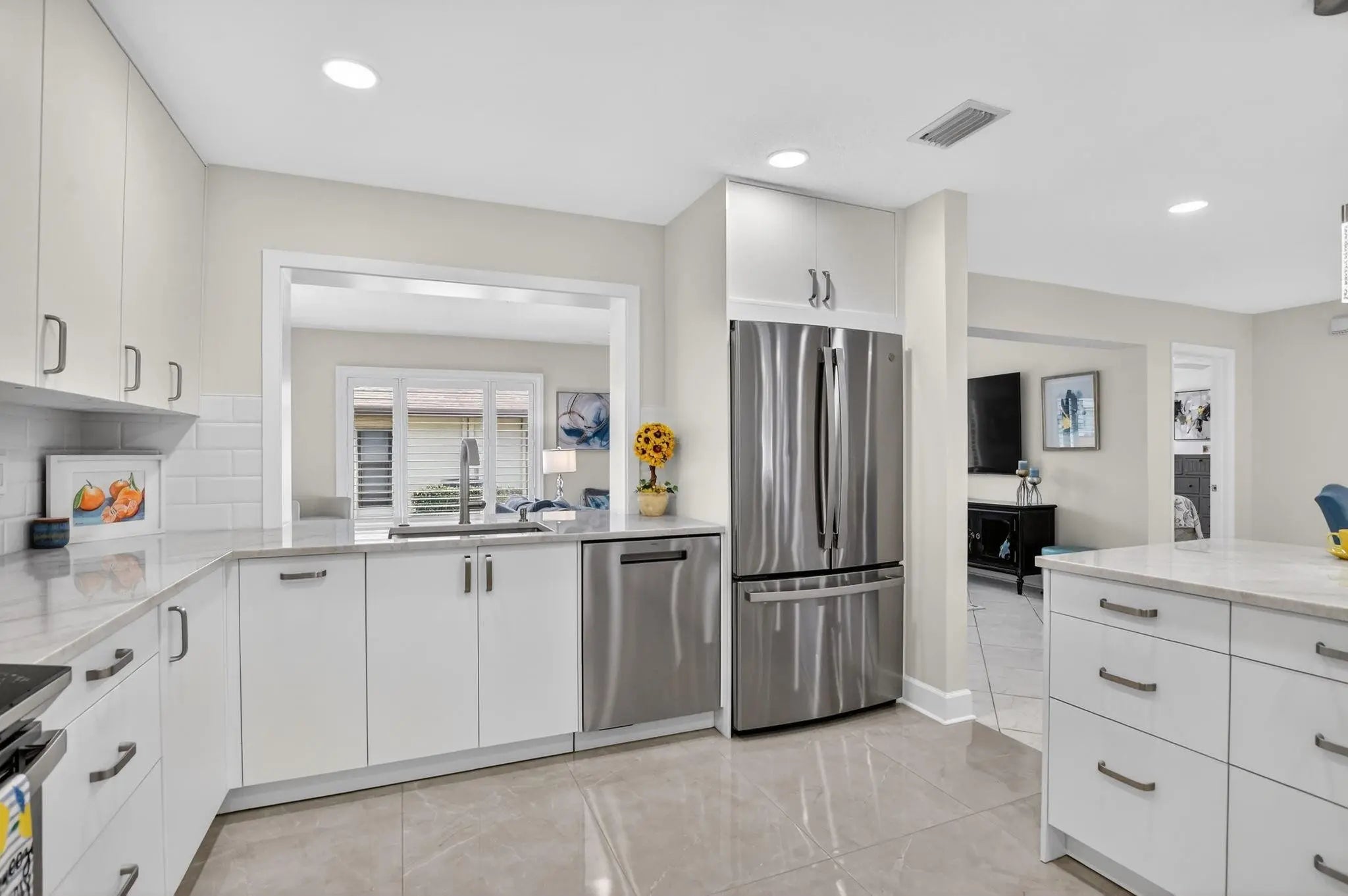 ONE OF A KIND! WOW 1,656sf! EXQUITELY REMODELED home w/ NO EXPENSE SPARED! 2/2 split BR wide-open floor plan. BRAND NEW KITCHEN & PRIMARY BATH. ALL IMPACT GLASS! Beveled glass entry into XL living areas adorned w/ knockdown ceiling & tile floors w/ 6" baseboards. Sprawl out in your DR for meals w/ guests. Designer 2025 kitchen w/ handcrafted custom cabinetry, quartzite countertops, subway tile backsplash, farmhouse sink, double pantry w/ pull out shelves, and new GE stainless appliances. Fall in love in your bright & spacious 16' x 11' primary suite w/ a walk-in closet & NEW, spa-inspired bath. Big corner guest BR features a w/in closet & NEW bath w/ frameless shower. HUGE FR is bathed in natural light. 2019 roof, epoxy garage floor. Desirable 55+ community of Meadows of Crystal Lake!