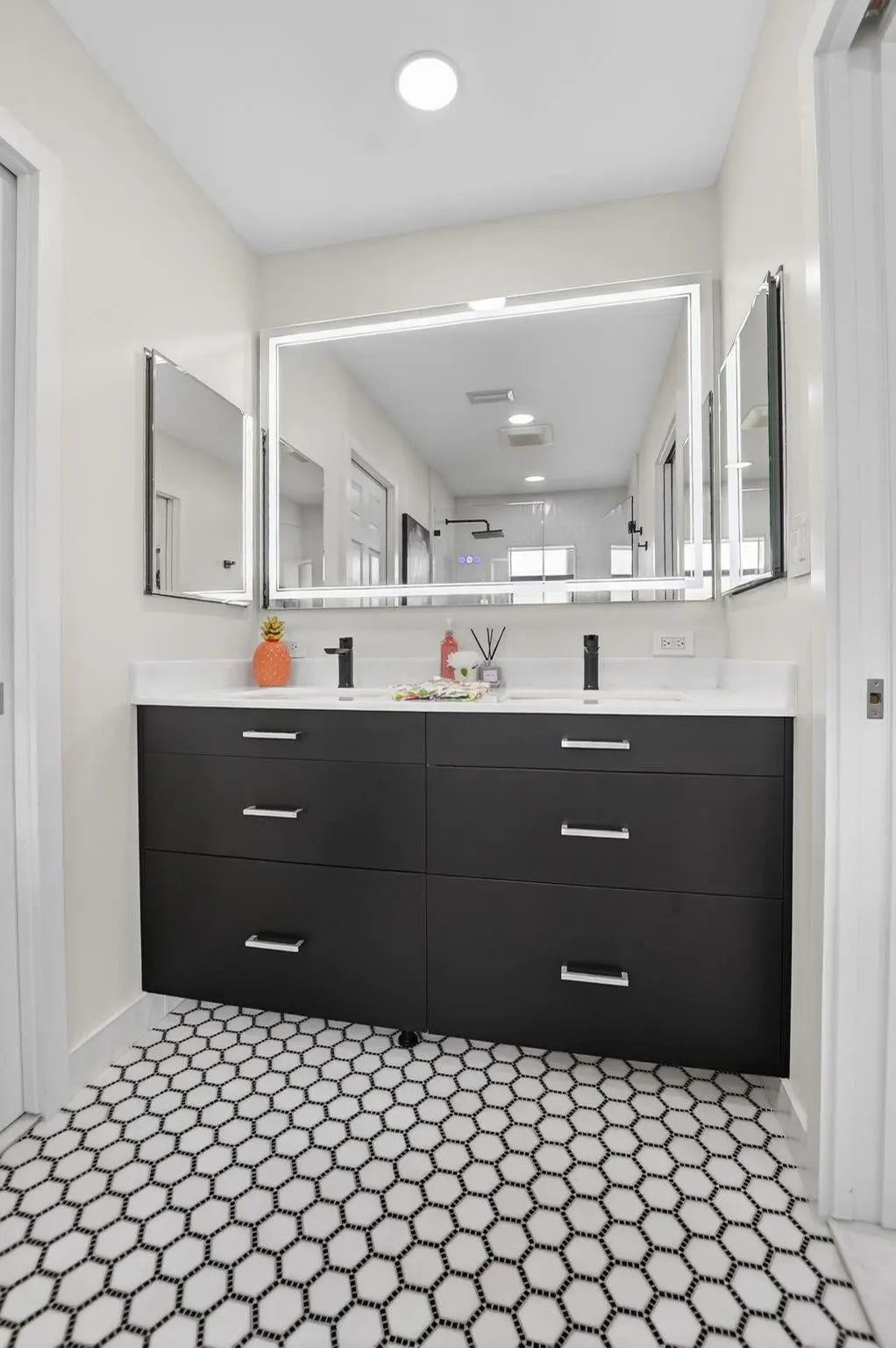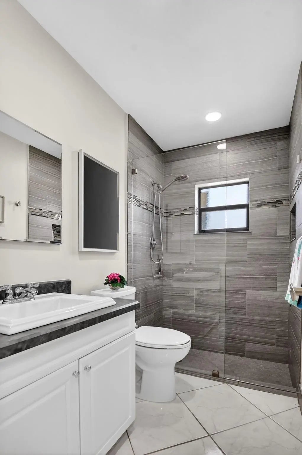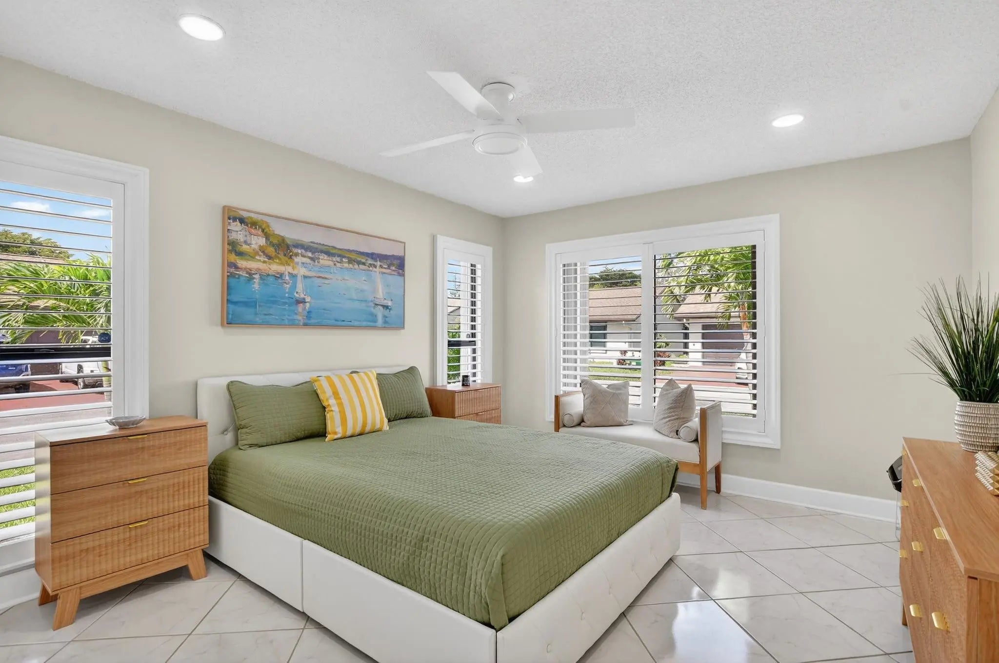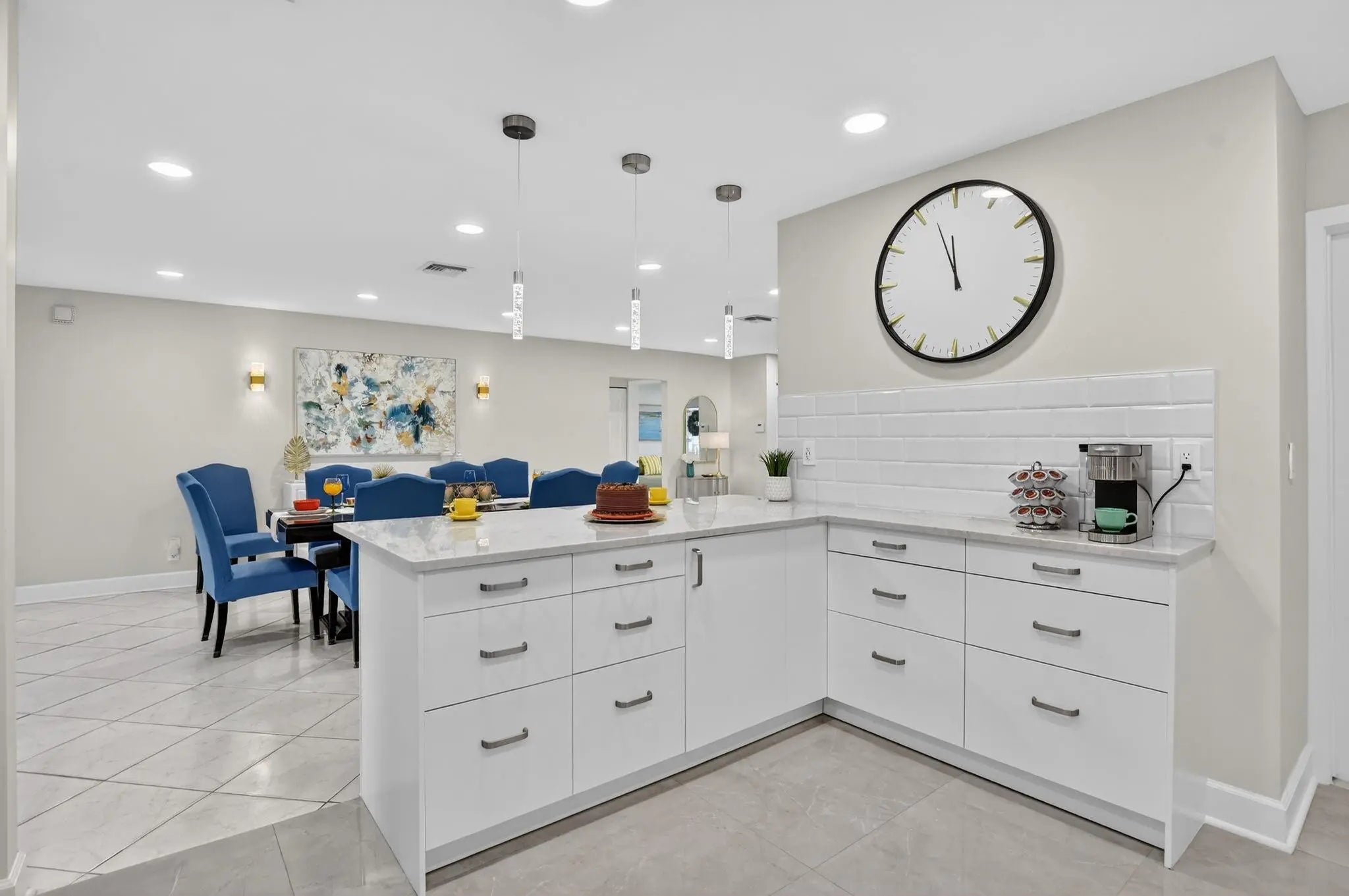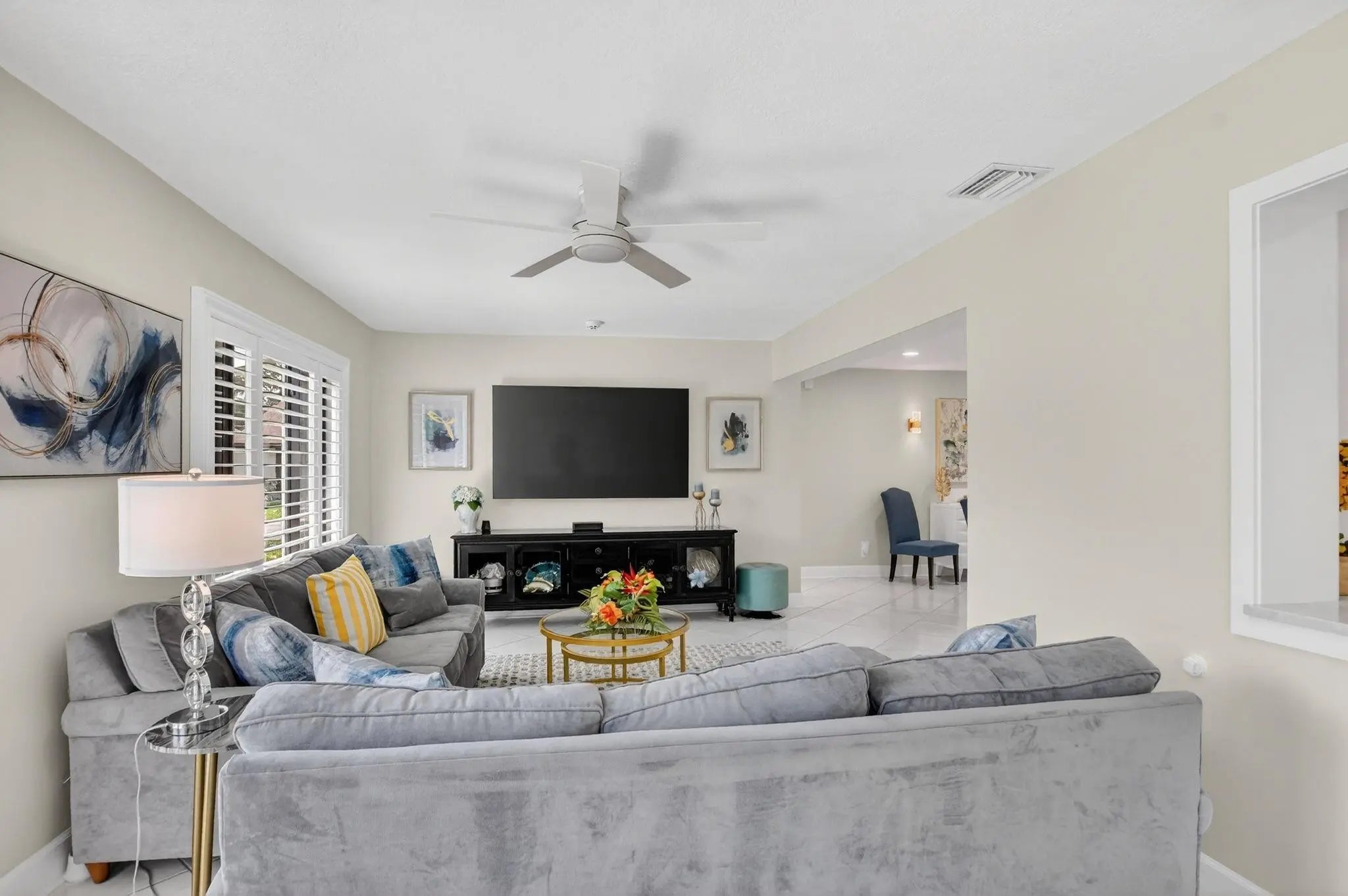 ONE OF A KIND! WOW 1,656sf! EXQUITELY REMODELED home w/ NO EXPENSE SPARED! 2/2 split BR wide-open floor plan. BRAND NEW KITCHEN & PRIMARY BATH. ALL IMPACT GLASS! Beveled glass entry into XL living areas adorned w/ knockdown ceiling & tile floors w/ 6" baseboards. Sprawl out in your DR for meals w/ guests. Designer 2025 kitchen w/ handcrafted custom cabinetry, quartzite countertops, subway tile backsplash, farmhouse sink, double pantry w/ pull out shelves, and new GE stainless appliances. Fall in love in your bright & spacious 16' x 11' primary suite w/ a walk-in closet & NEW, spa-inspired bath. Big corner guest BR features a w/in closet & NEW bath w/ frameless shower. HUGE FR is bathed in natural light. 2019 roof, epoxy garage floor. Desirable 55+ community of Meadows of Crystal Lake!