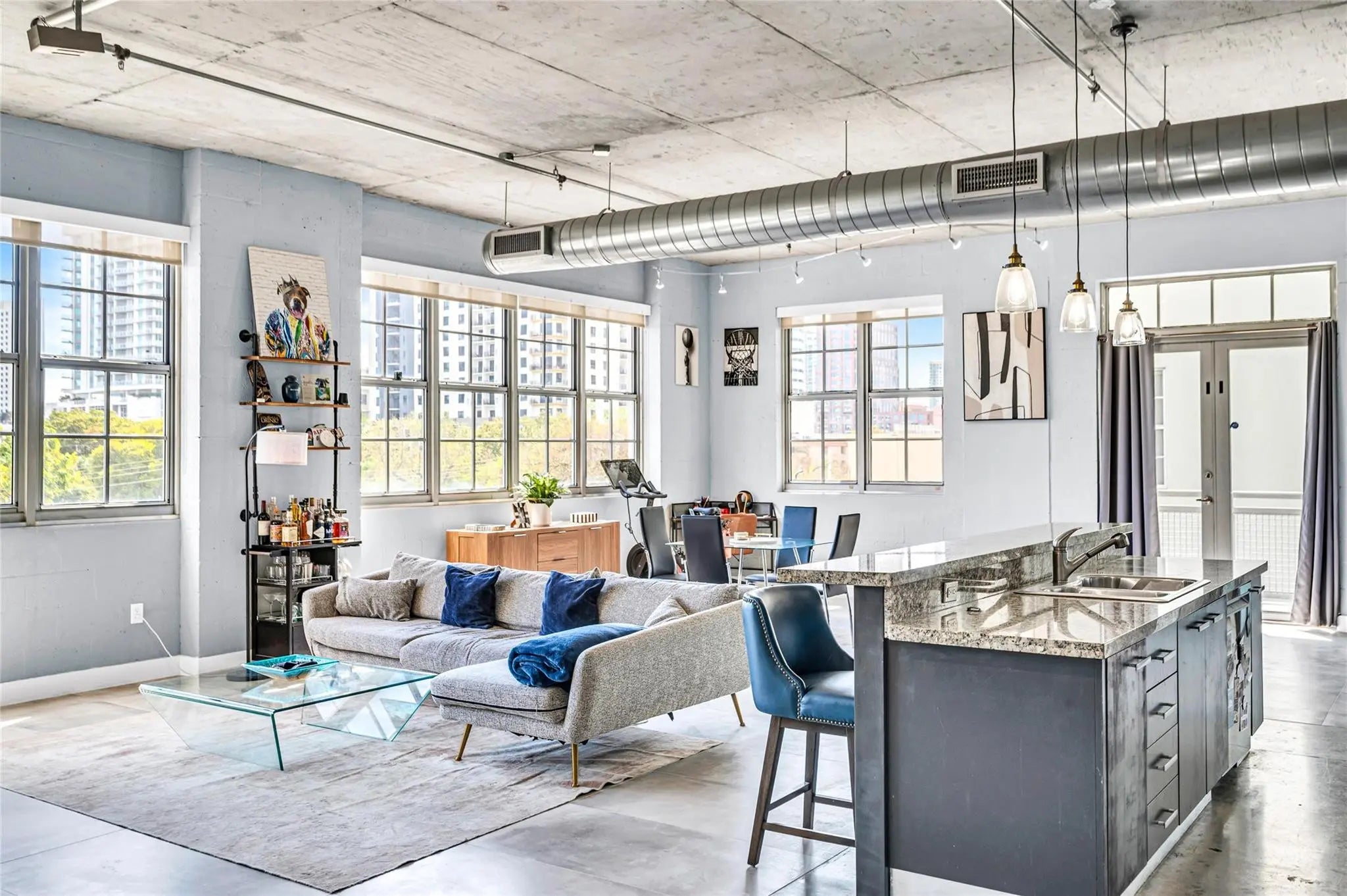 Recent updates have been made to this Urban Cool 2 Bed/2 Bath Corner Loft in Flagler Village! This light-filled corner unit features soaring ceilings, exposed ductwork and concrete block walls - a true industrial feeling. Open floor plan with walls of windows offering abundant natural light. Pet-friendly (2 pets, no weight limit). Recent building exterior renovation/waterproofing project completed—all assessments paid. Building is fully compliant with 2025 safety and RESERVE requirements. Renovated rooftop pool & fitness center with stunning skyline views. Prime location just 2 blocks from Brightline train, 1 block from the exciting new FAT Village development (nearing completion), Walkable, vibrant, and connected—urban living at its best. Ok to Lease right away. Annual leases only.