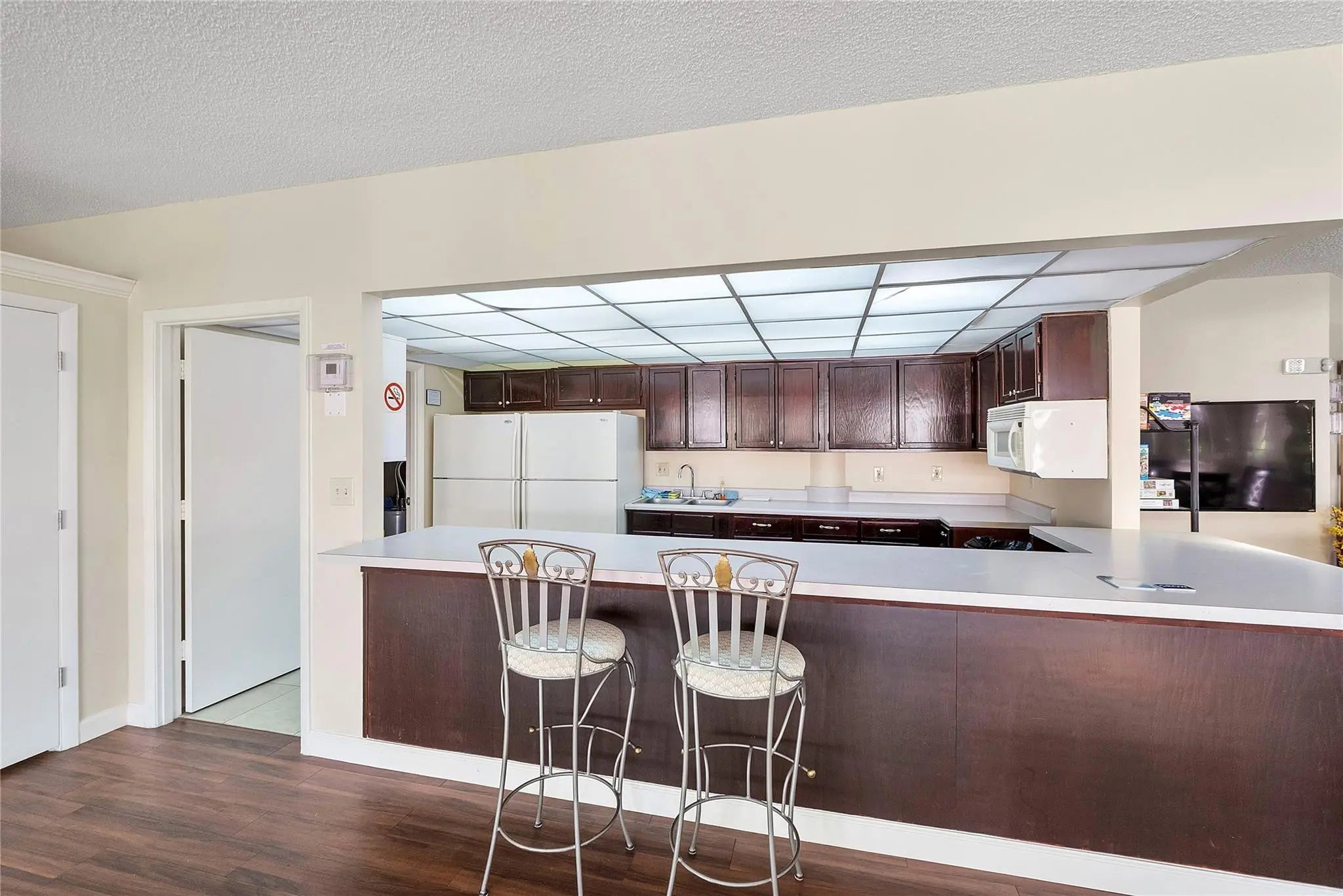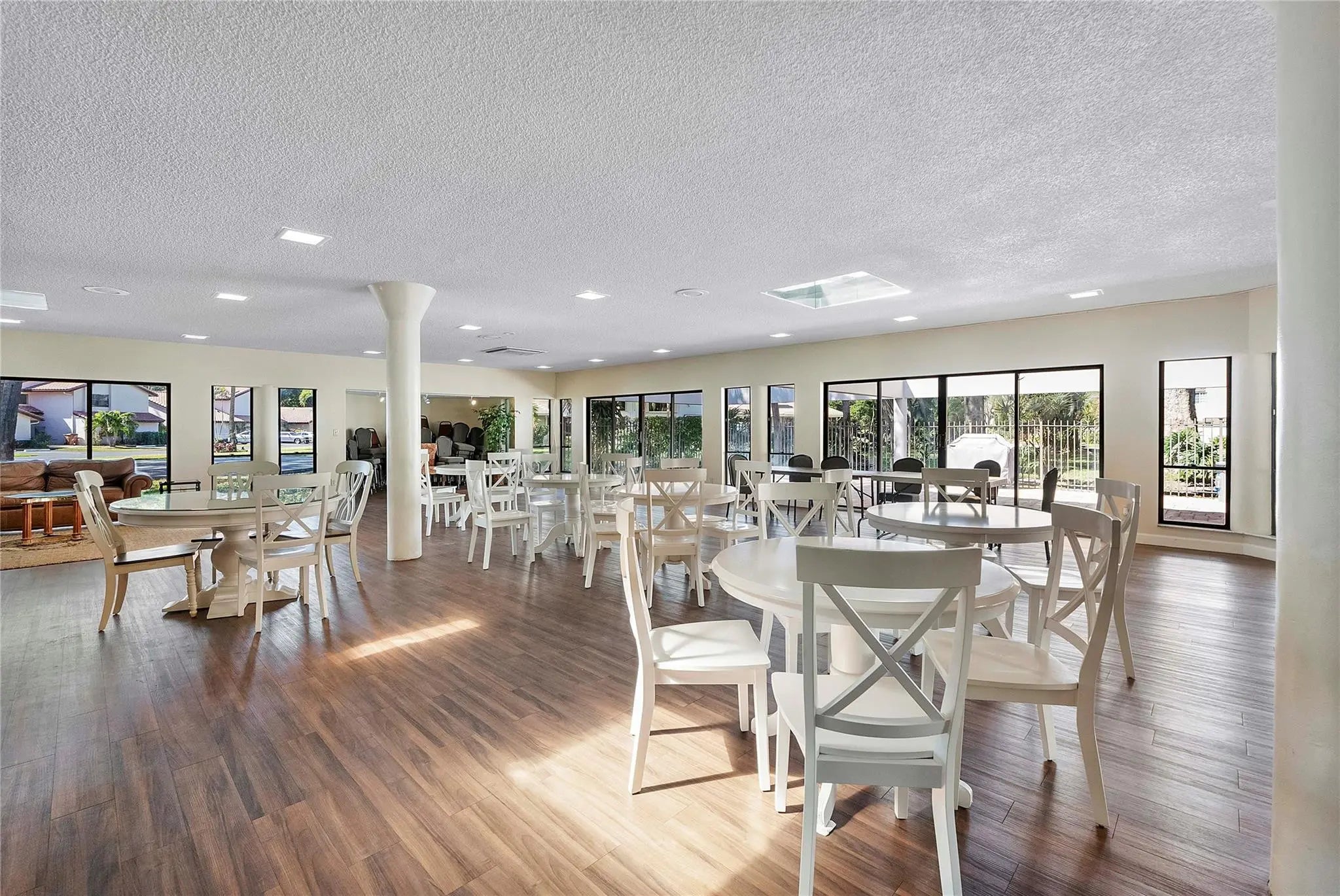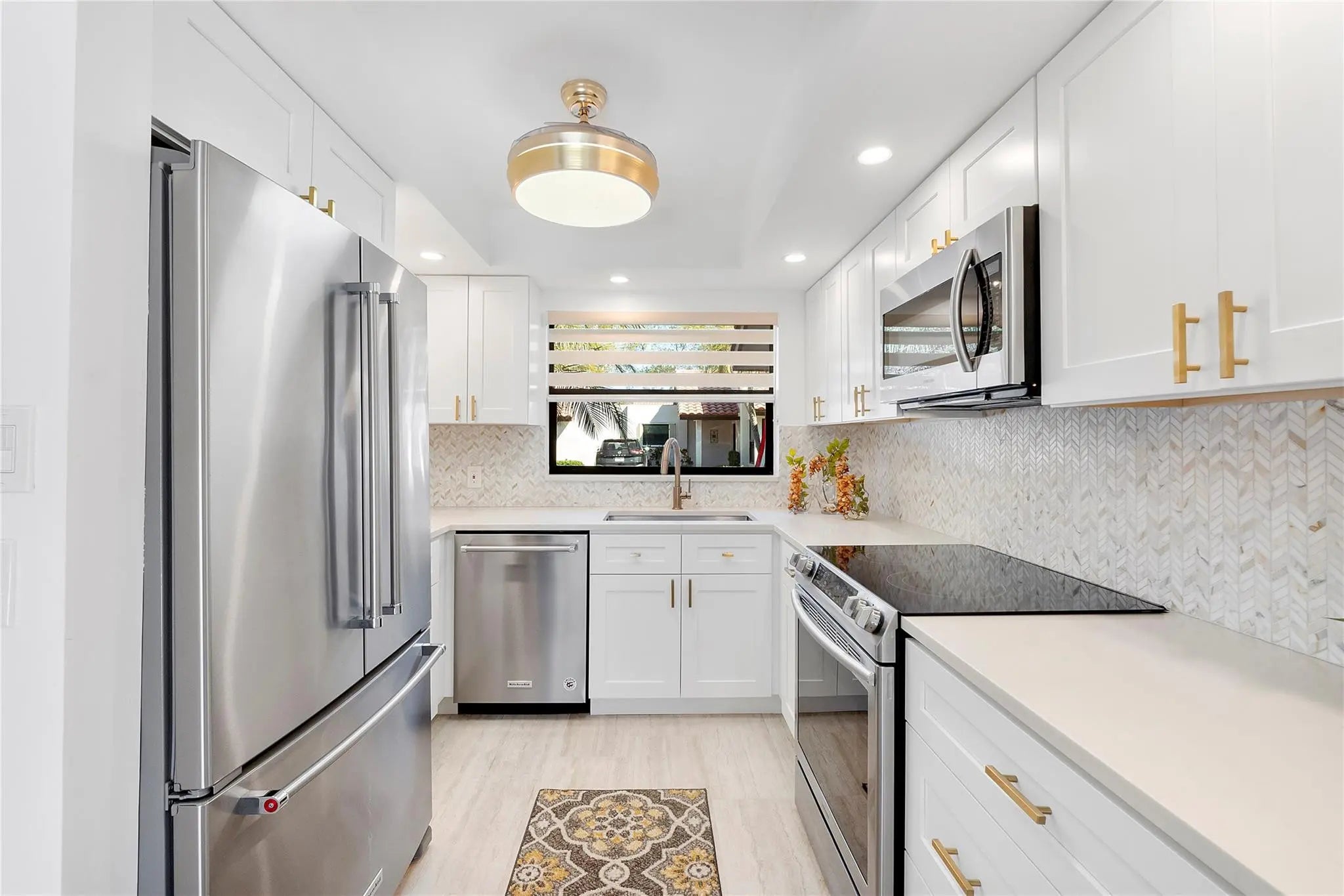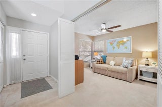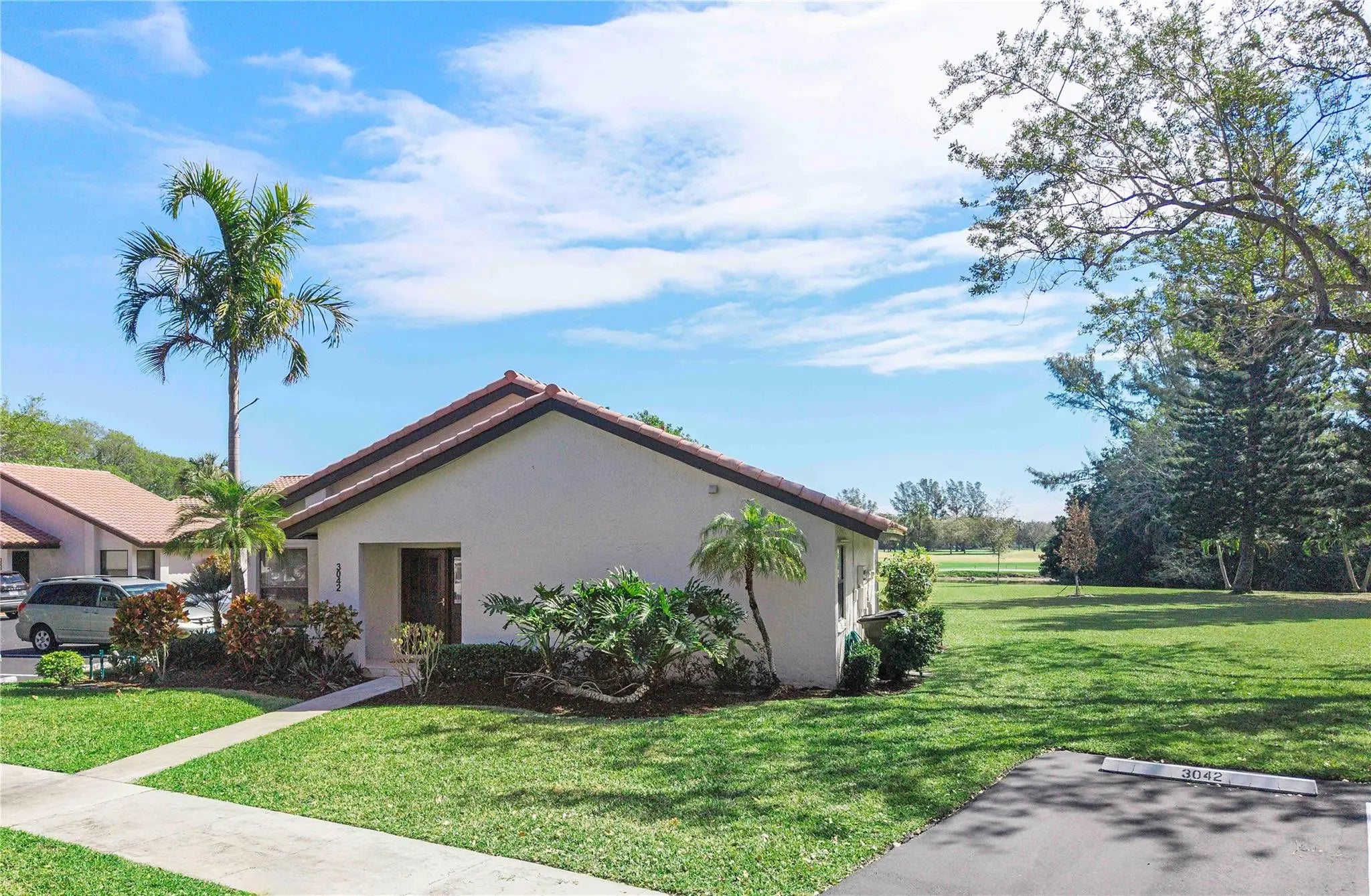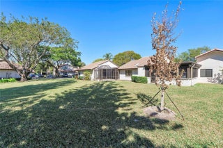 Welcome to effortless Florida living in this UPDATED, MOVE-IN READY corner villa designed for comfort & privacy. A PRIVATE entrance opens to a bright 2BR/2BA split floor plan w/vaulted ceilings & natural light throughout. The designer kitchen features white shaker cabinetry, quartz countertops & SS appliances, while the fully renovated primary bath offers a sleek walk-in tiled shower & elegant vanity. Four sliding doors lead to an oversized covered, screened patio — your own retreat w/ STUNNING lake, golf course & nature VIEWS. Enjoy a 2025 A/C, full-size washer/dryer, excellent storage & 2 parking spaces right by the front door. Lovely community heated pool & spa. Deer Creek has NO mandatory golf membership. CENTRAL LOCATION, minutes to Deerfield Beach, shopping, parks, & major highways.