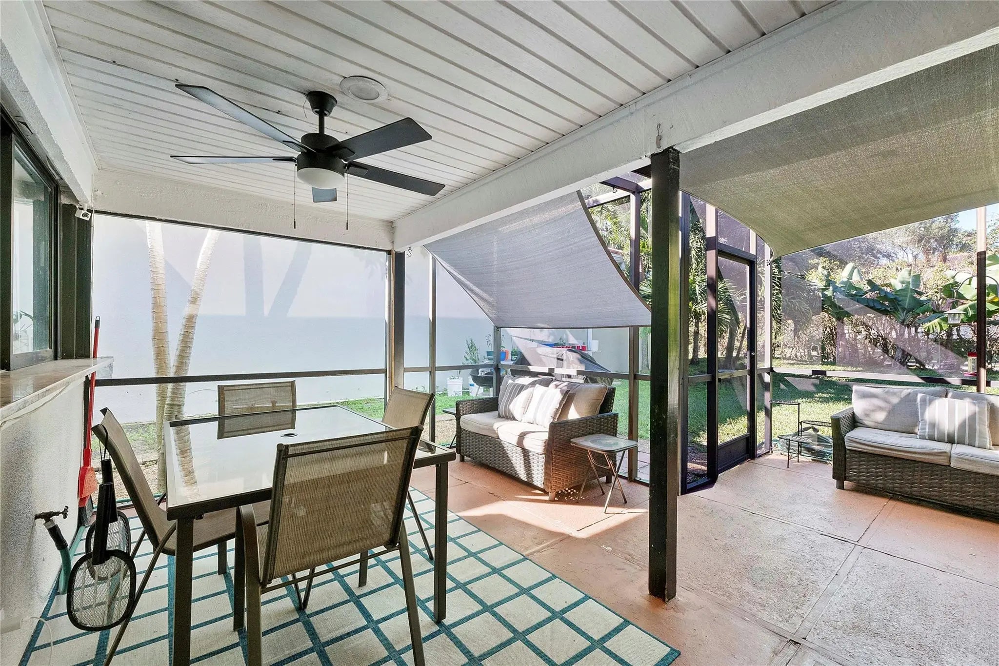 Beautiful single family home PERFECTLY LOCATED on the corner right across from the Deer Creek Golf Club. WIDE- OPEN floor plan; Foyer opens to HUGE GREAT ROOM boasting soaring vaulted ceilings, light & bright with clerestory windows in the living/dining areas. Lovely neutral 24" tile floors throughout, 5" baseboards. White cabinetry in your kitchen w/granite countertops, glass tile backsplash, breakfast area & a large passthrough window to a spaciousscreened & roofed LANAI. Beautiful private back yard. BRAND NEW 2026 A/C. Laundry room & 2 car garage, HUGE DRIVEWAY. Deer Creek Golf Club is steps away and is open to the public along with the Deer Creek Grille & Pro-shop. Close to shopping, major highways, parks & just over 4 miles to the beach. No pick up trucks, Jeeps, commercial vehicles