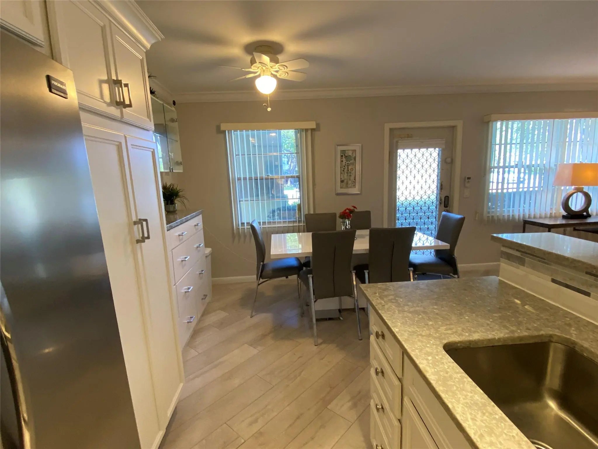 FIRST FLOOR UNIT! 2 BEDROOM, 1.5 BATH,OPEN KITCHEN WITH GRANITE COUNTERTOPS, CUSTOM PANTRY, STAINLESS STEEL APPLIANCES, TASTEFULLY FURNISHED, CROWN MOLDING. GUEST BATH IS REMODELED, MASTER BATH HAS WALK IN SHOWER, CLOSETS HAVE CUSTOM BUILD IN FEATURES, ALL WINDOW OPENINGS HAVE ACCORDION HURRICANE SHUTTERS, PATIO IS ENCLOSED, BUILDING HAS NEW ROOF AND ELEVATOR, PARKING IN FRONT OF UNIT, SHORT WALK TO PLAZA, CLUBHOUSE AND BERKSHIRE POOL. THIS UNIT IS PRICED TO SELL! CLUBHOUSE HAS LIVE SHOWS, CRAFT ROOMS, FITNESS CENTER, NEW ZERO ENTRY POOL, FREE SHUTTLE TO MALLS AND GROCERY STORES, CAFE ON PROPERTY. PROOF OF FUNDS MUST ACCOMPANY ALL OFFERS SEE SHOWTIME FOR ACCESS. SEACREST MANAGED FEE $431.80 CVEMM $185, CENCLUB $120 MAINTENANCE INCLUDES CABLE TV, WATER, SEWER, TRASH & BLDG RESERVES