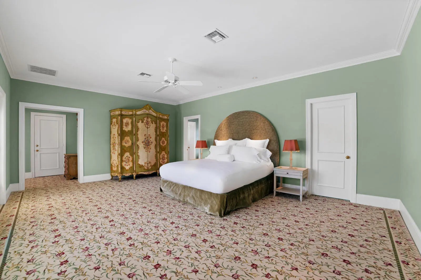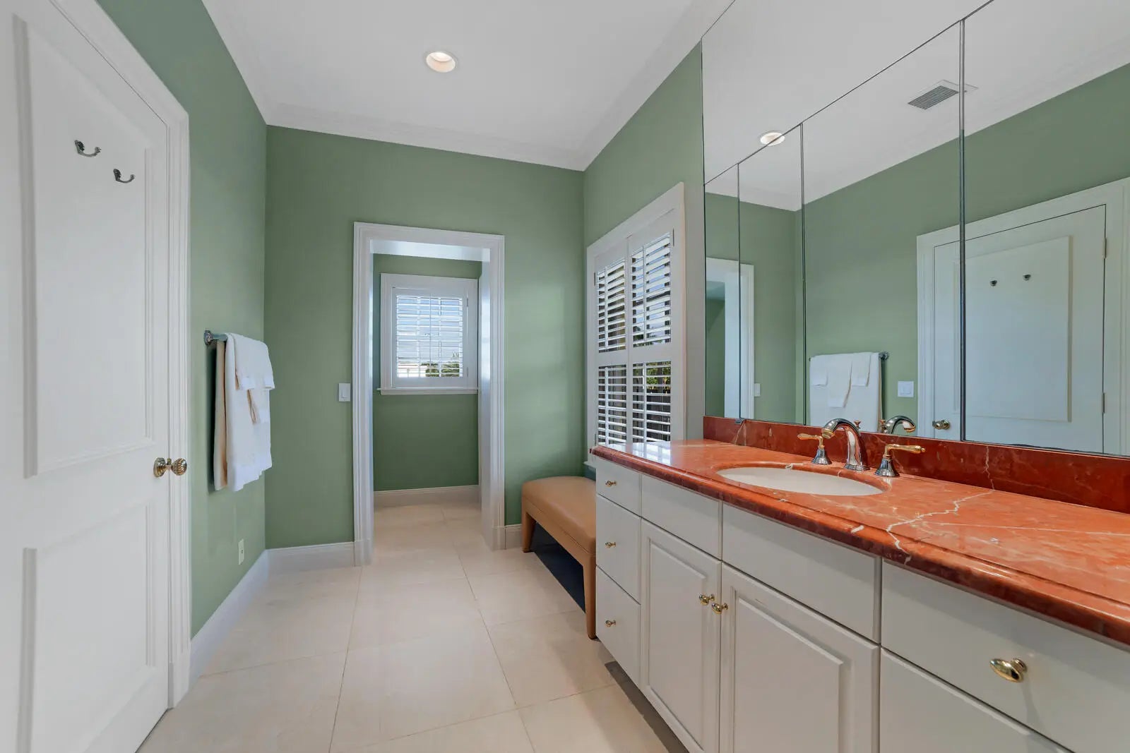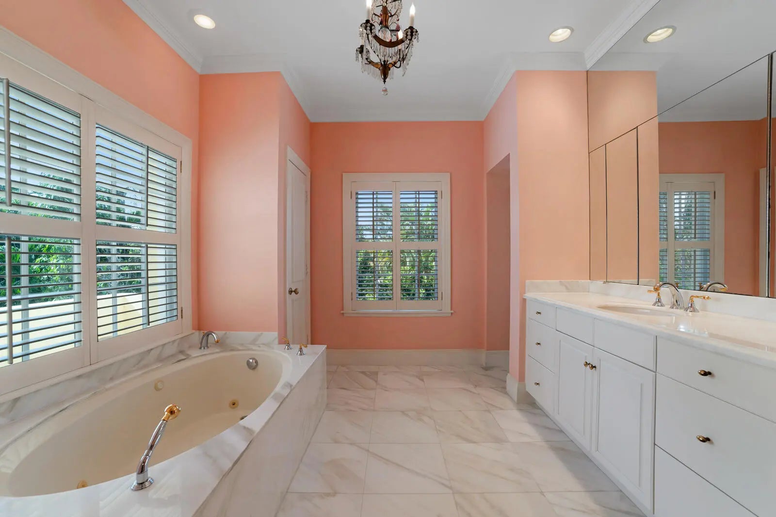This British Colonial residence offers 6,922± total square feet with five bedrooms and six and a half bathrooms. Set on a 100' x 172' lot at the corner of Tangier Avenue and North Lake Way, the property features a large pool, covered loggia, and beautifully maintained grounds. The spacious foyer opens to the formal living room and a central gallery hall that connects the main living areas. The family room, located on the south side, opens through French doors to the covered loggia and pool. On the north side, the gallery leads to the formal dining room, library, and kitchen with adjoining dining area—an ideal layout for both everyday living and entertaining. Two guest bedrooms are located on the first floor, each with en suite baths and walk-in closets—one currently serving as a library. Additional first-floor features include a powder room, laundry room, and a two-car garage with separate service drive. Upstairs, the primary suite offers exceptional space and privacy with four walk-in closets, separate his-and-her bathrooms, and ample storage. Two additional guest bedrooms on this level each include en suite baths and walk-in closets. Ideally situated on Palm Beach's North End, the residence is just moments from the Lake Trail, beaches, restaurants, and world-class shopping.